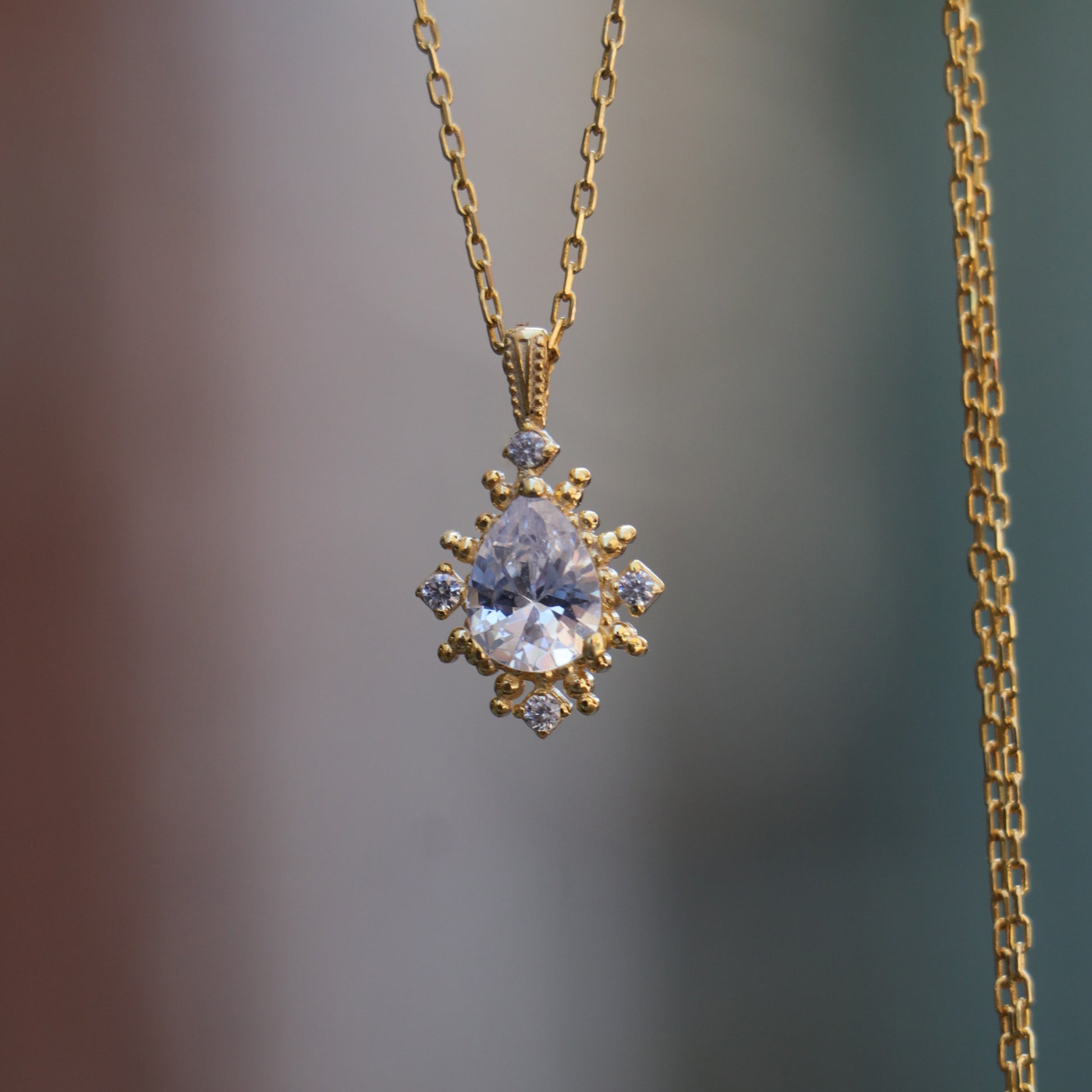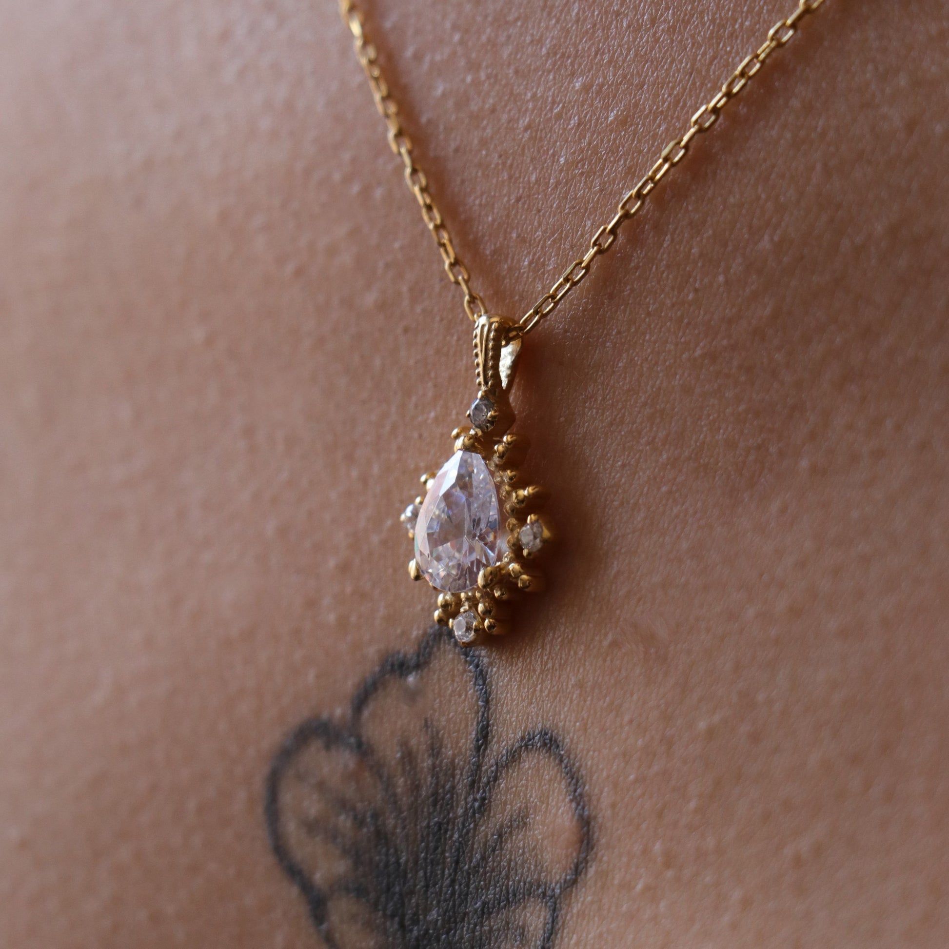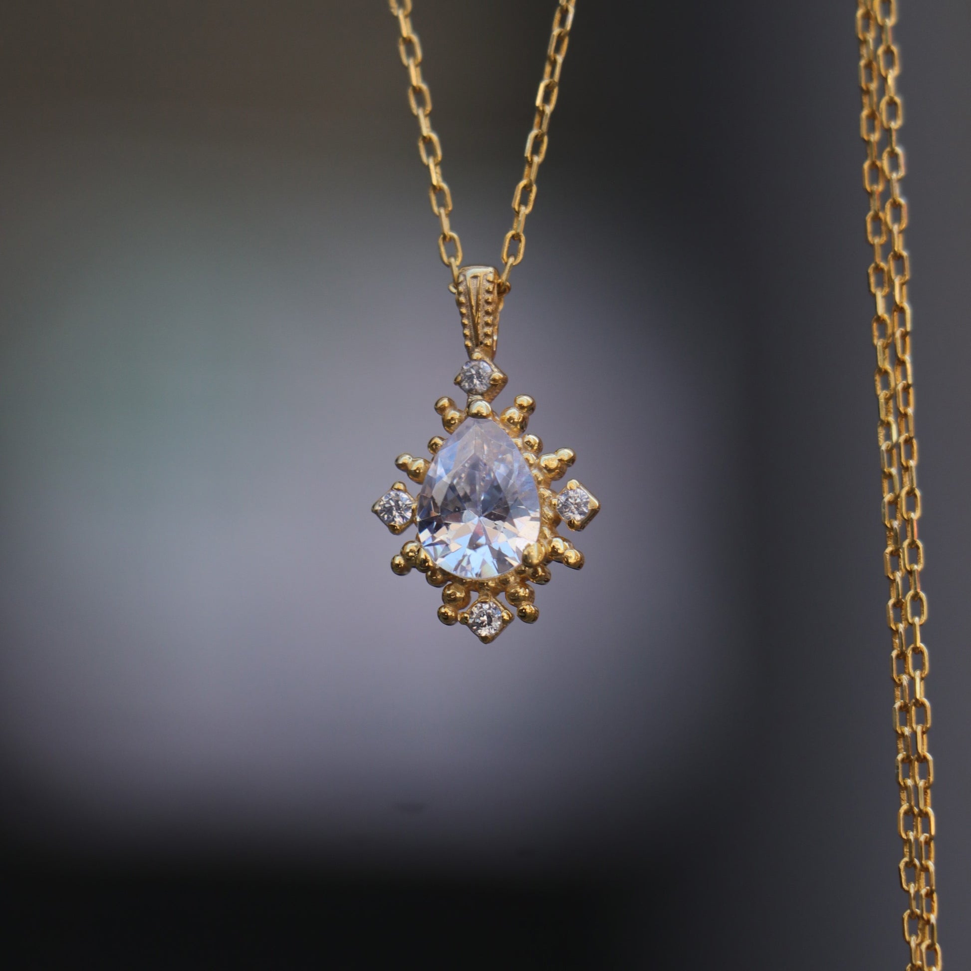 Drop and Moissanite 925 Silver Gold Plated Necklace