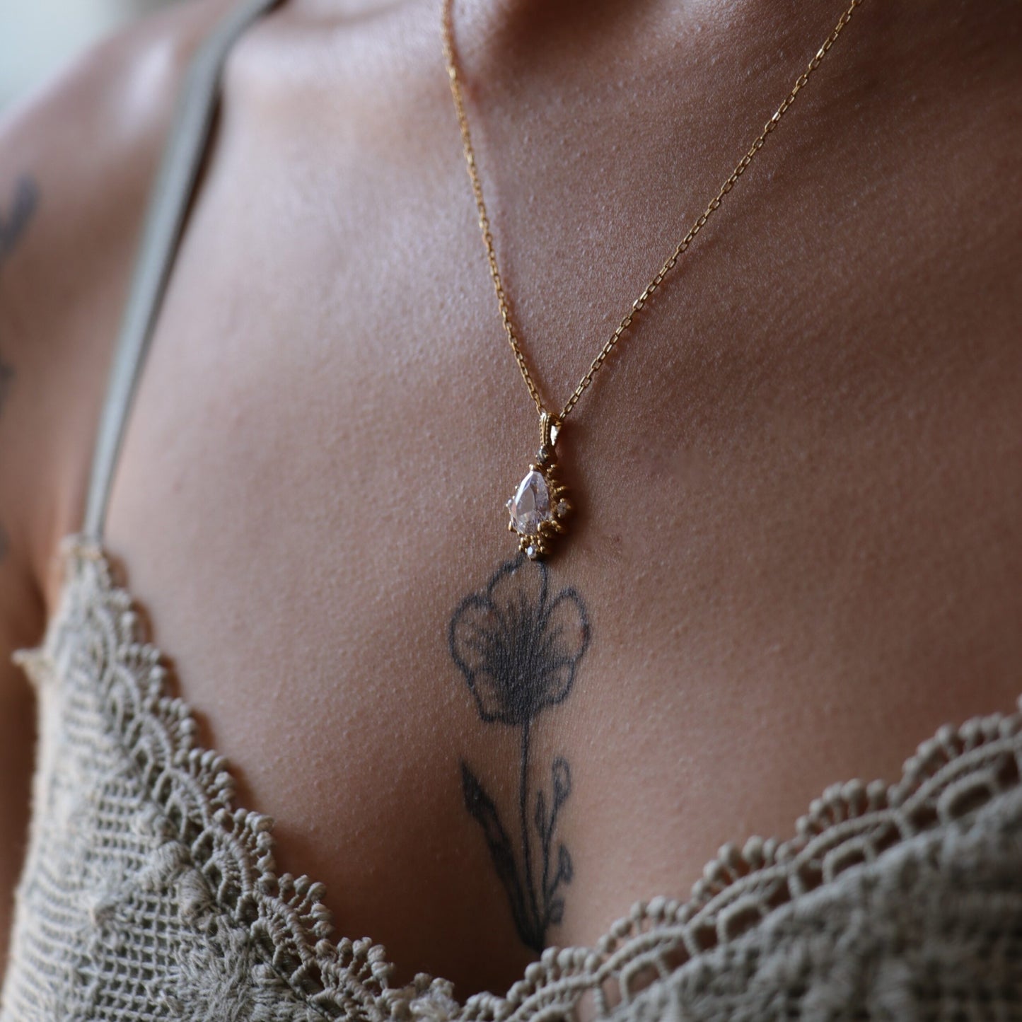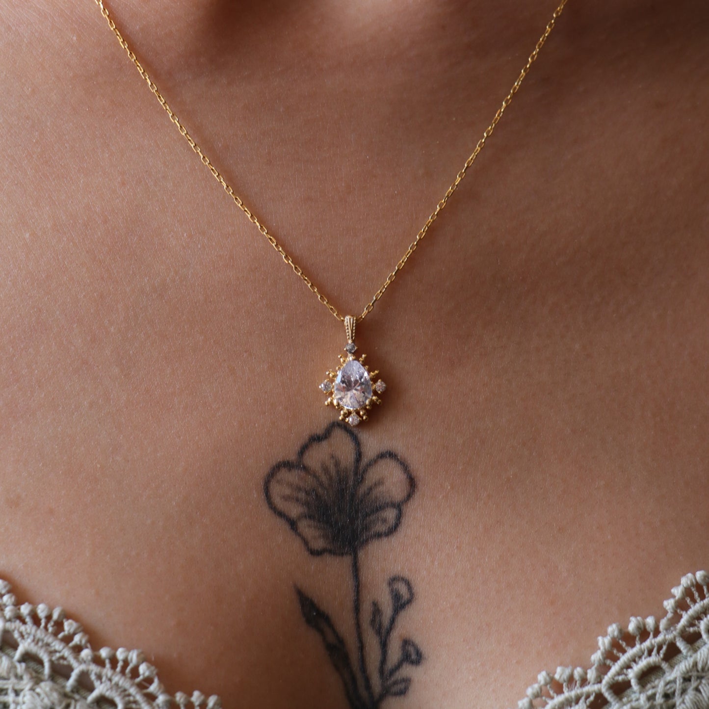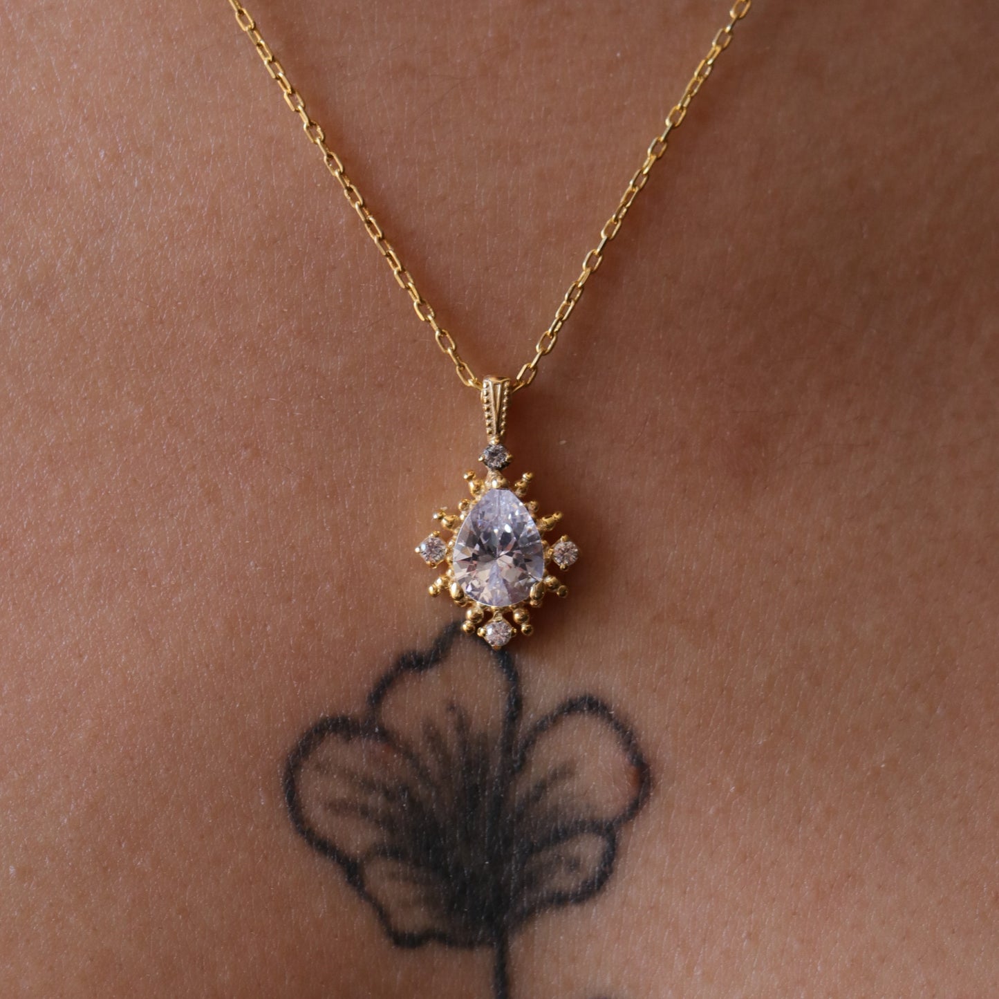 Drop and Moissanite 925 Silver Gold Plated Necklace