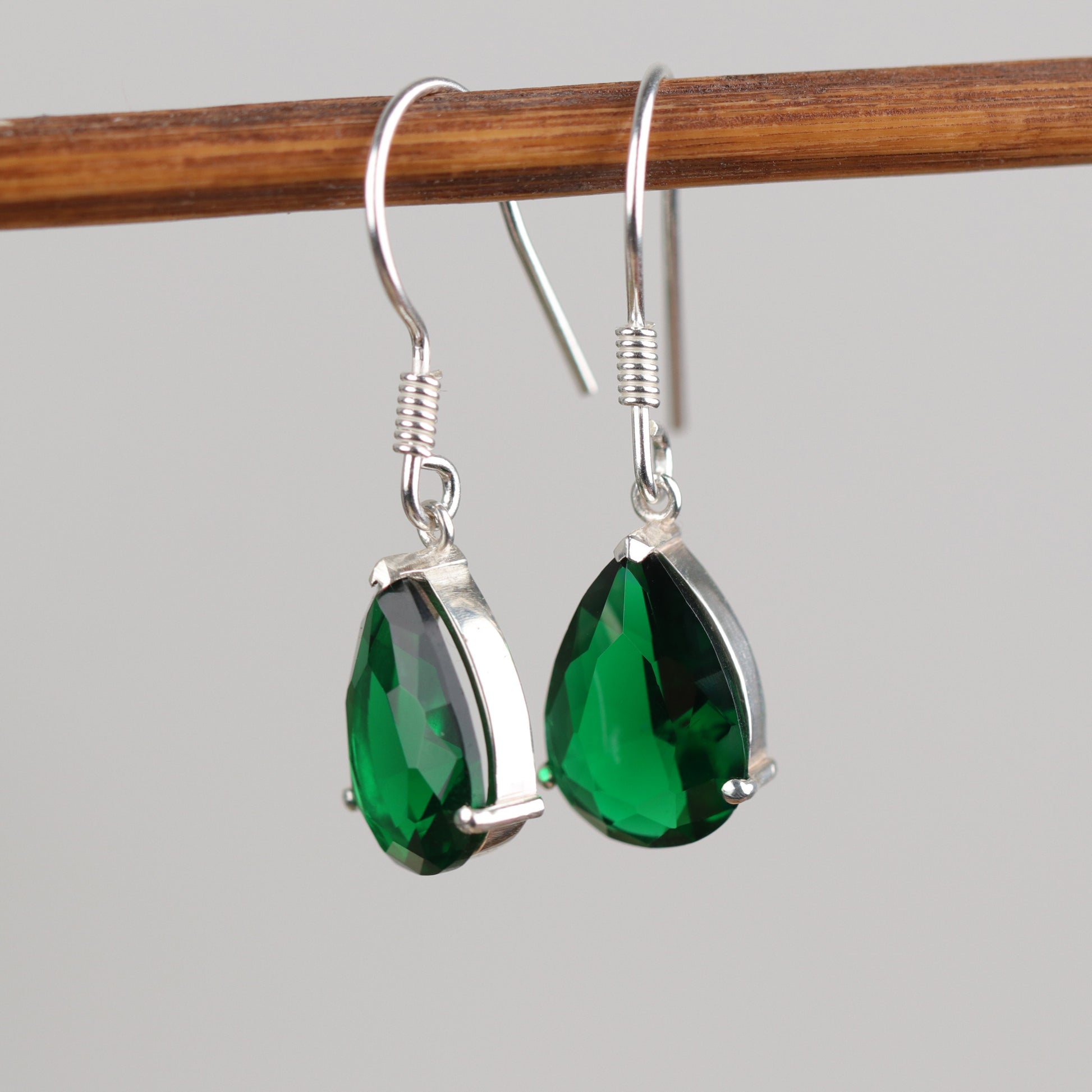 925 Silver Earrings with Emerald Drop Stone
