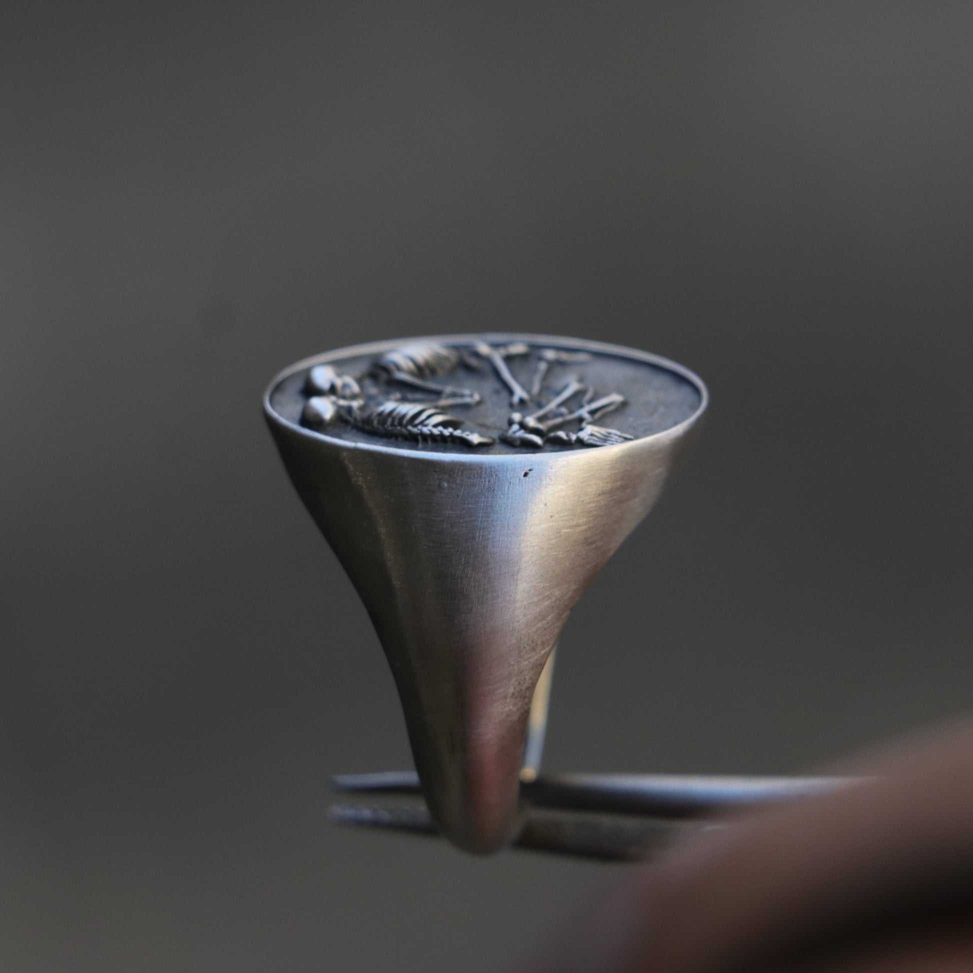I oxidize and darken the bronze metal I use when creating my designs to give it an aged appearance and to make it look as if it had come out of the ground.
