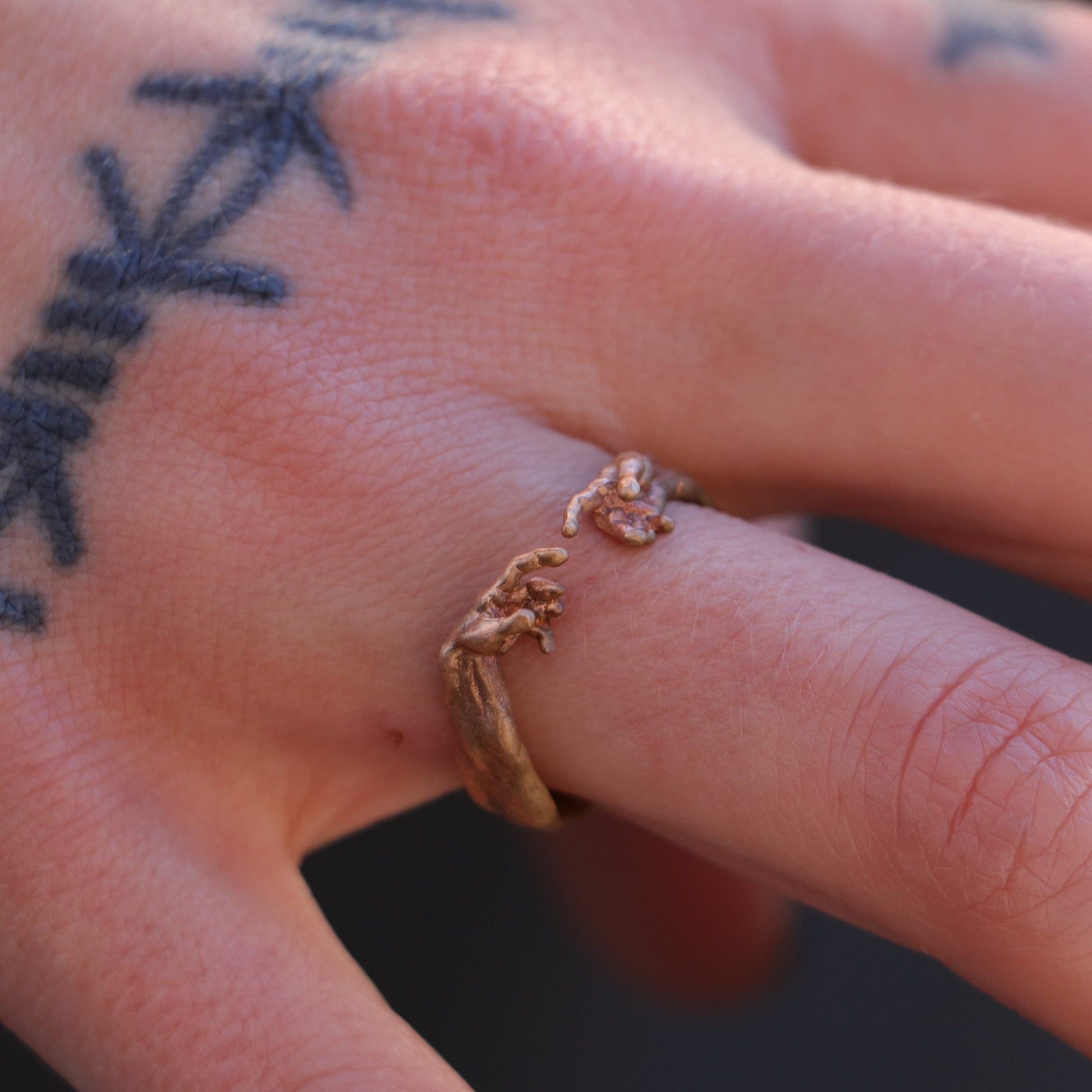 *Bronze rings can leave a green stain on the finger depending on the acidic state of some skin. This is not a problem. It shows that the PH value in your sweat is high, it will be removed with an easy wipe. If this bothers you very much, you can get rid of this problem by covering the inner part of the ring that touches your finger with a transparent nail polish.