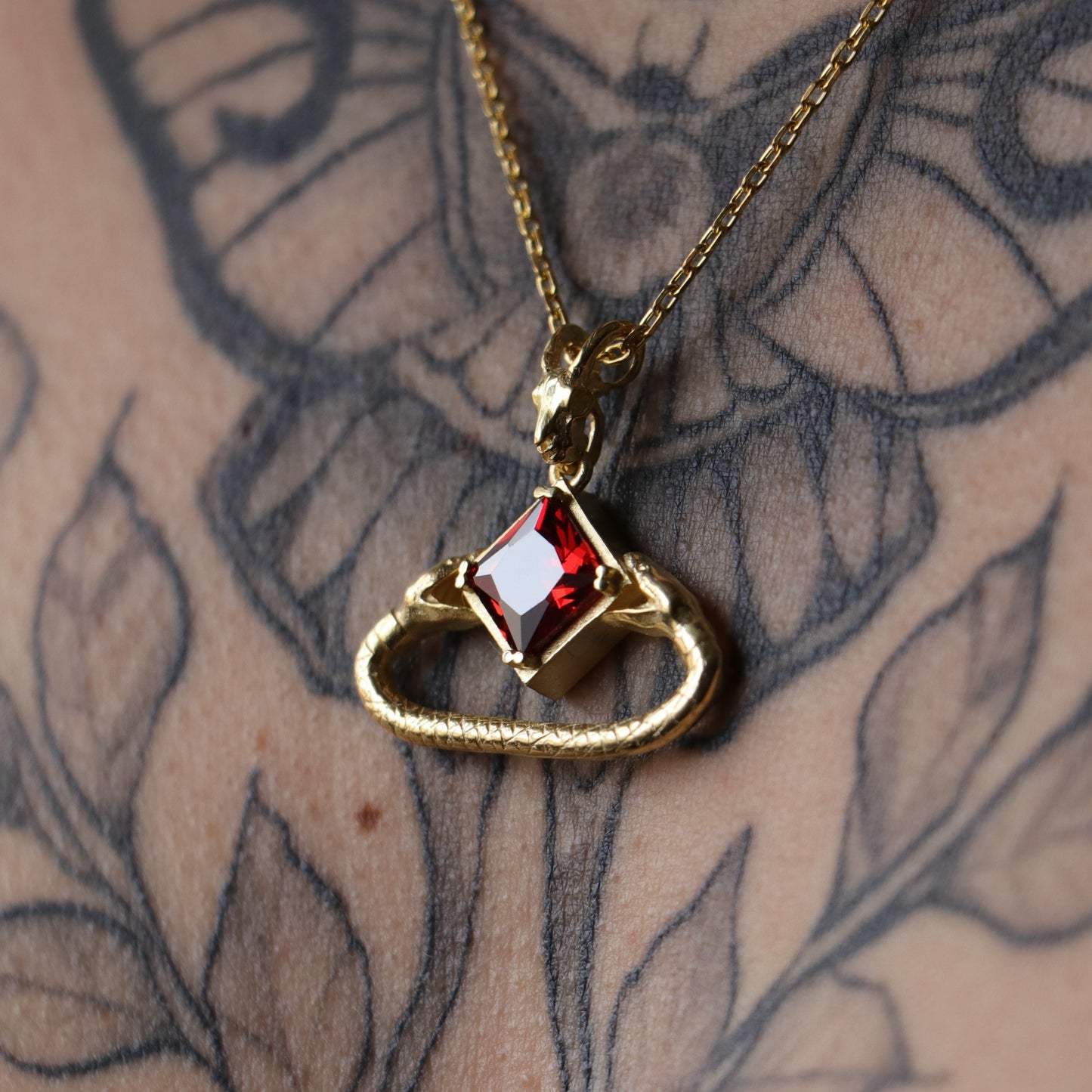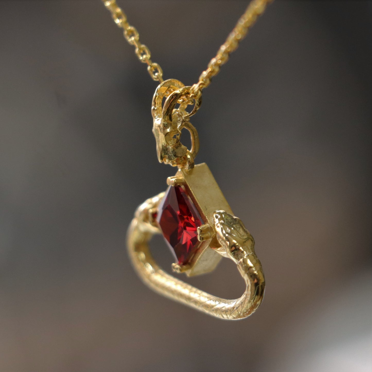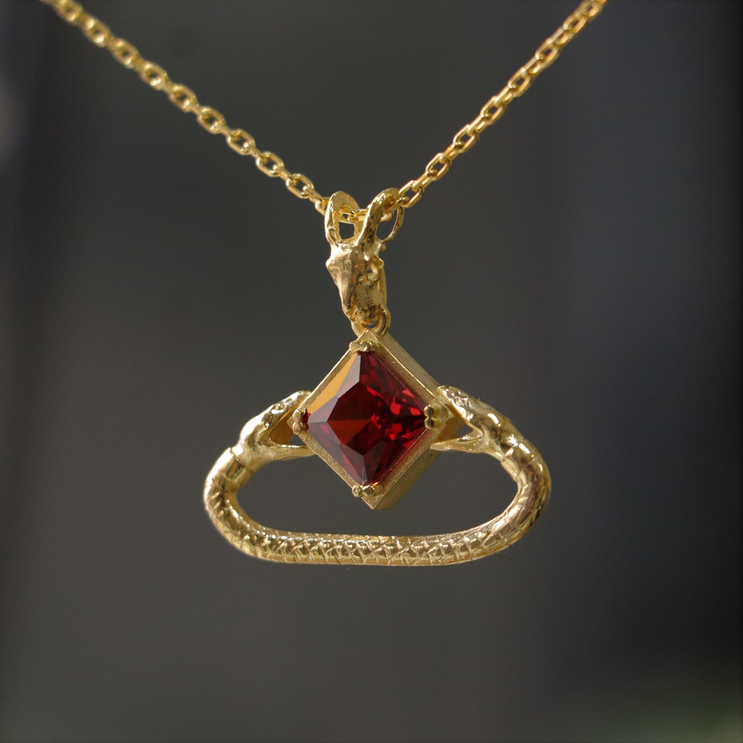 Handmade Custom Buffalo and Snake Princess Garnet Gold Plated Necklace