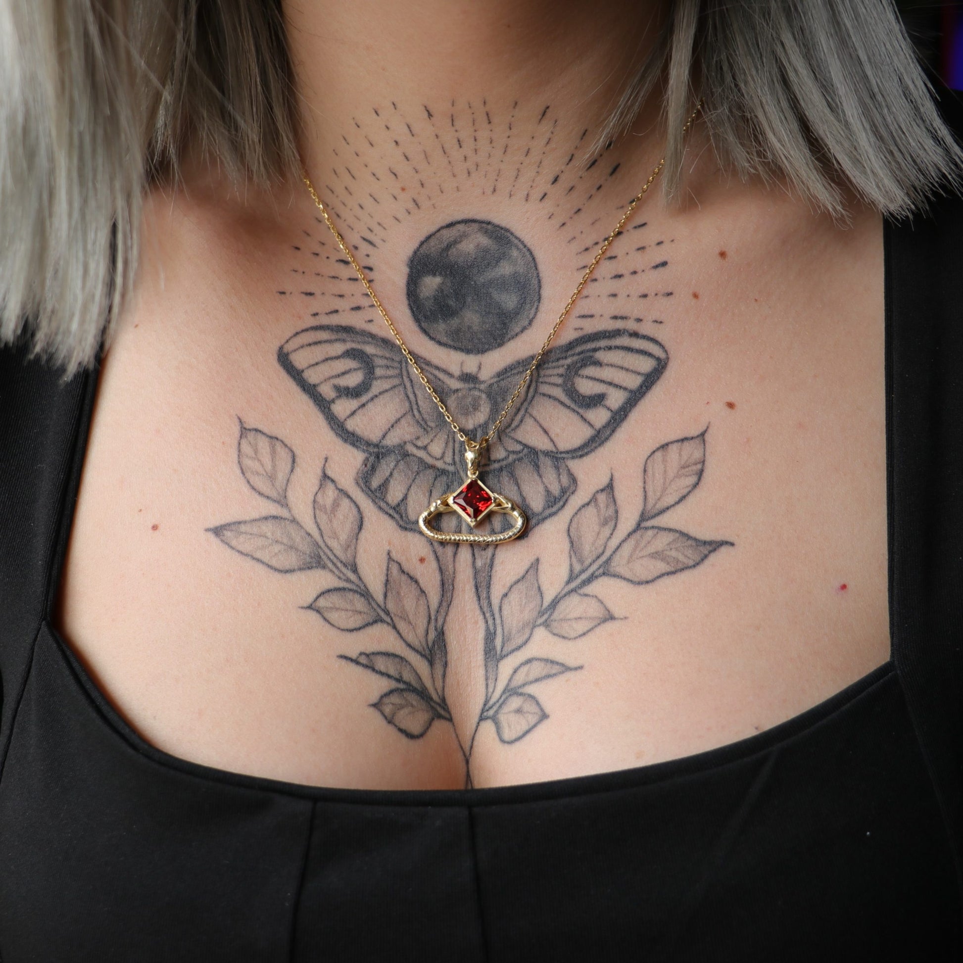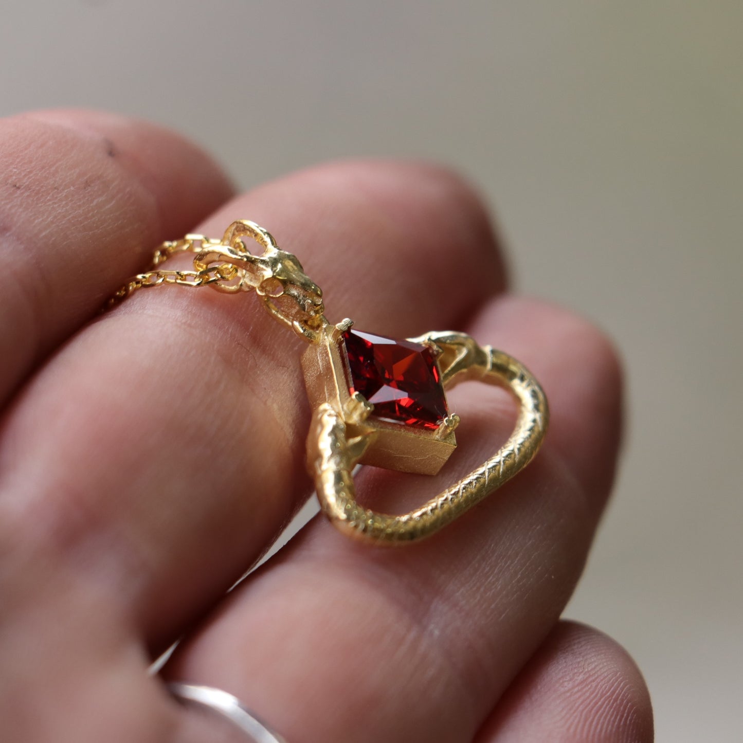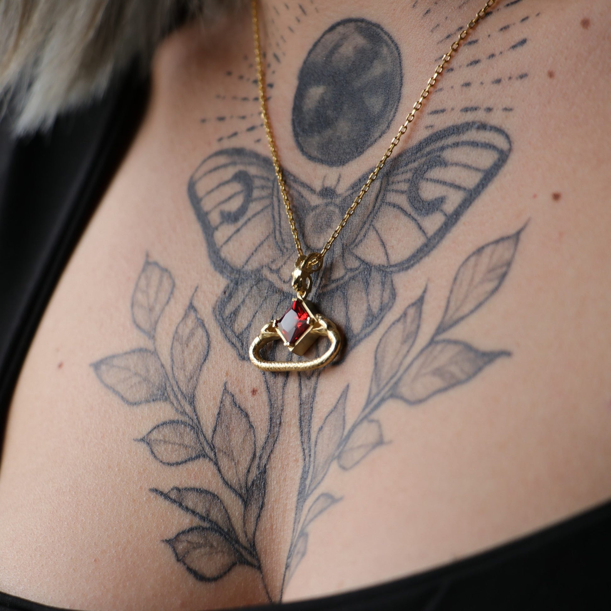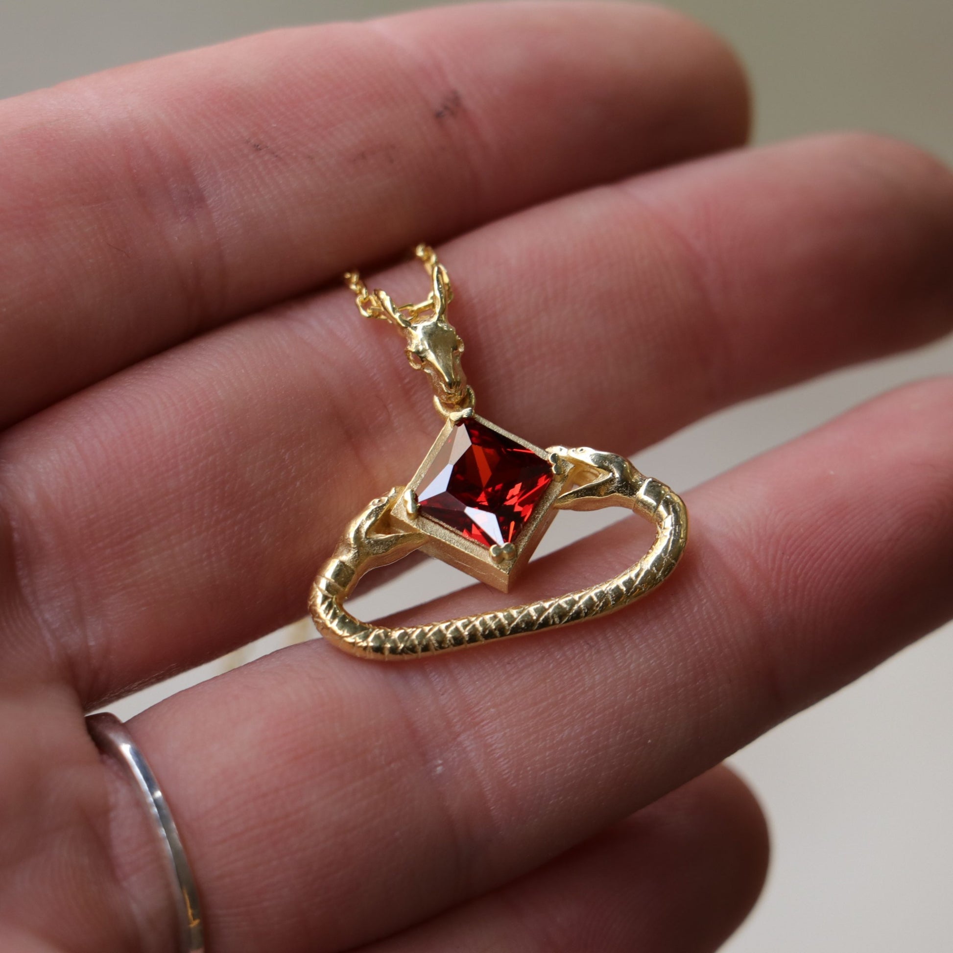 Handmade Custom Buffalo and Snake Princess Garnet Gold Plated Necklace