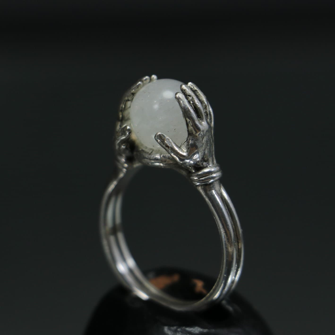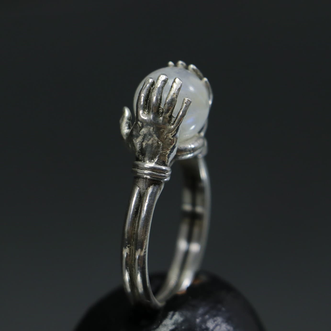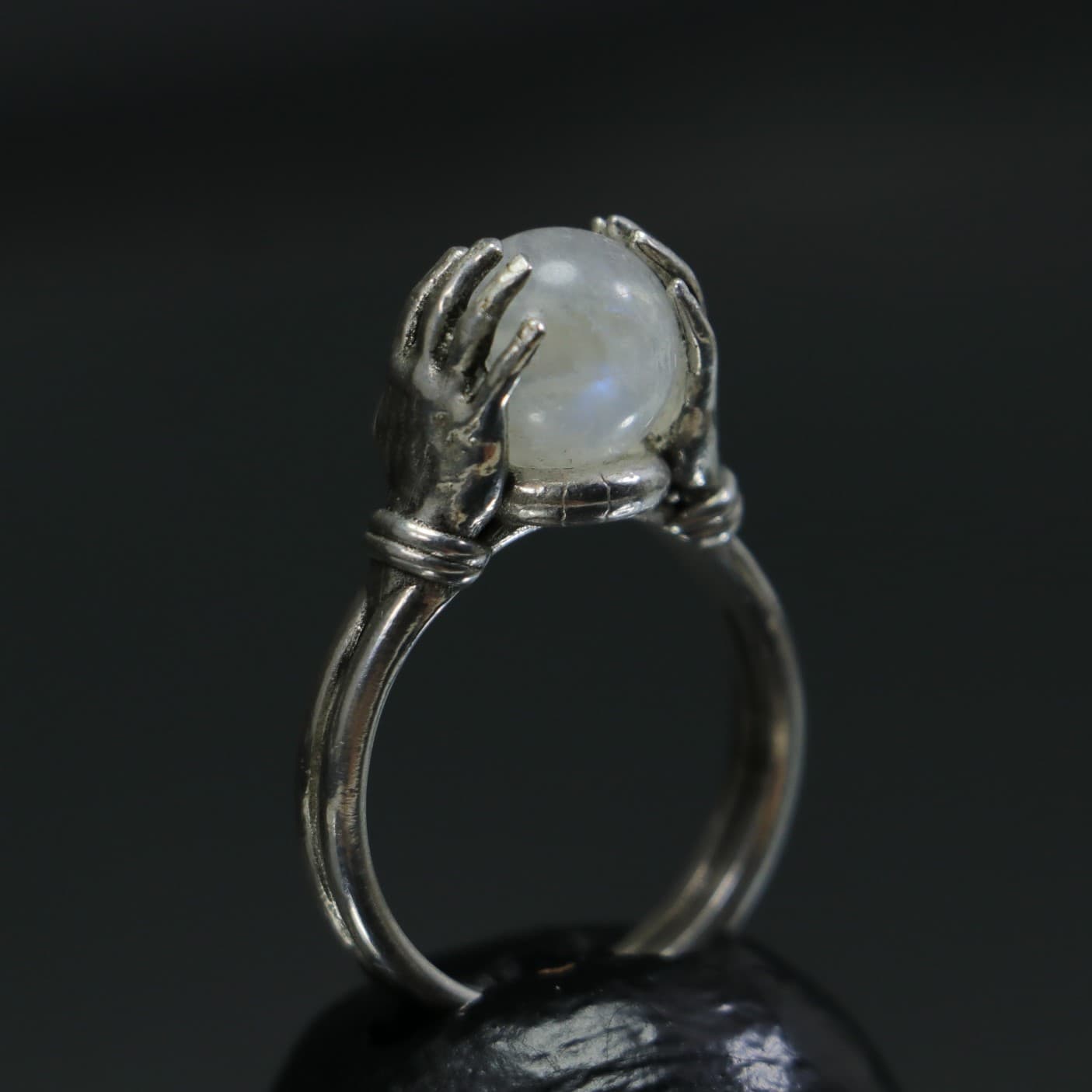 Crystal Moonstone Sphere Between Hands 925 Silver Ring