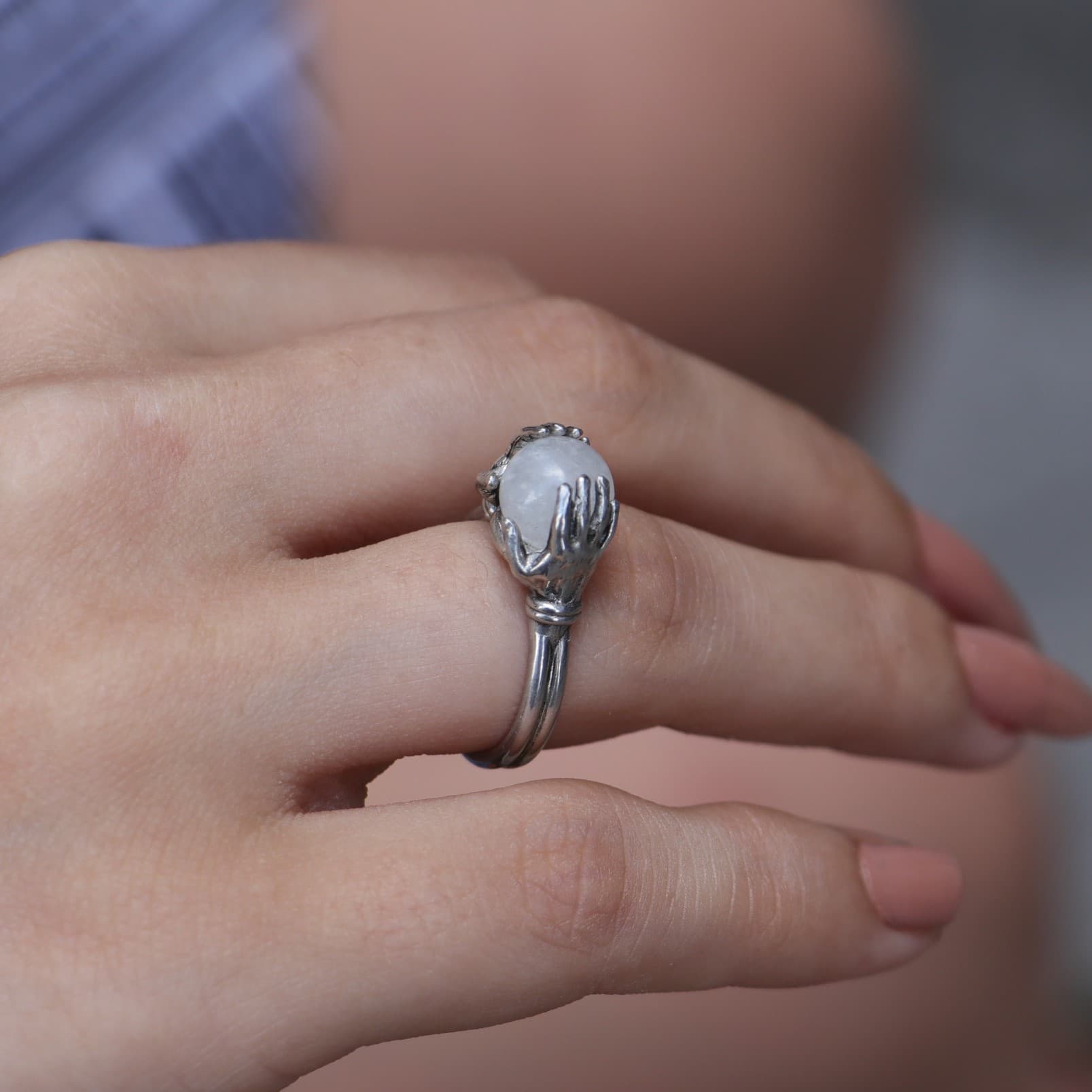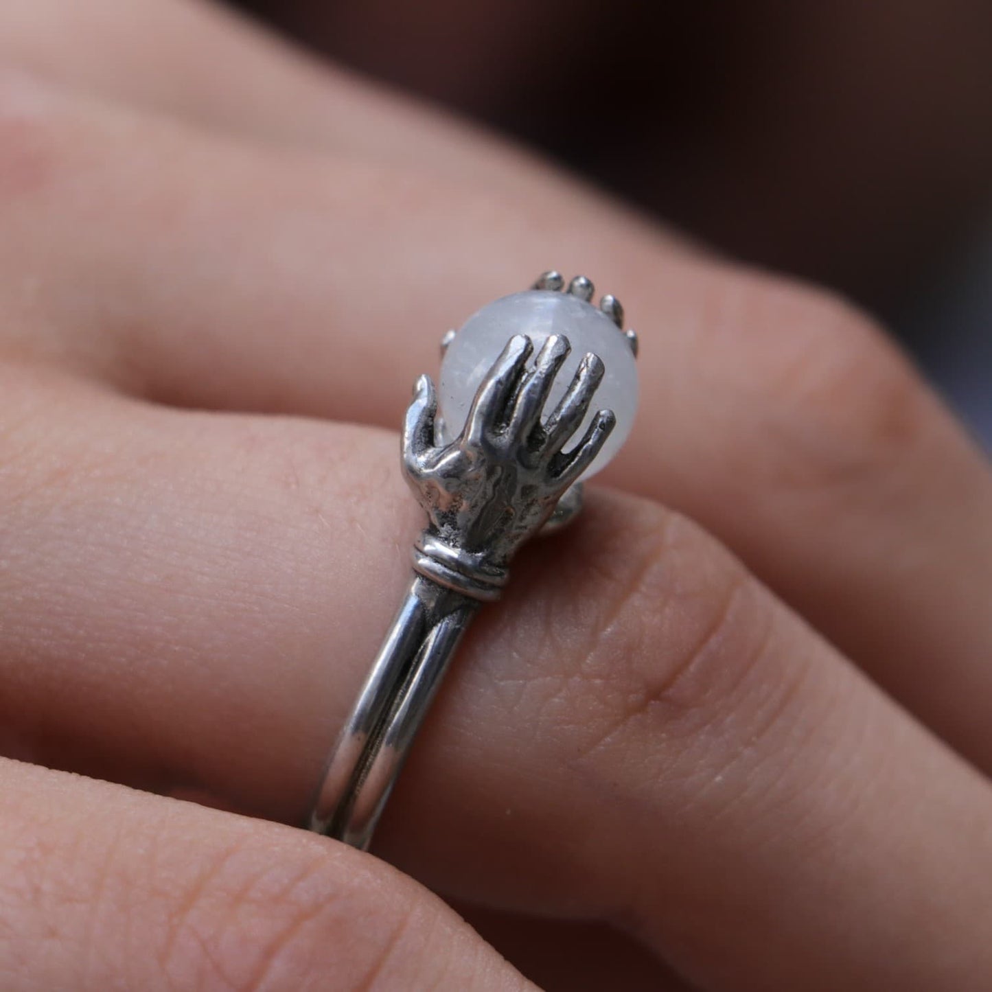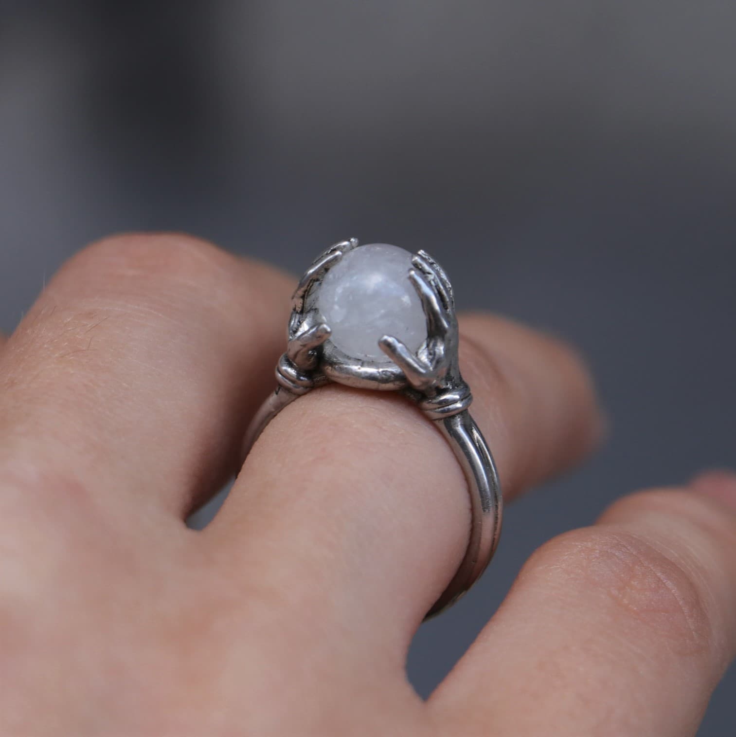 Crystal Moonstone Sphere Between Hands 925 Silver Ring