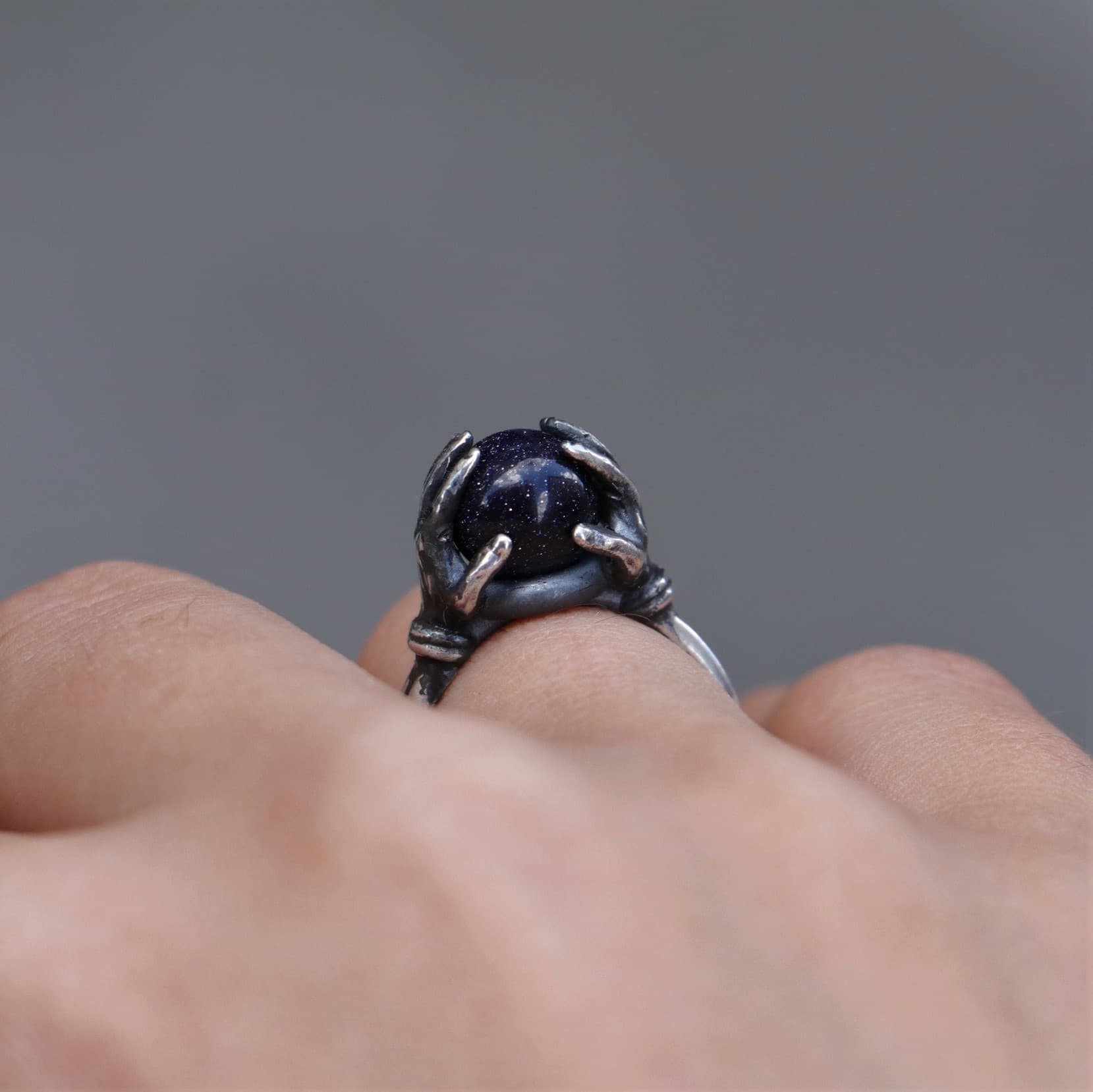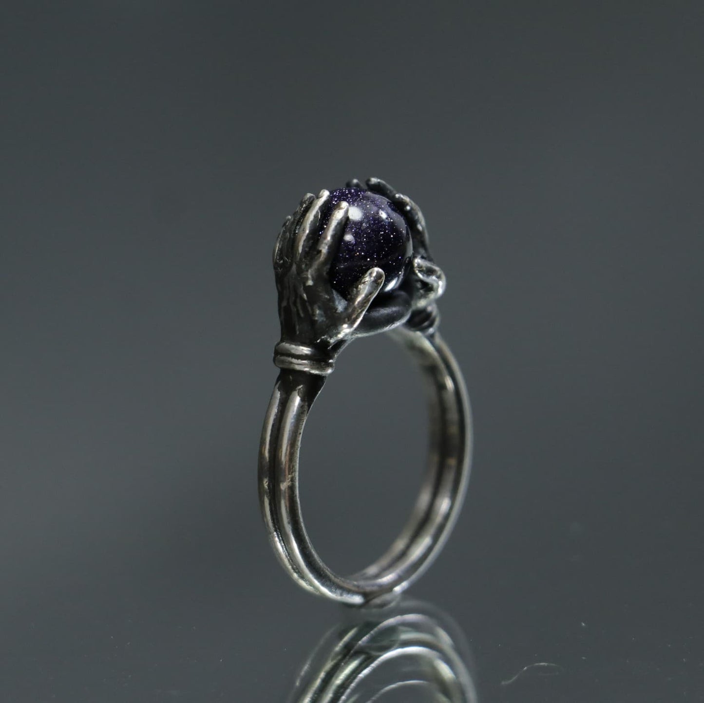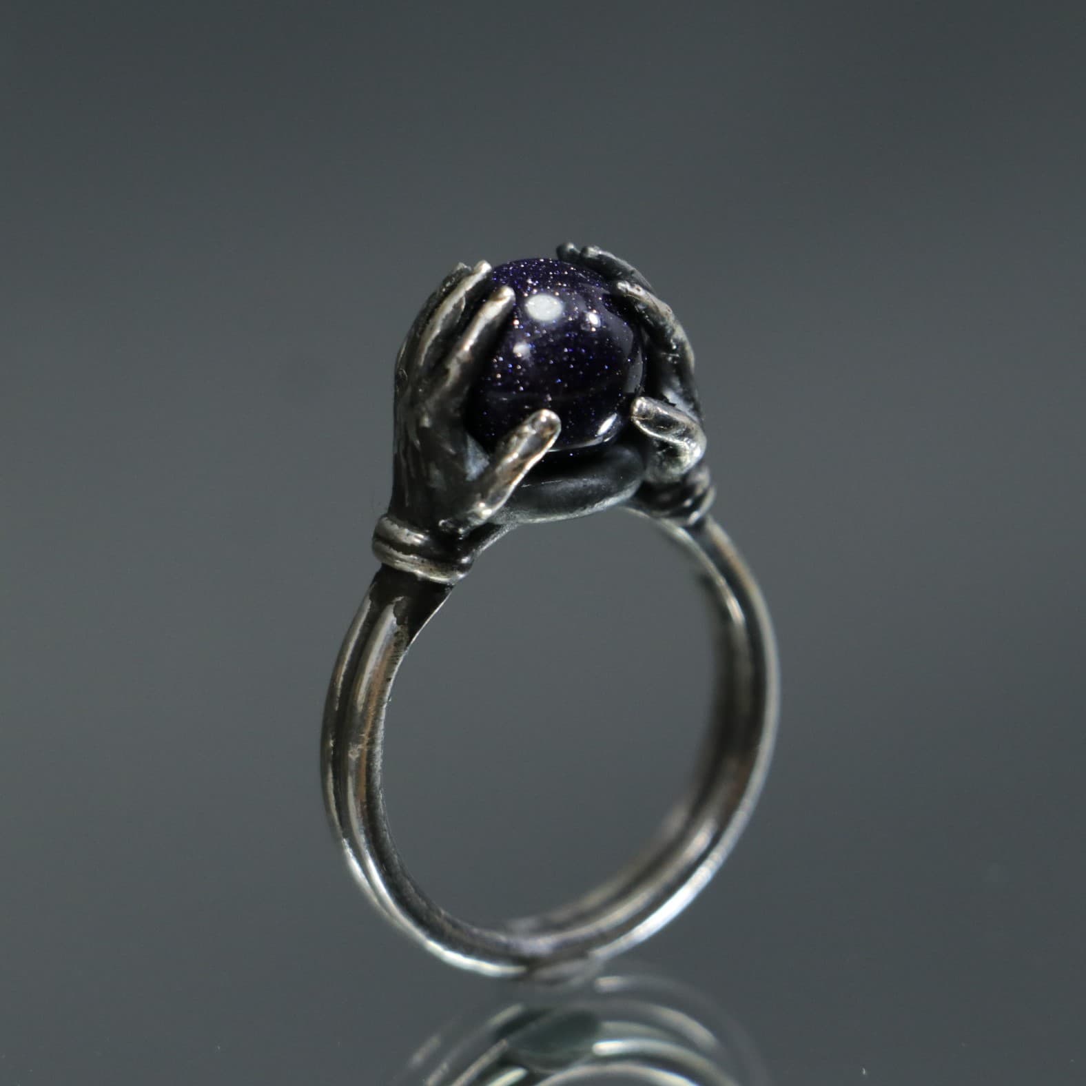 Crystal Ball Between Hands 925 Silver Ring