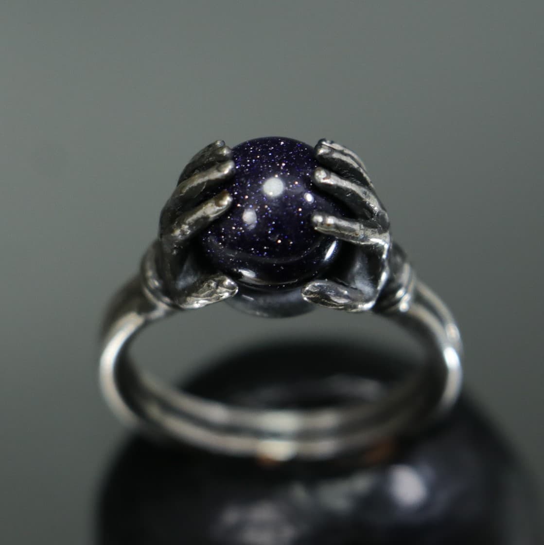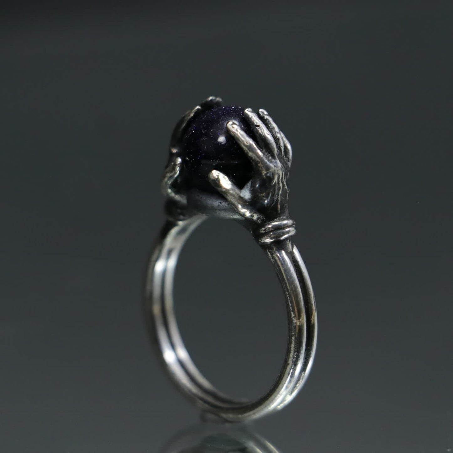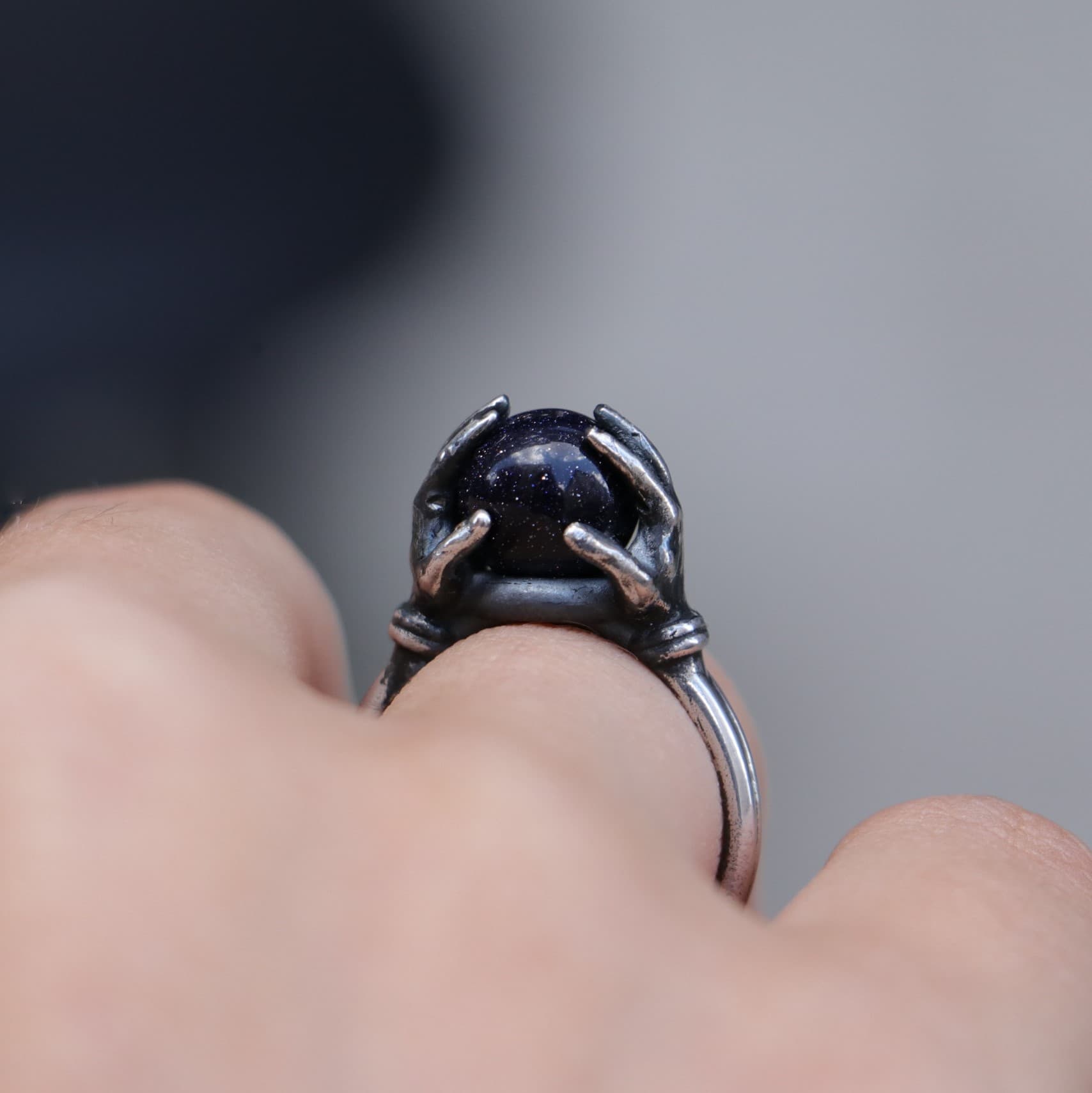 Crystal Ball Between Hands 925 Silver Ring