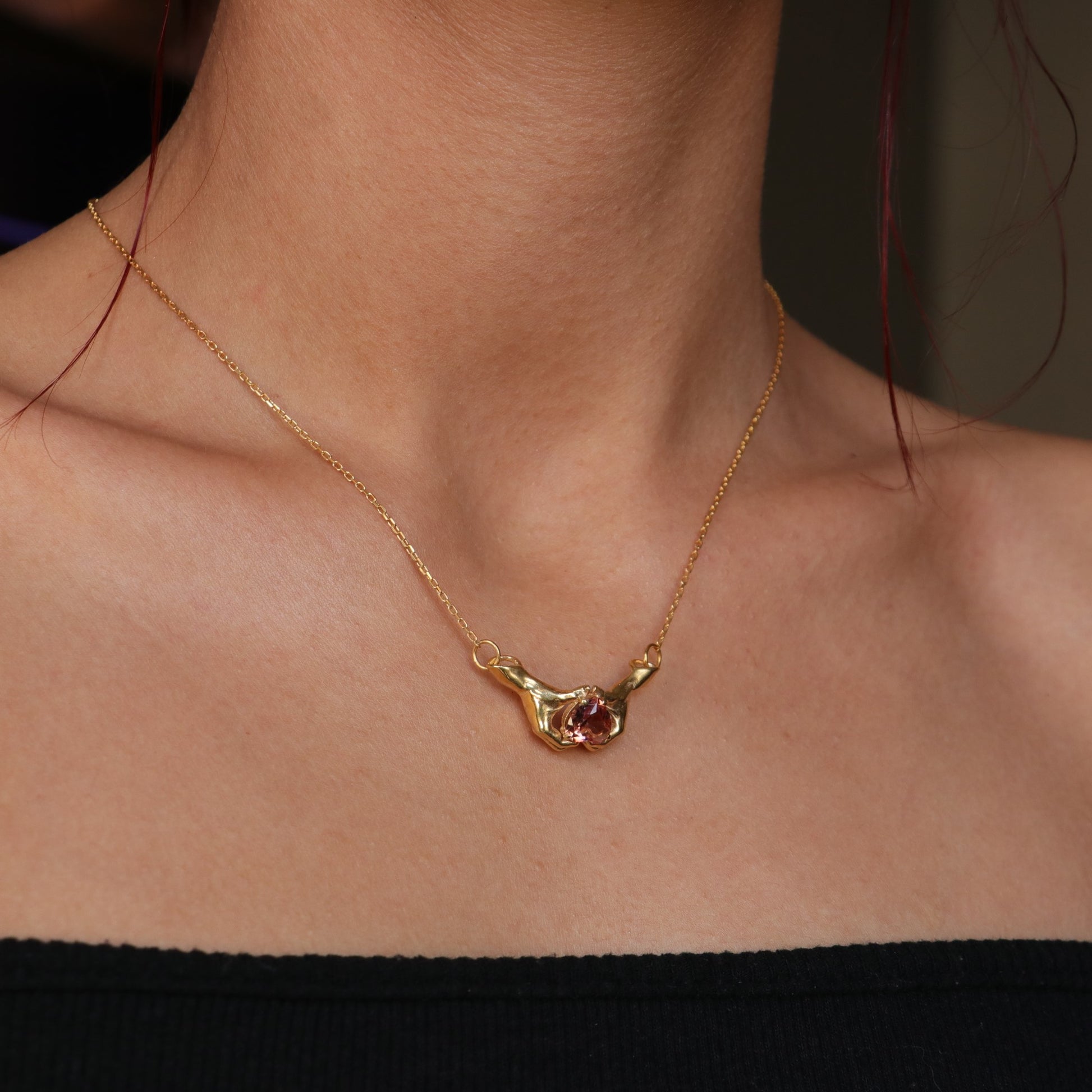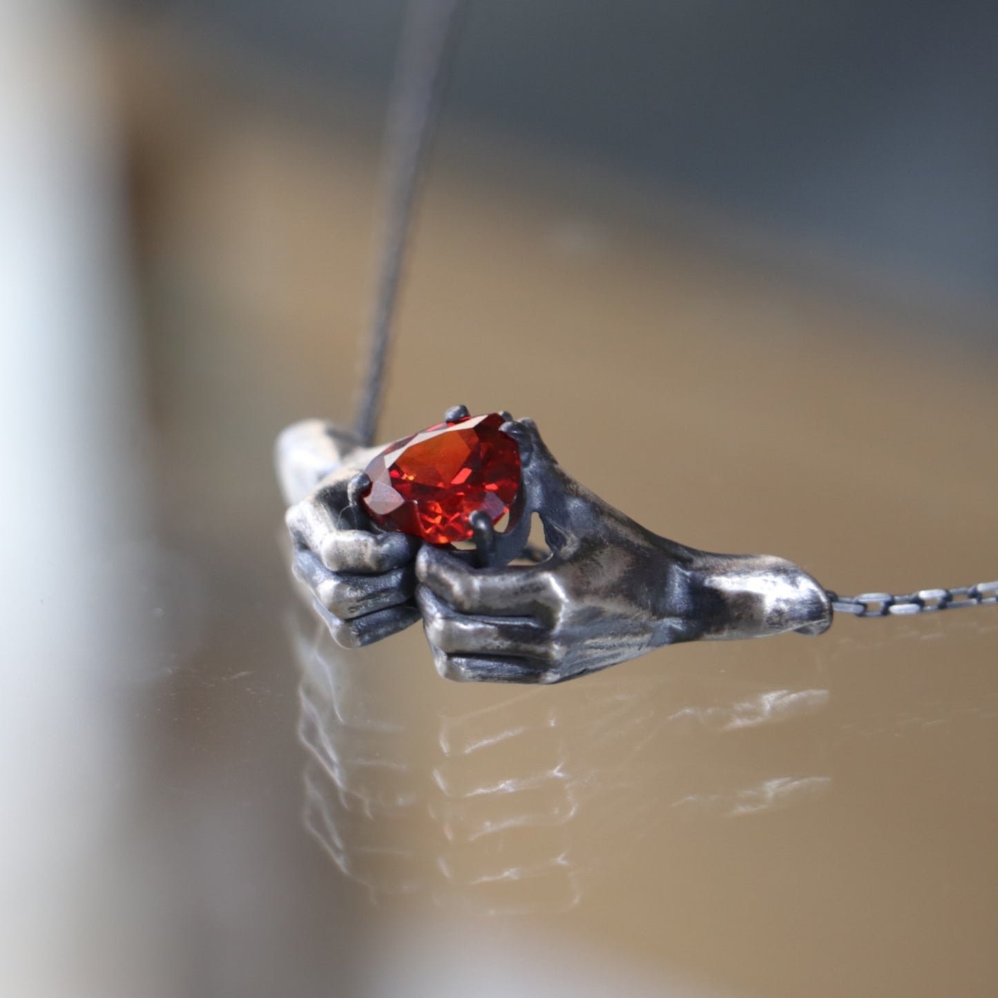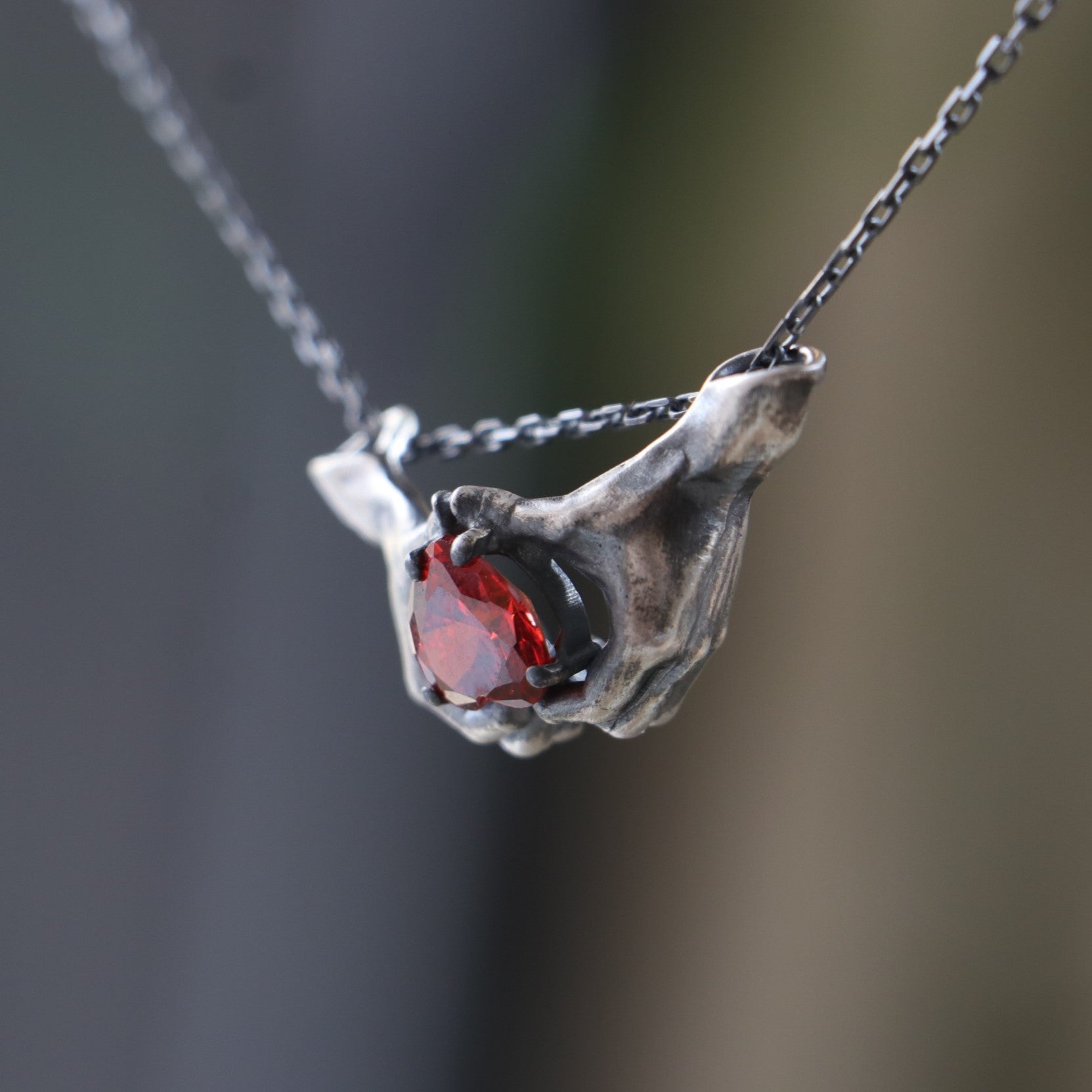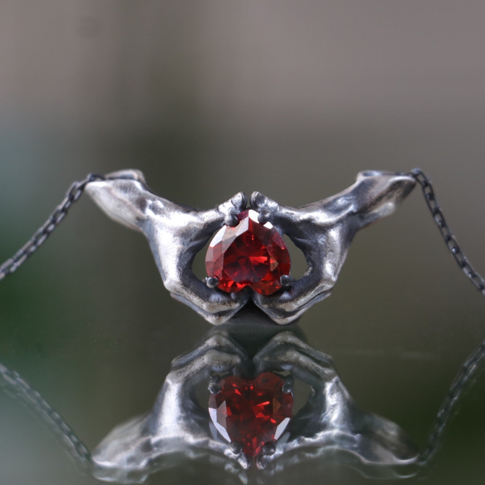Hands Heart Garnet 925 Oxidized Silver Necklace