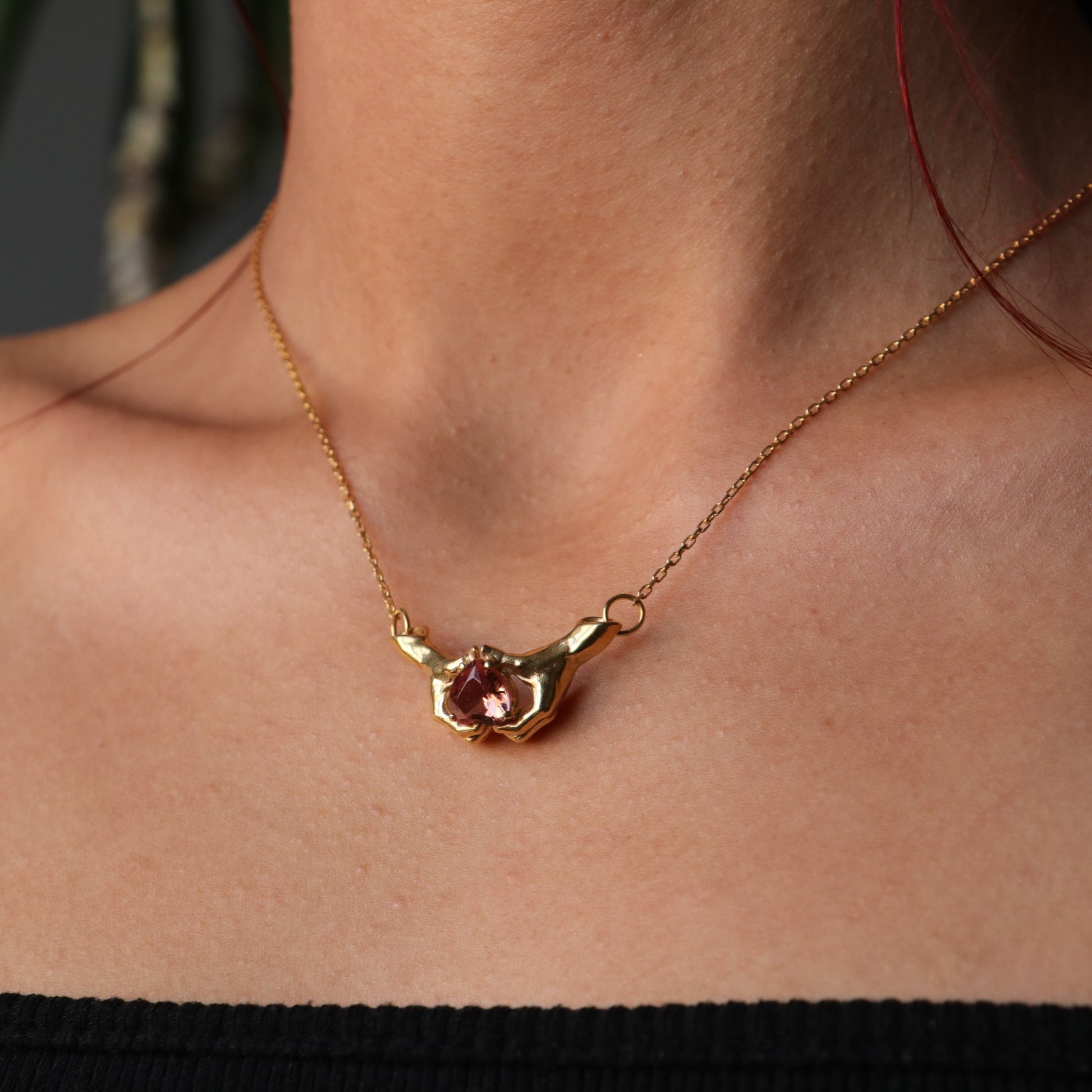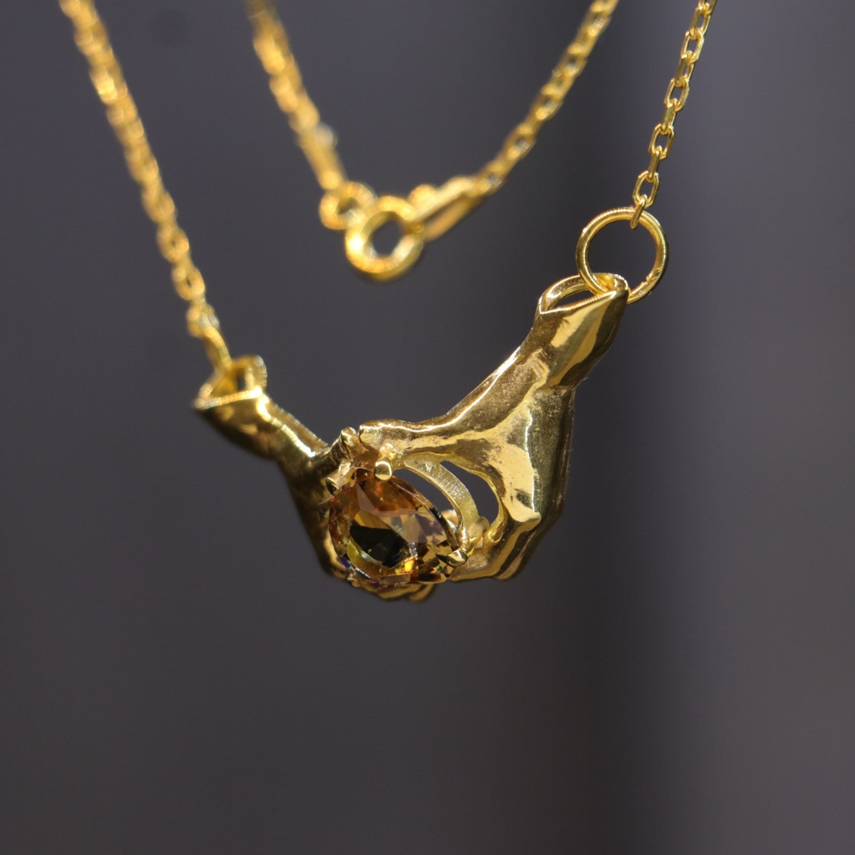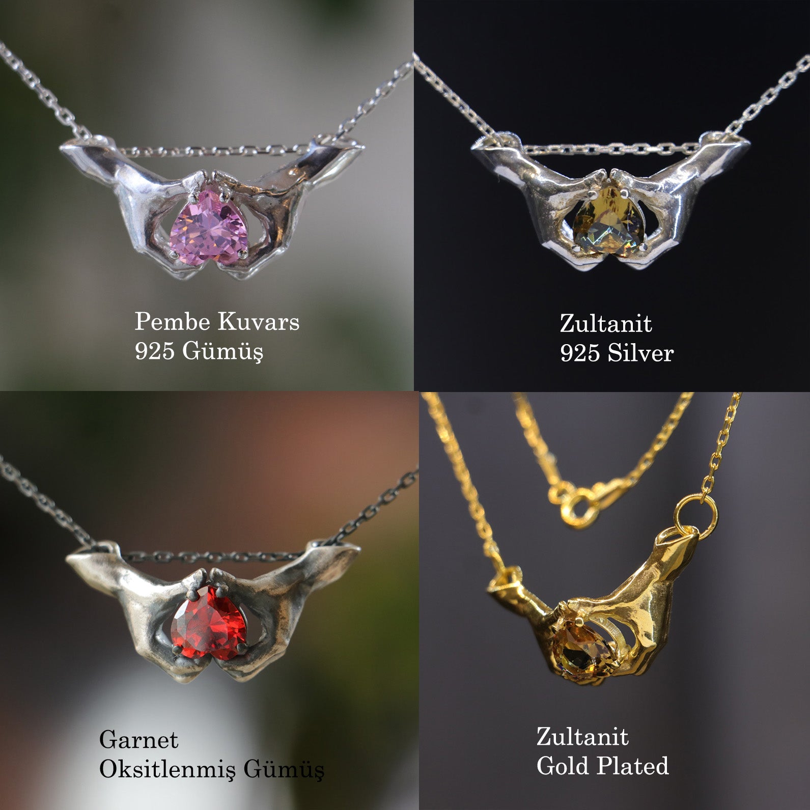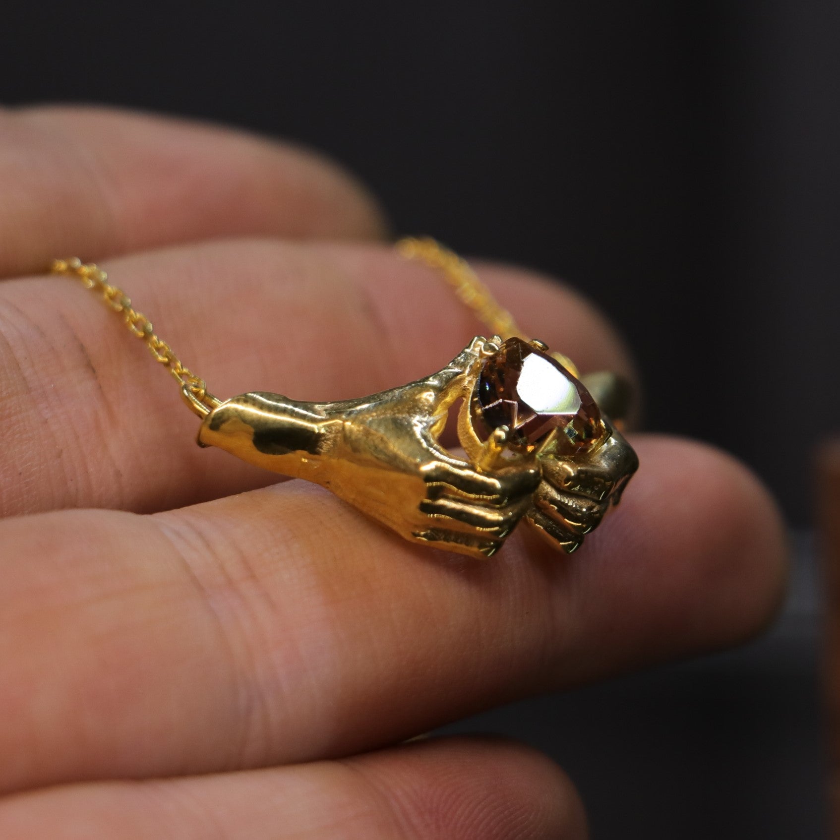 Hands Heart Zultanite 925 Silver Gold Plated Necklace