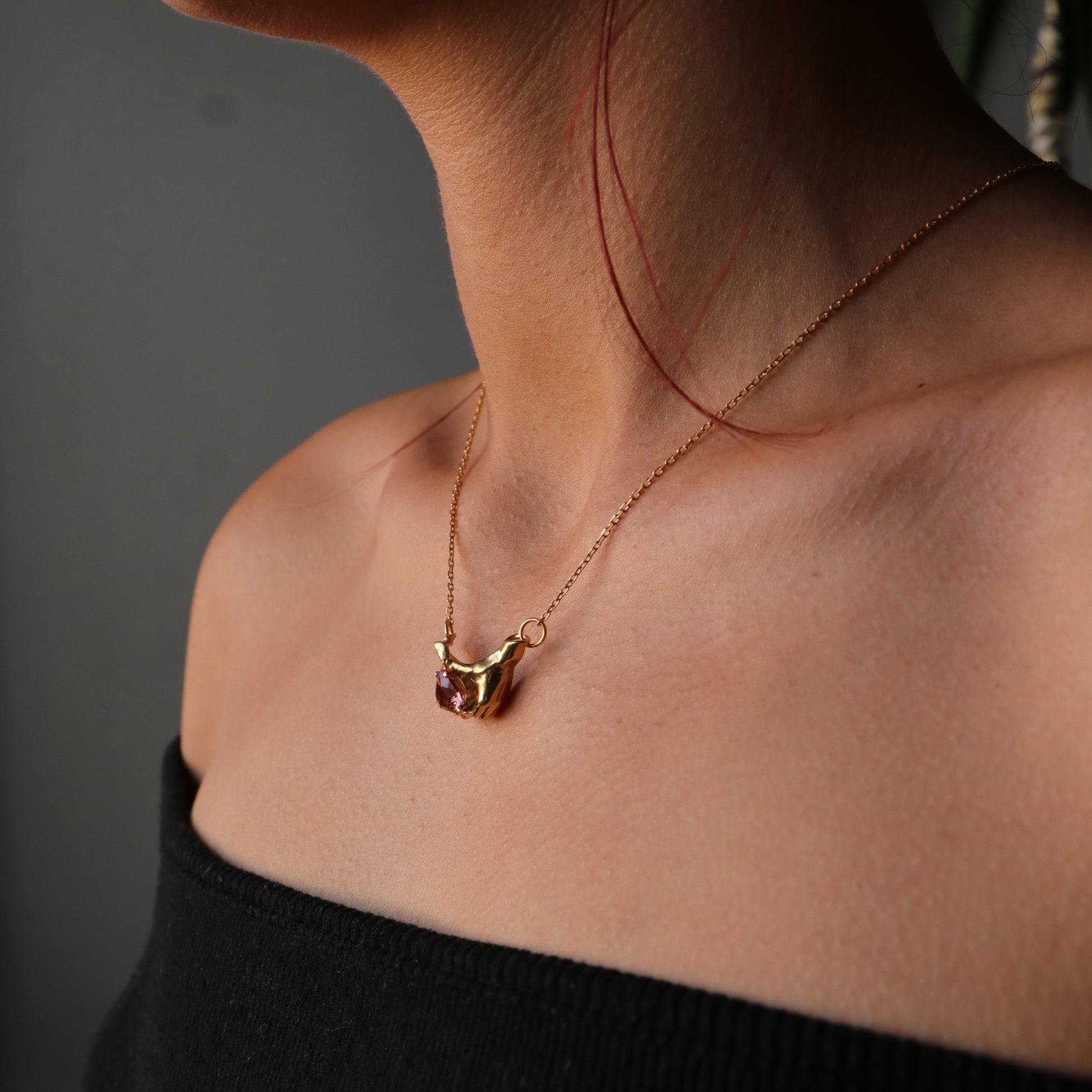 In my designs, which are improvised with the emotions felt by the raw, natural stones I use, I combine the stones with the "nailing" technique, which is also an old-school craft, without using any chemical ingredients.