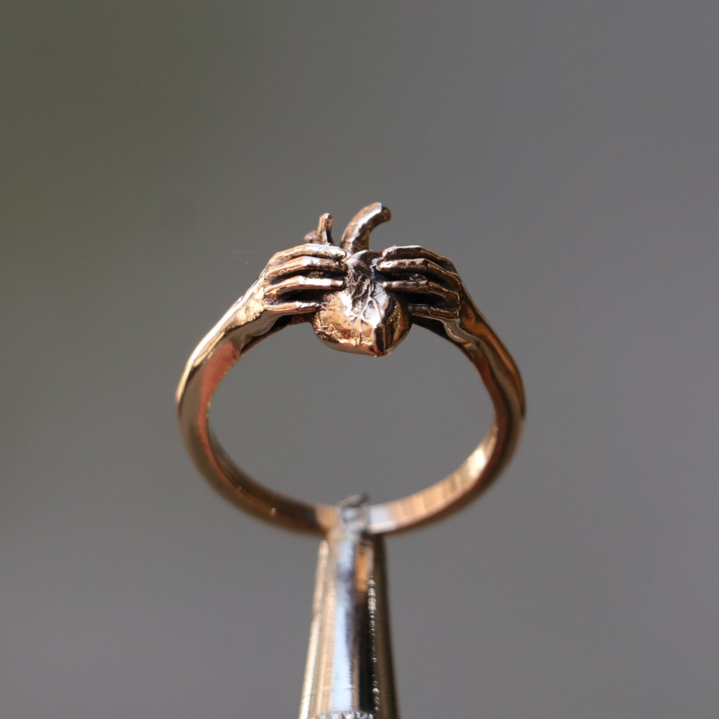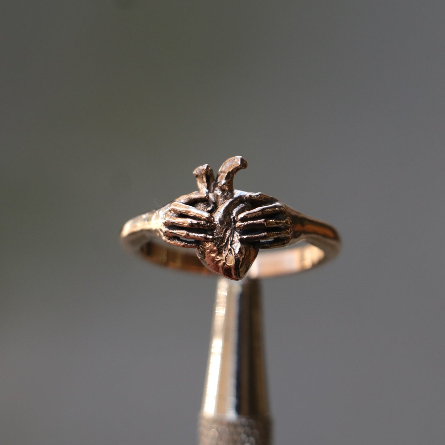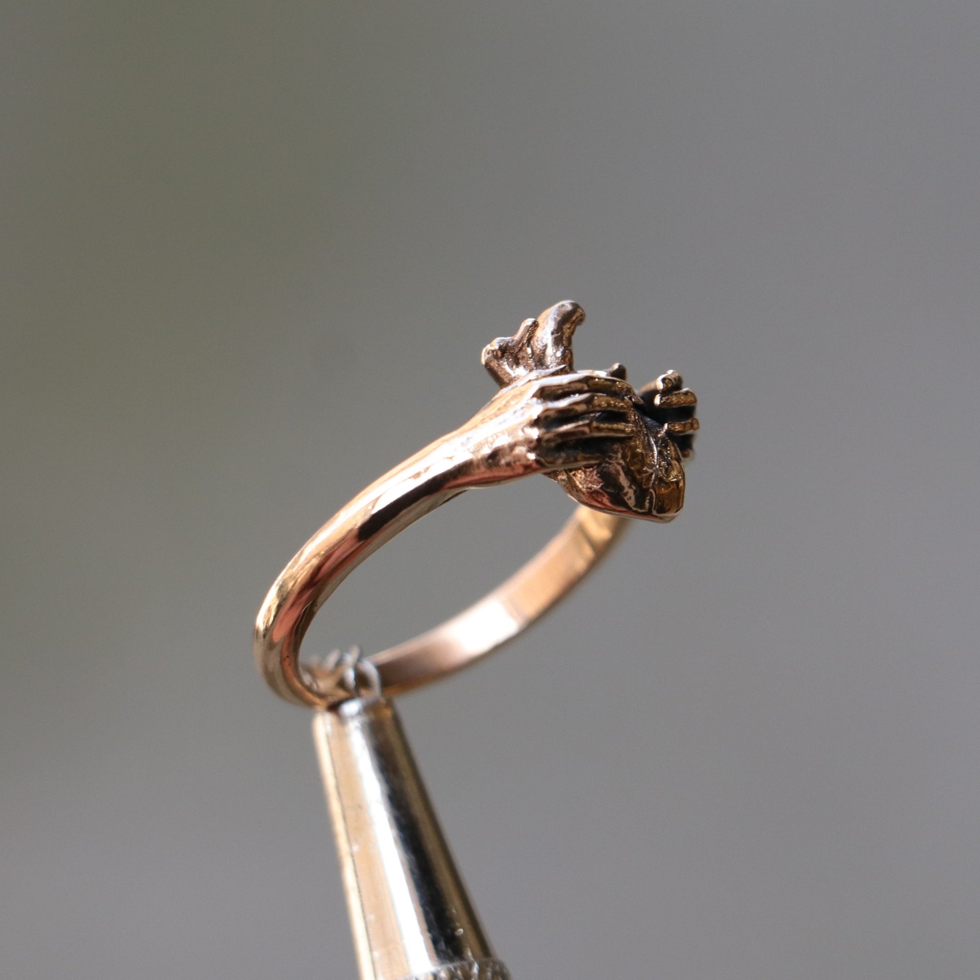 I oxidize and darken the bronze metal I use when creating my designs to give it an aged appearance and to make it look as if it had come out of the ground.