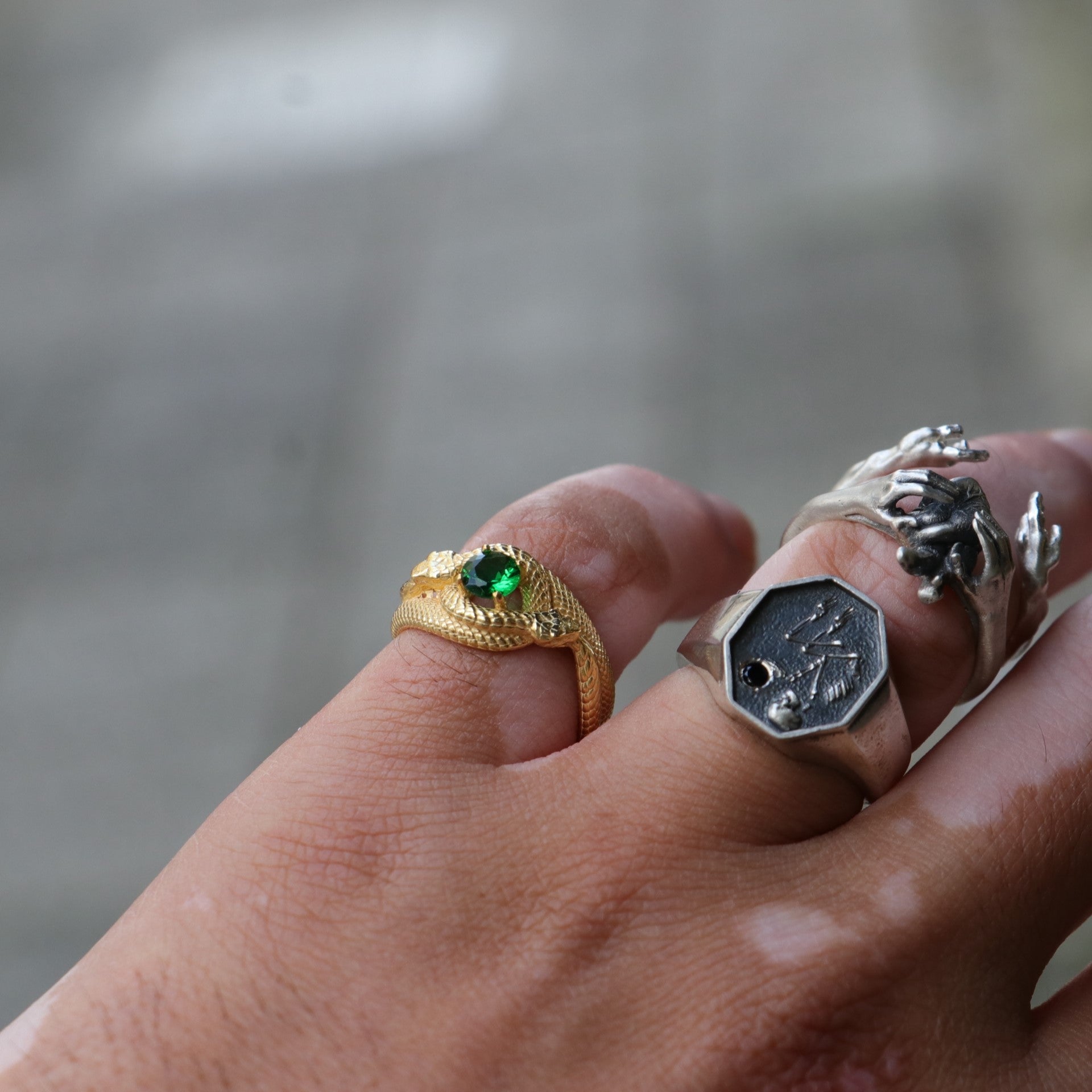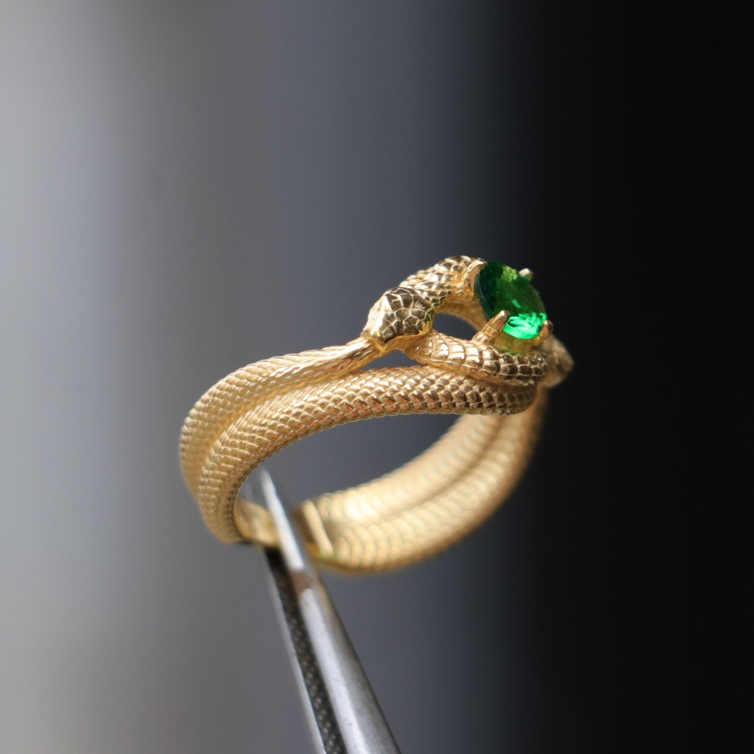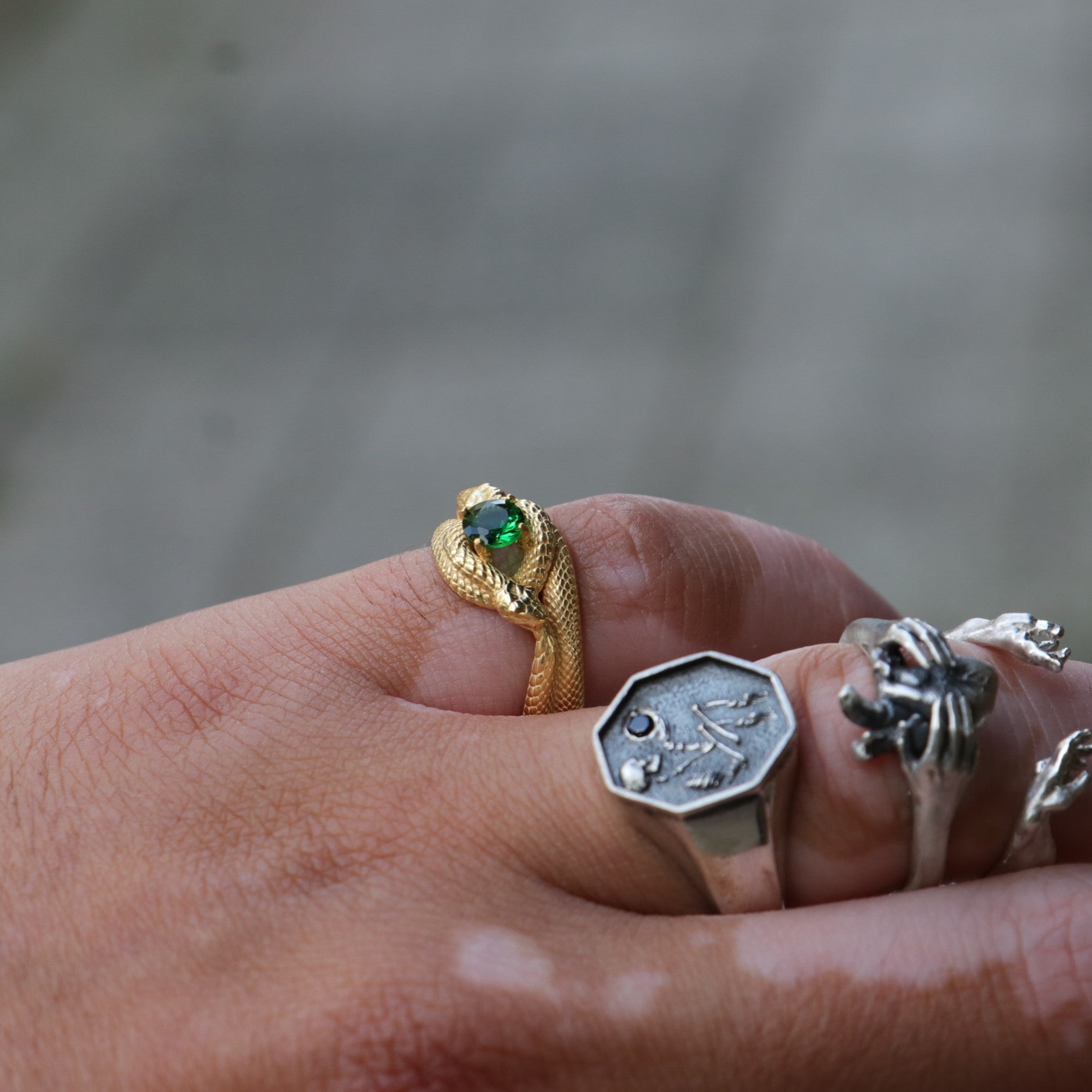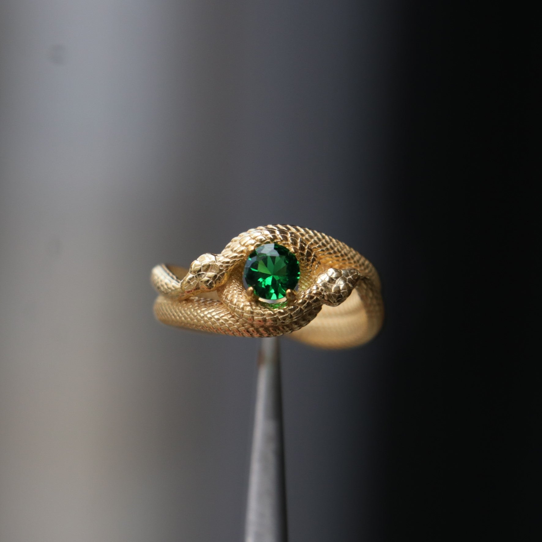 Emerald Ouroboros 925 Silver Gold Plated Ring