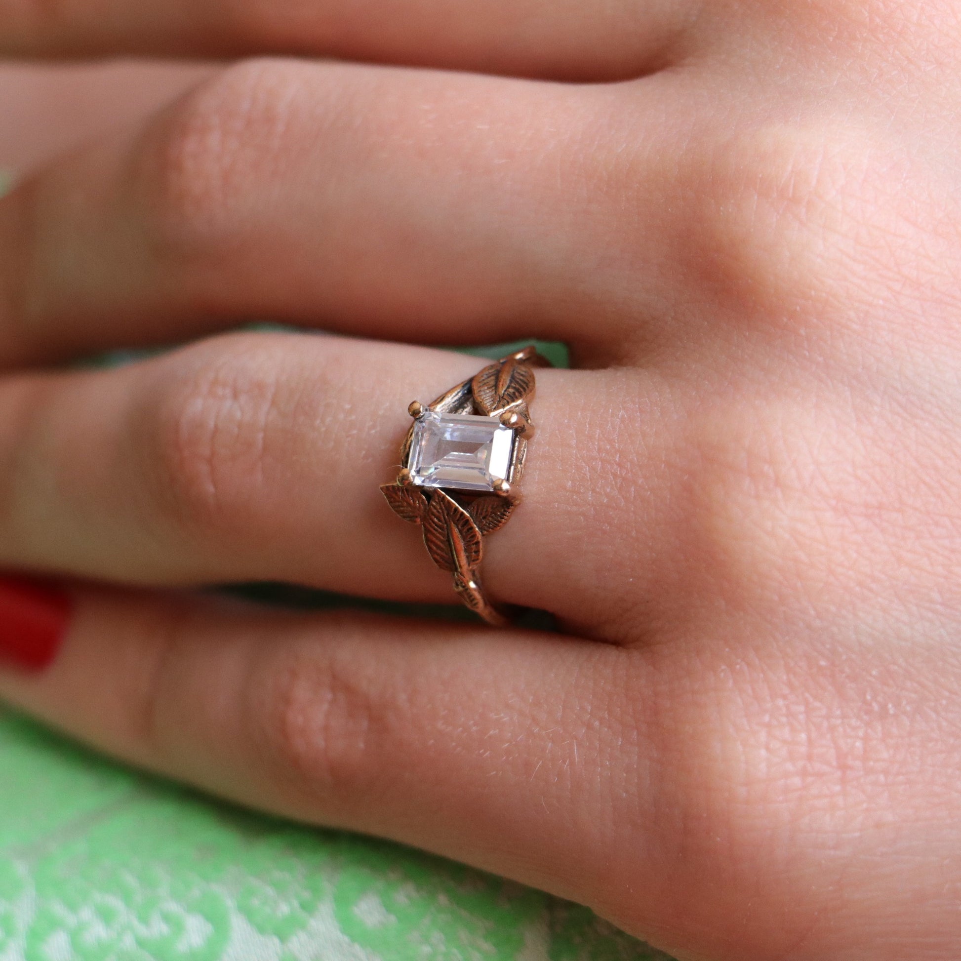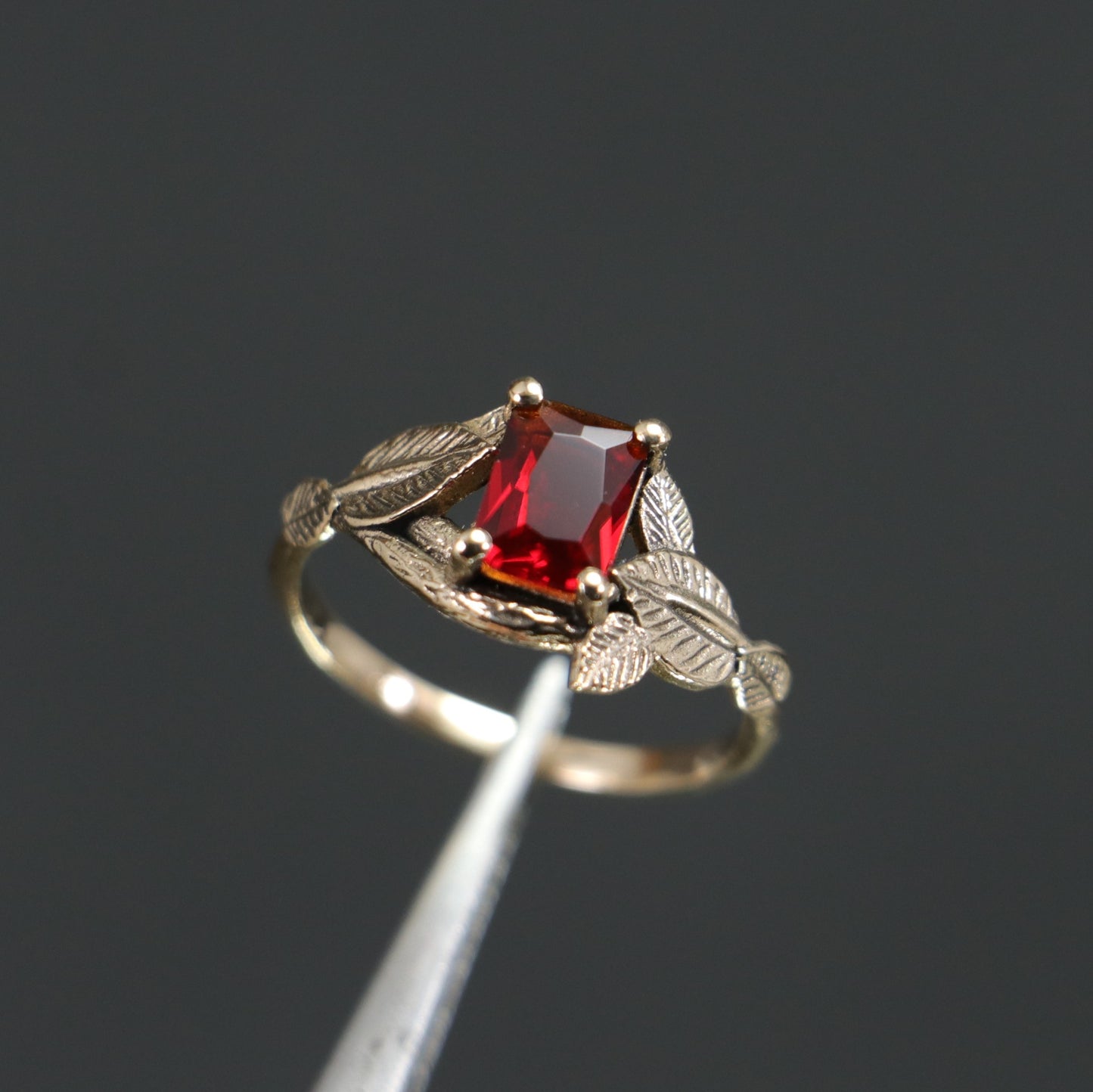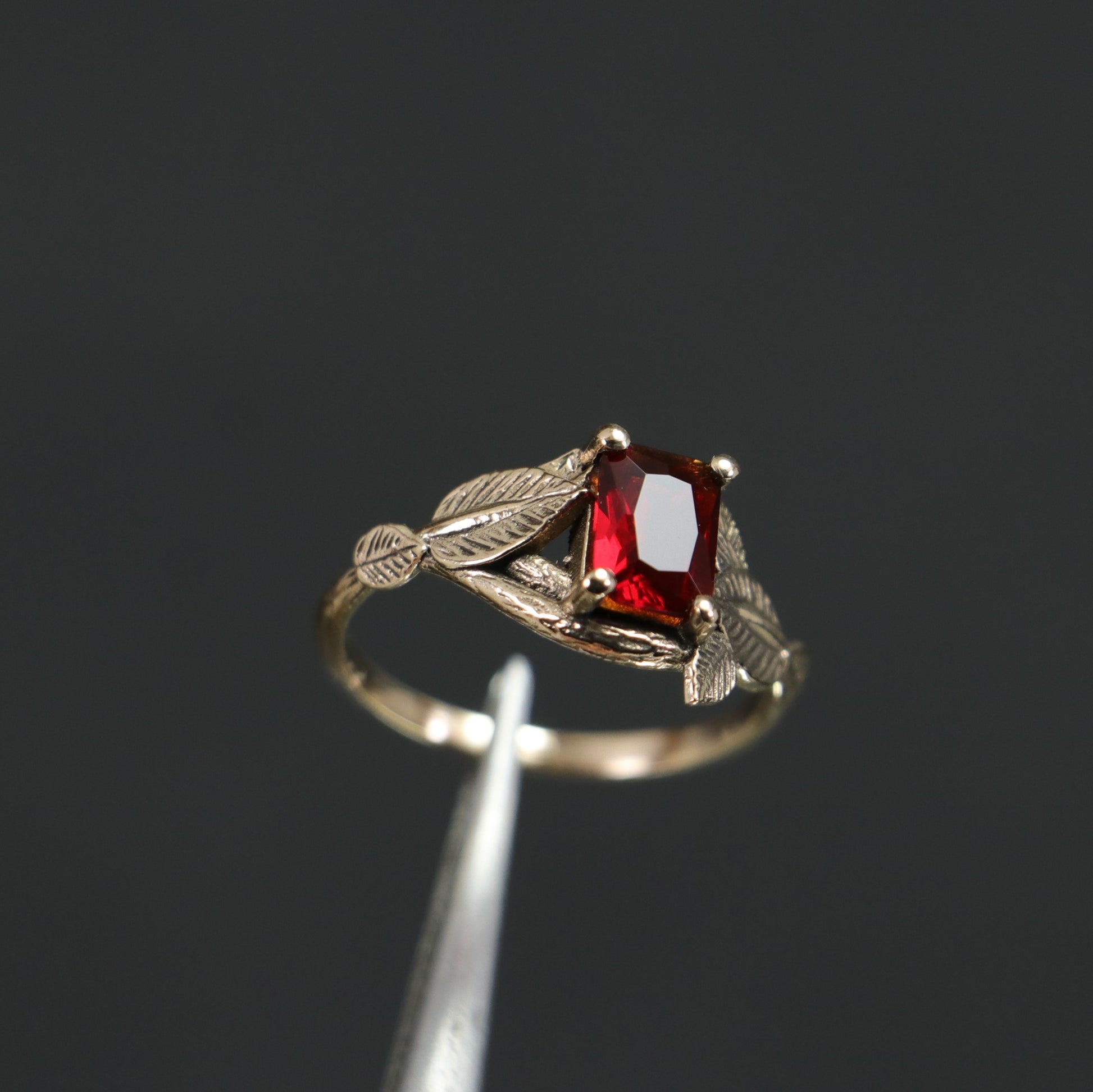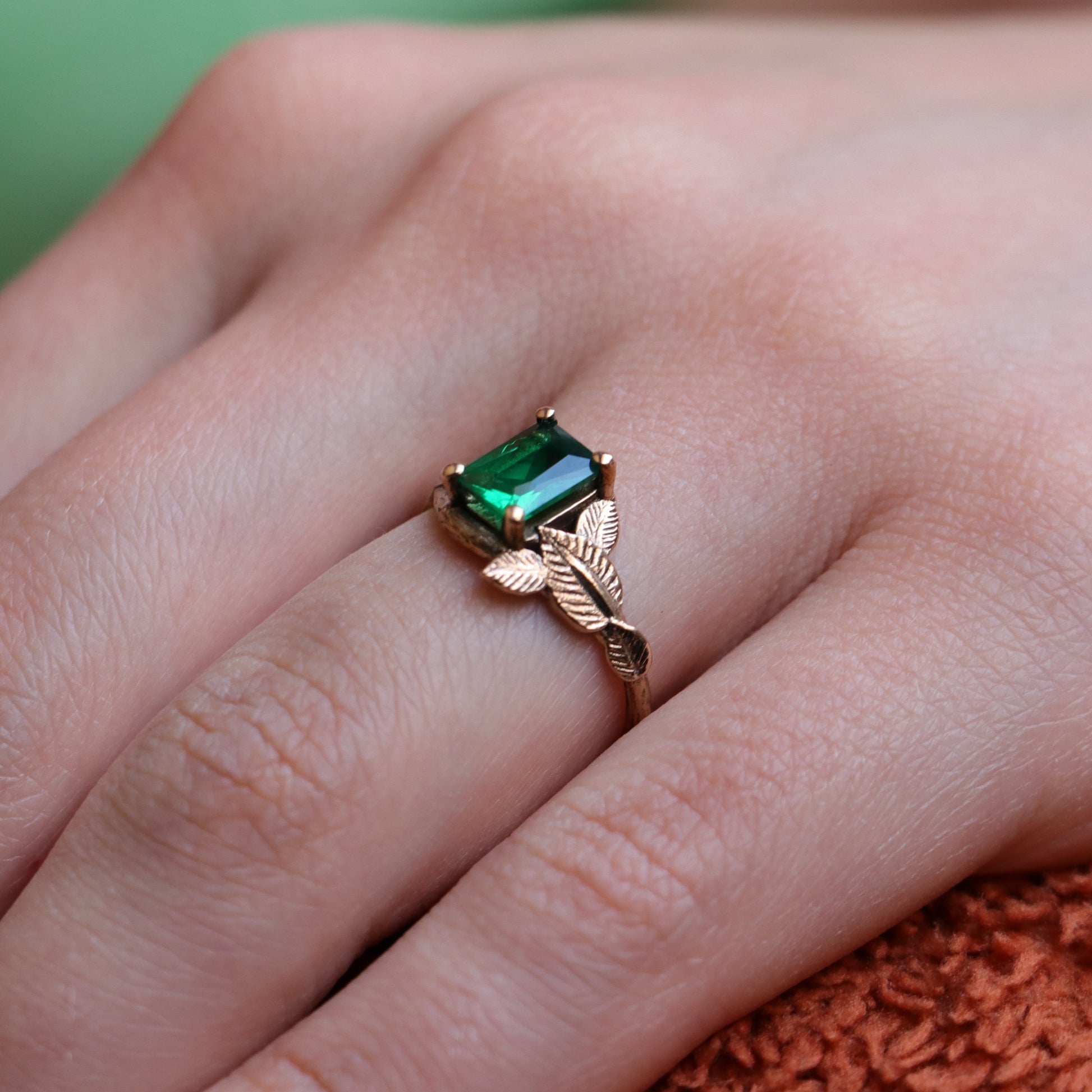 Emerald Ruby Leaf Ring