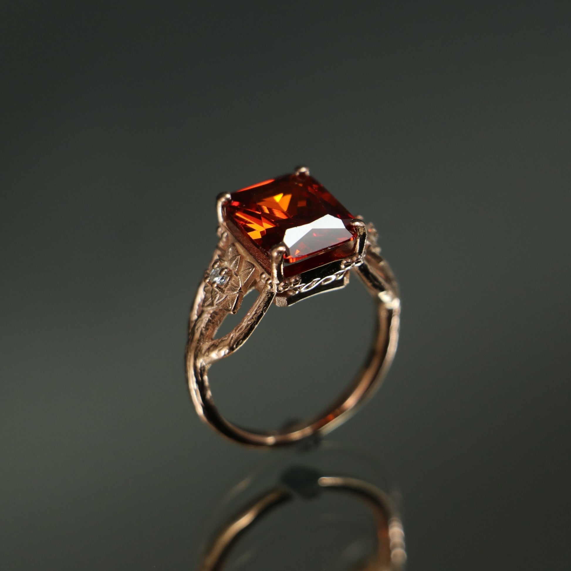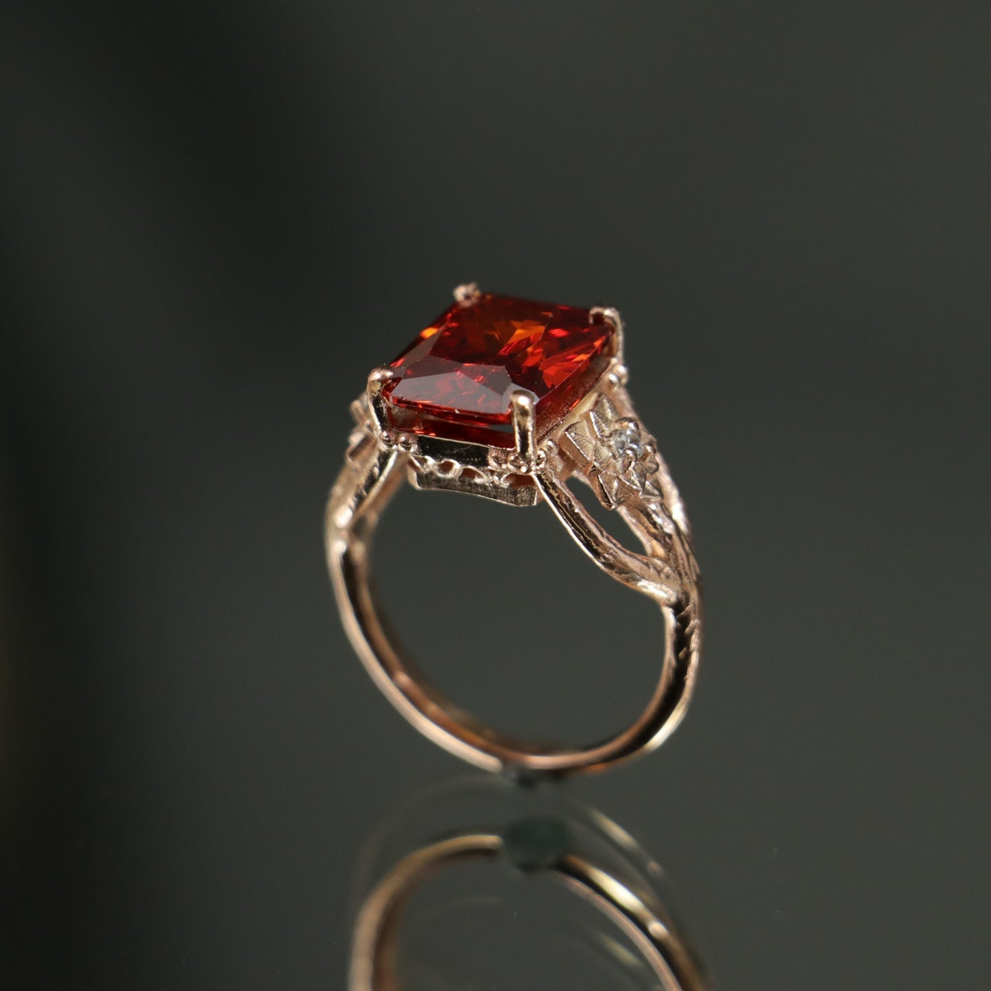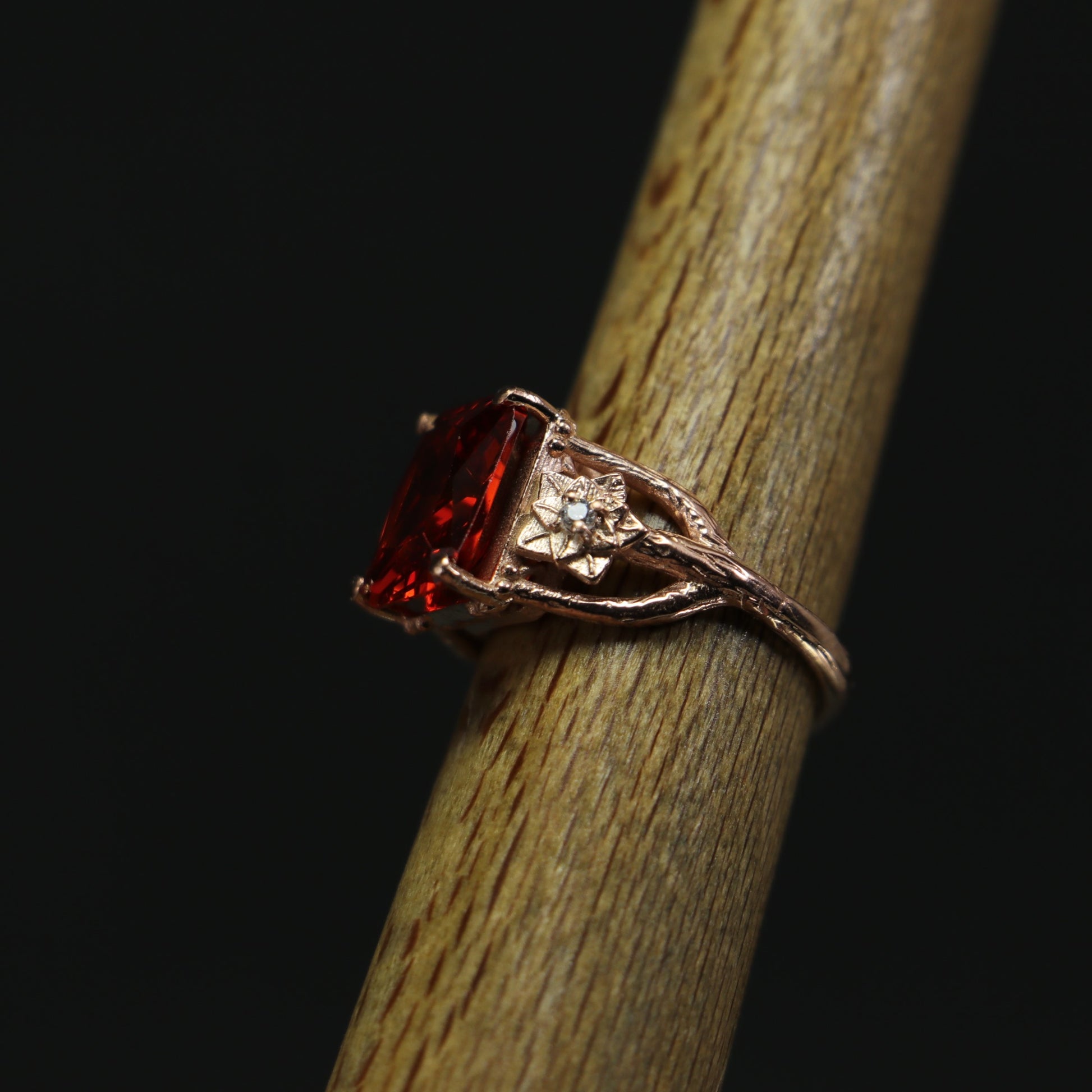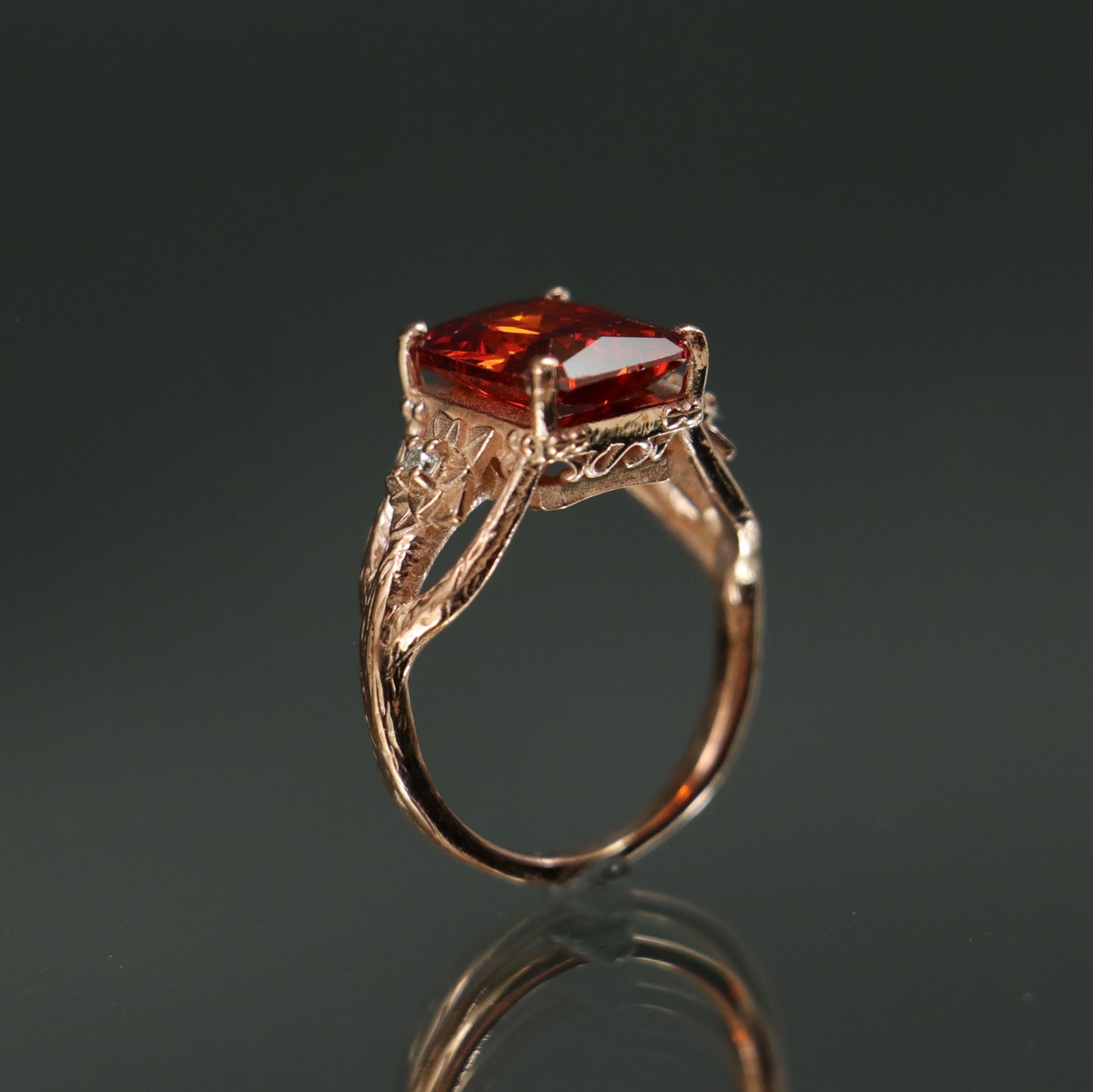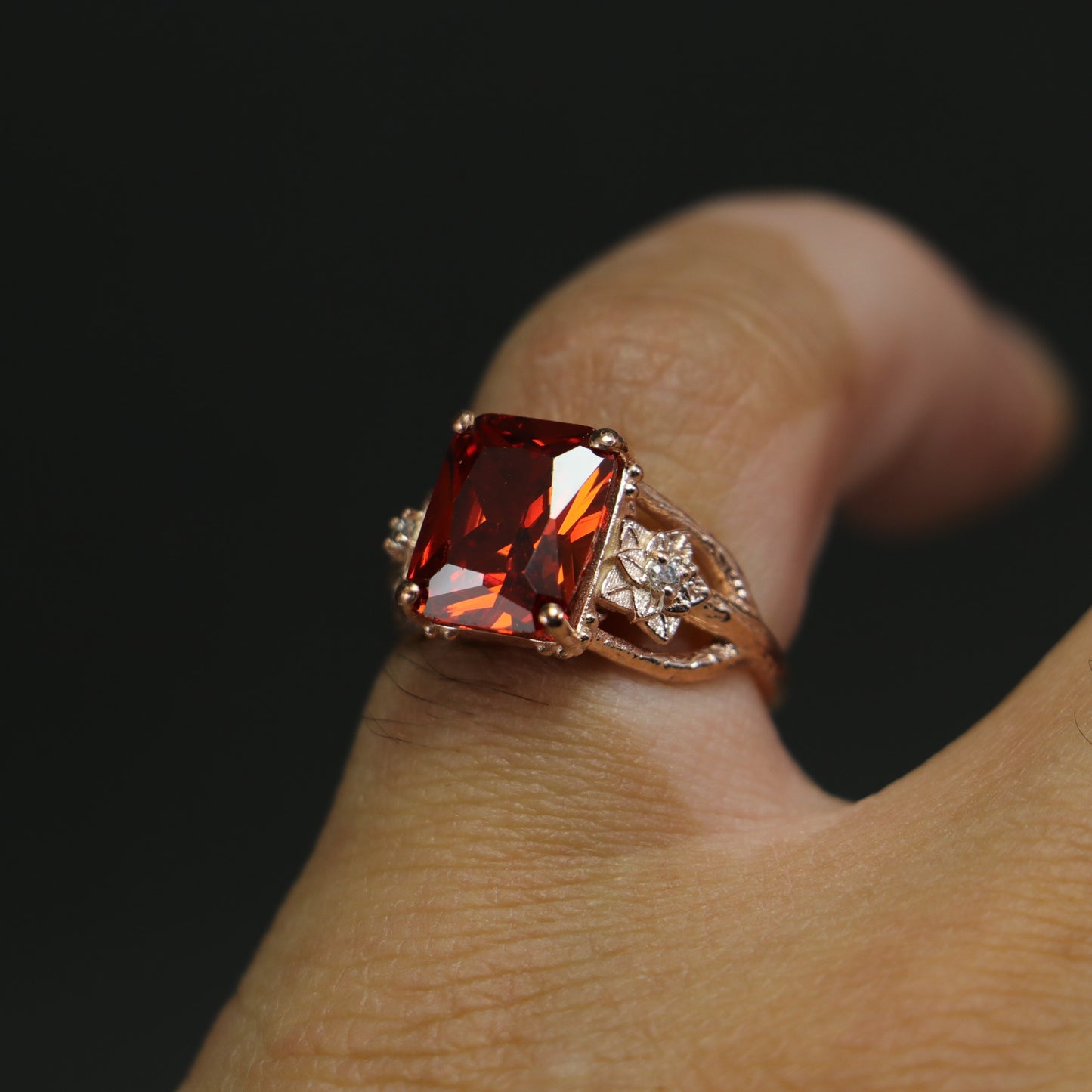 Garnet Lotus Ring 925 Silver Rose Gold Plated