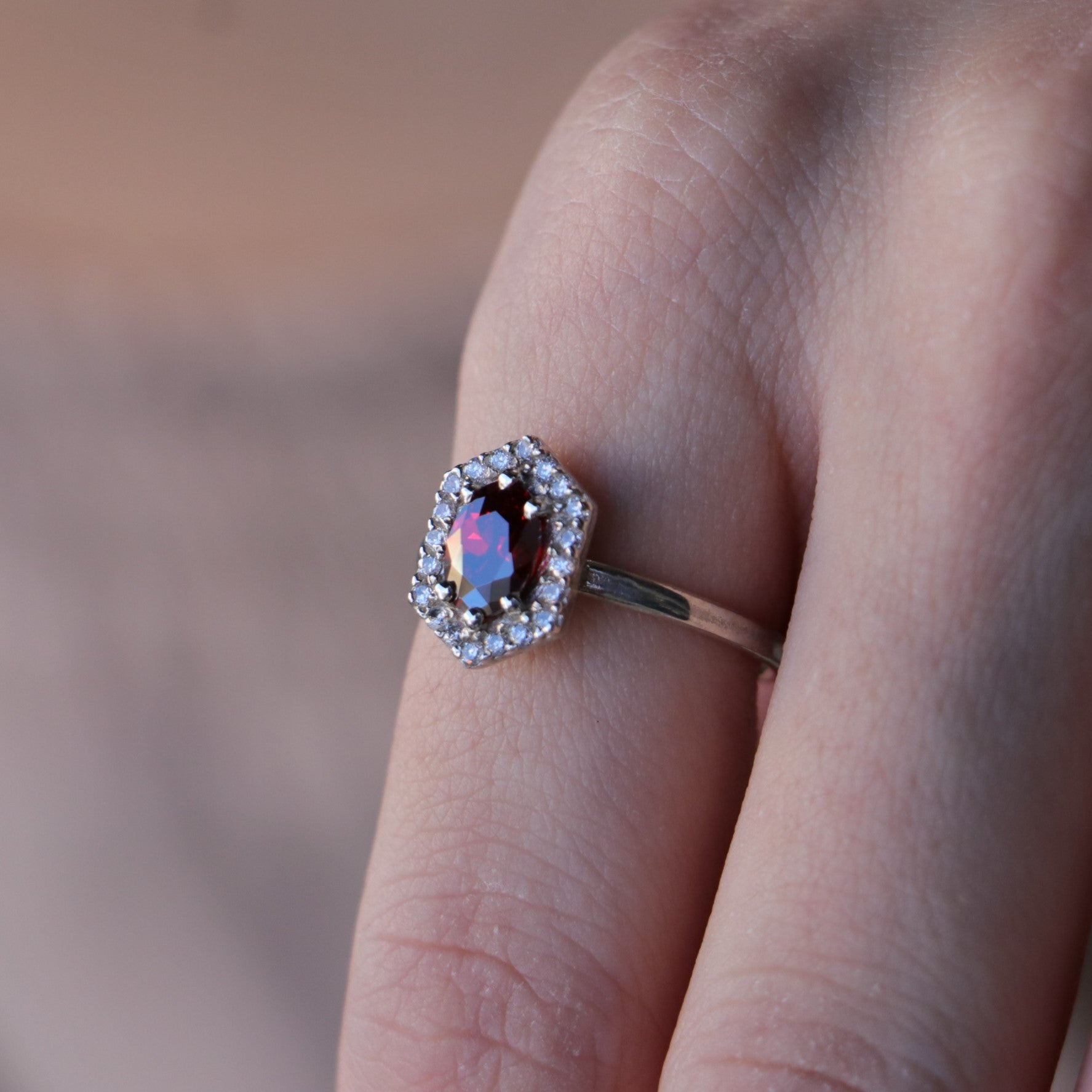 Garnet and Moissanite 925 Silver Gold Plated Ring