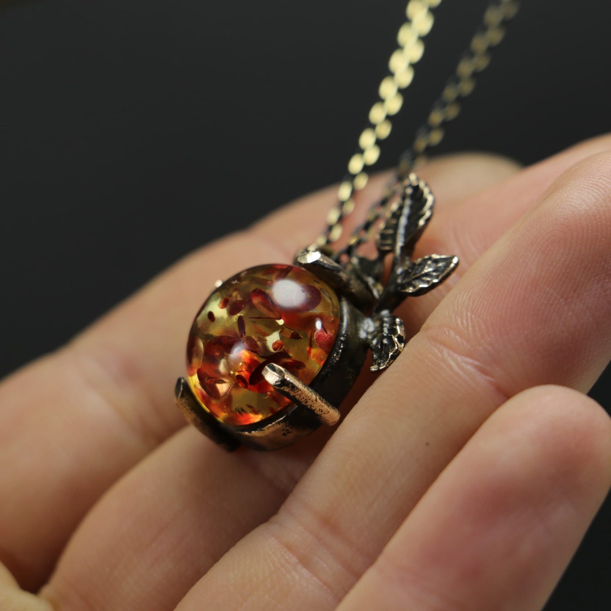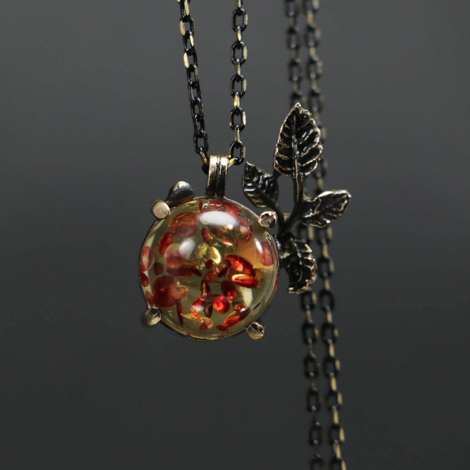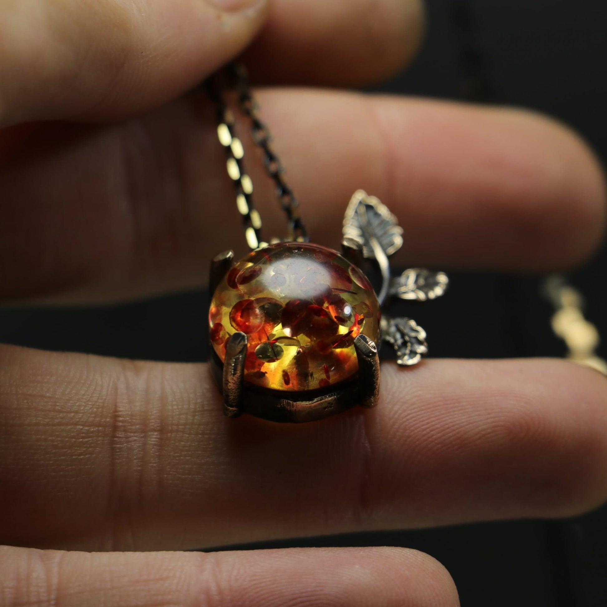 Amber Stone Leaf Necklace