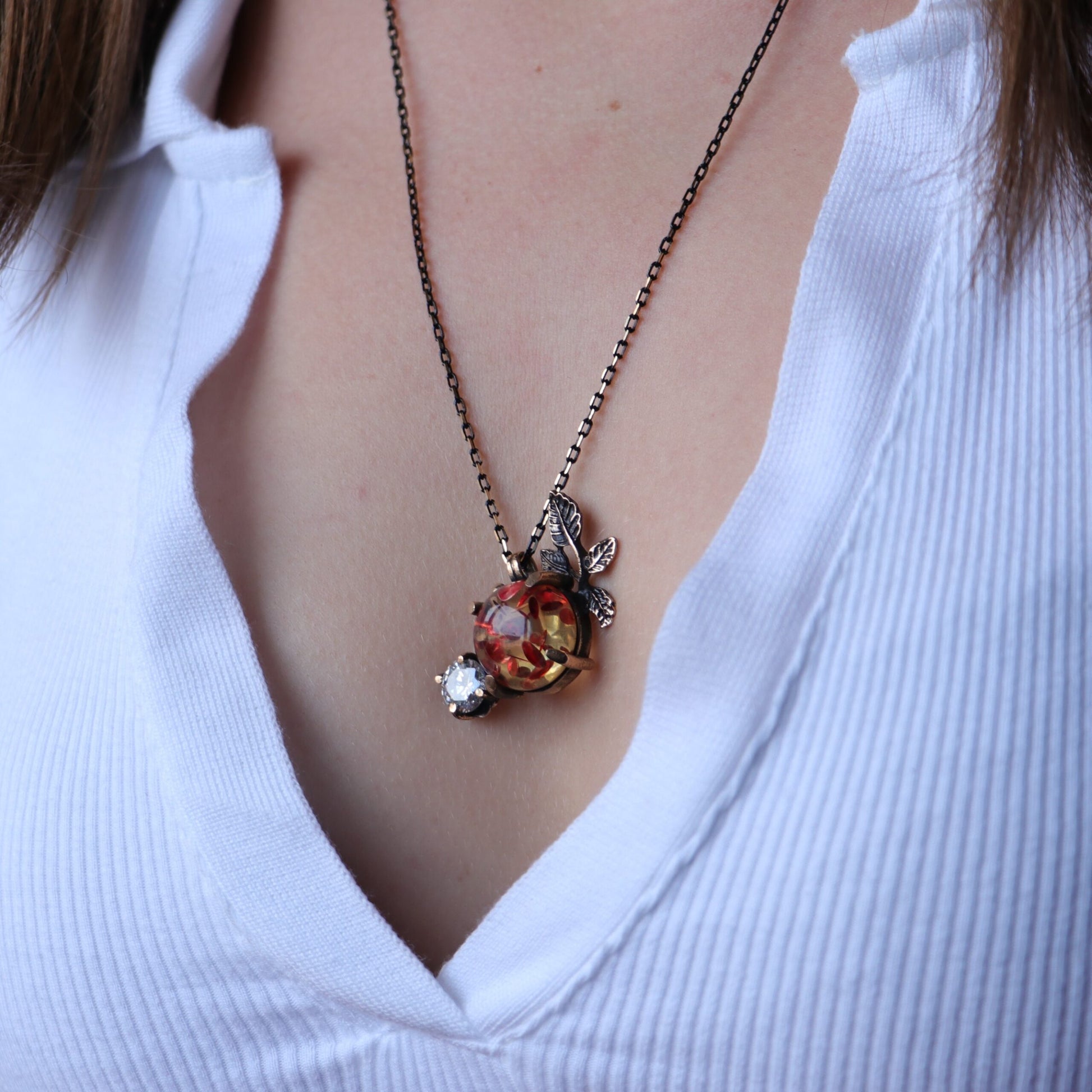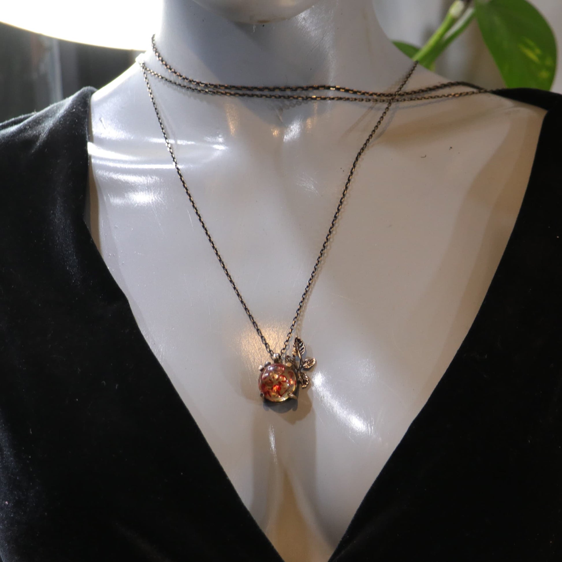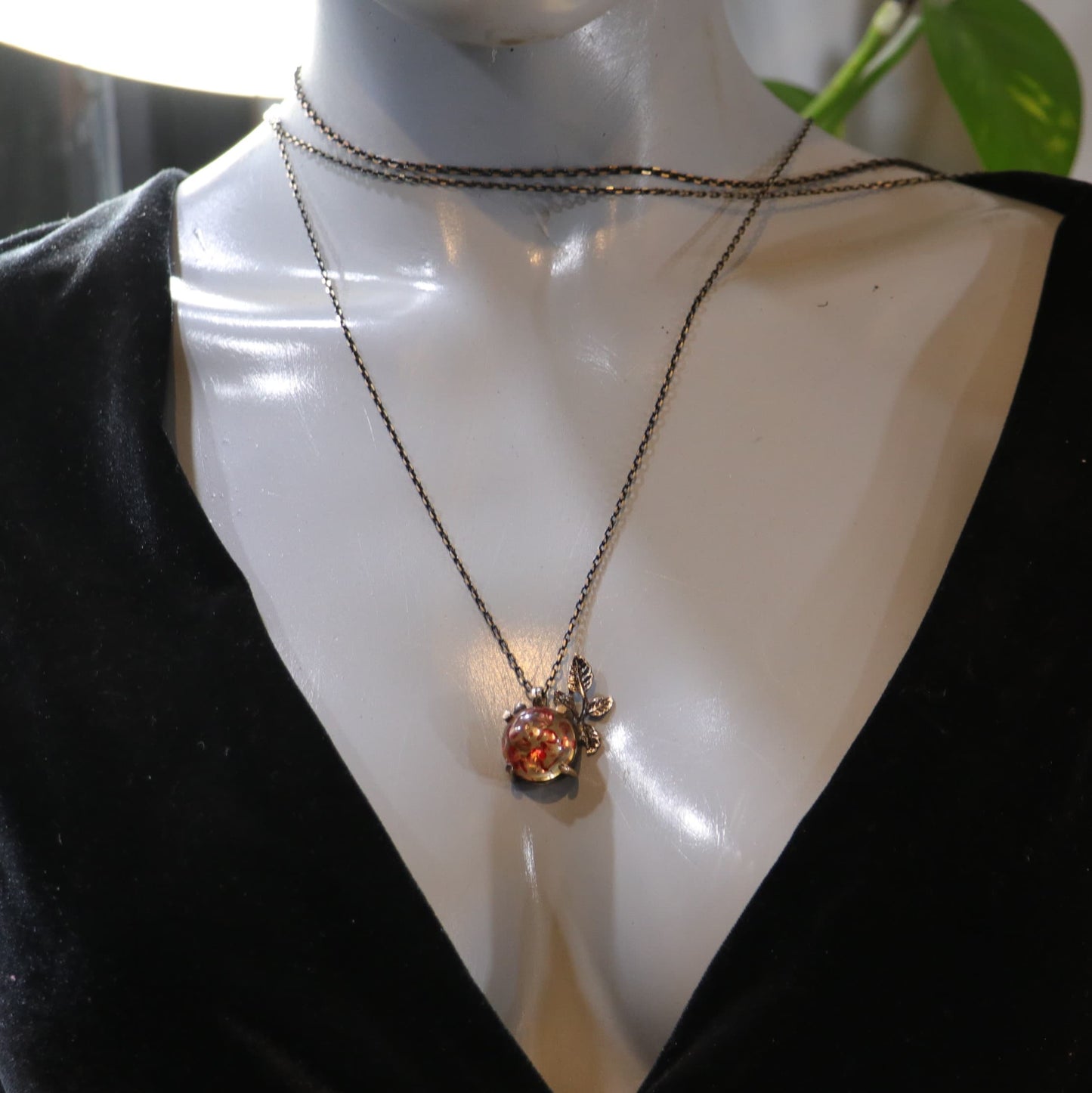 Amber Stone Leaf Necklace
