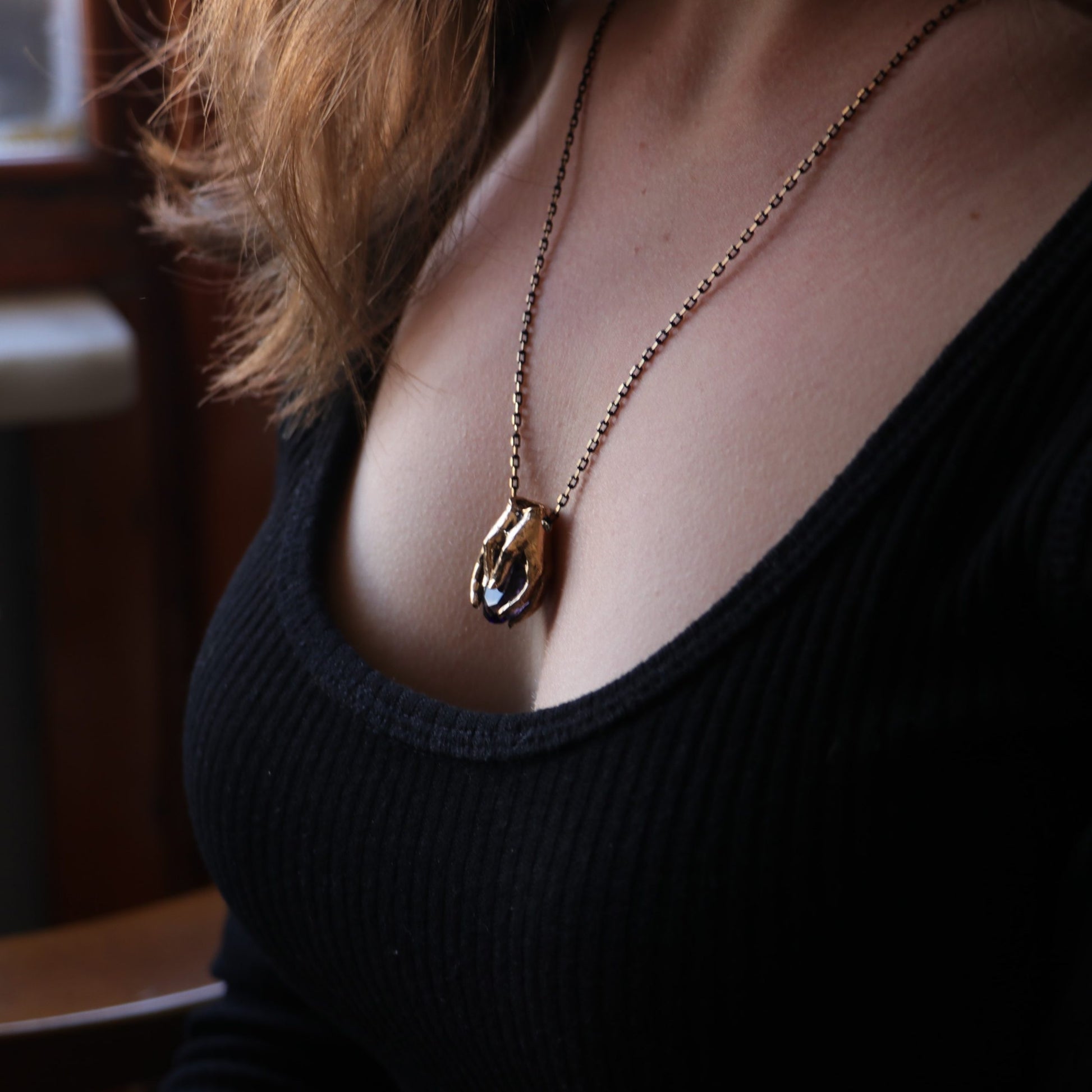 I oxidize and darken the bronze metal I use when creating my designs to give it an aged appearance and to make it look as if it had come out of the ground.