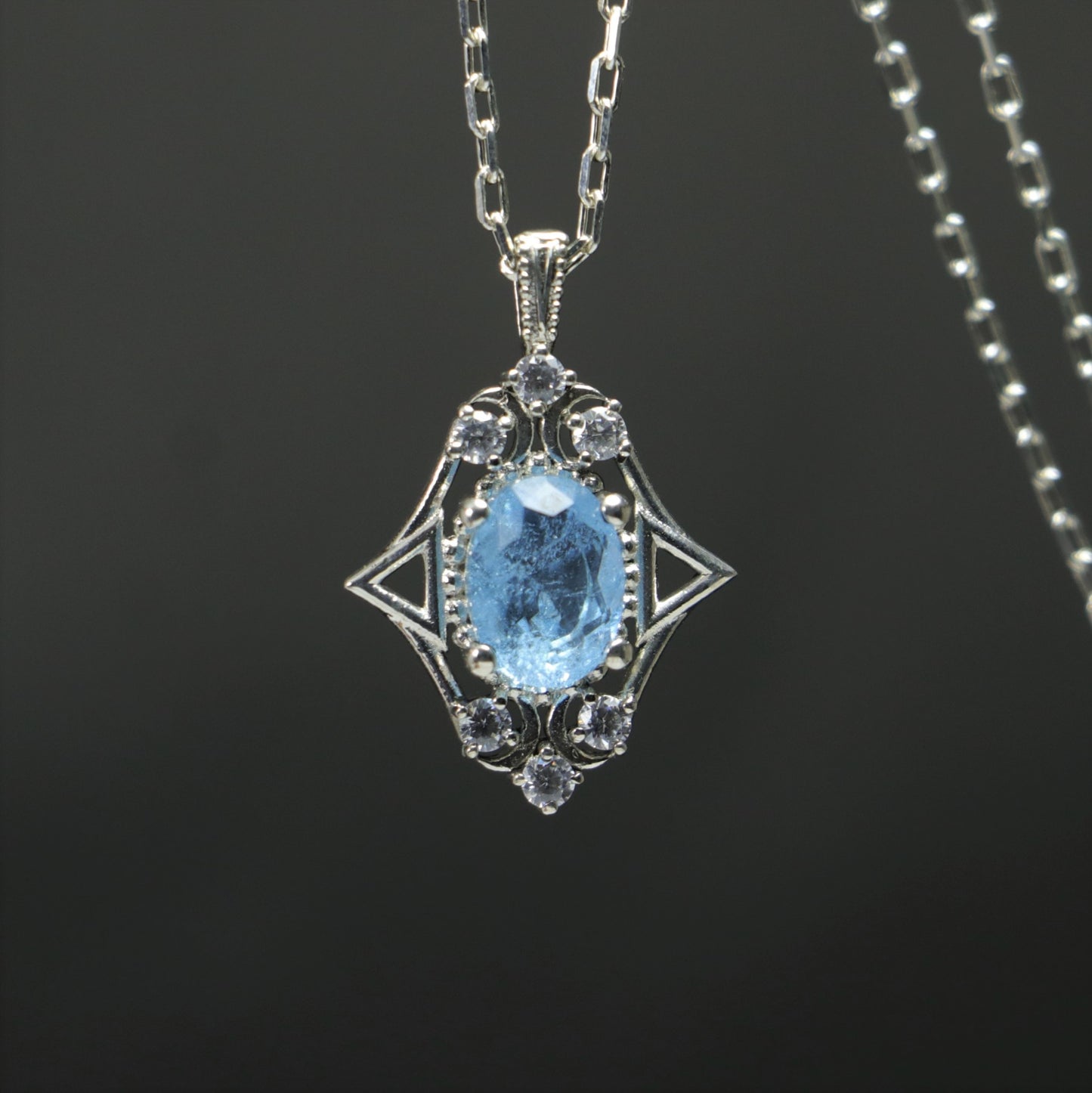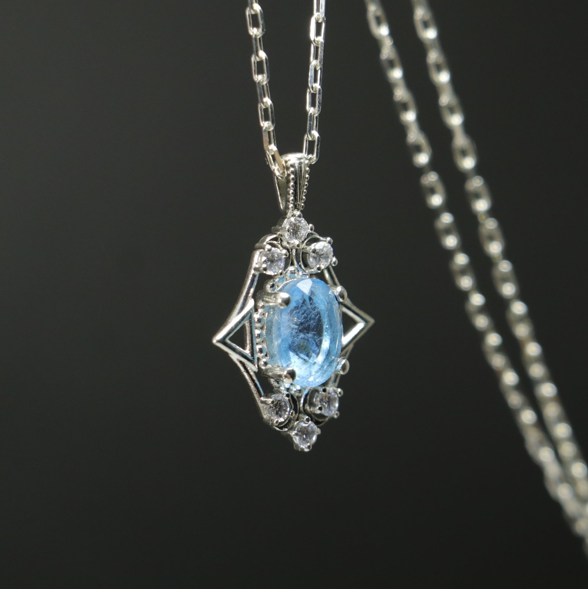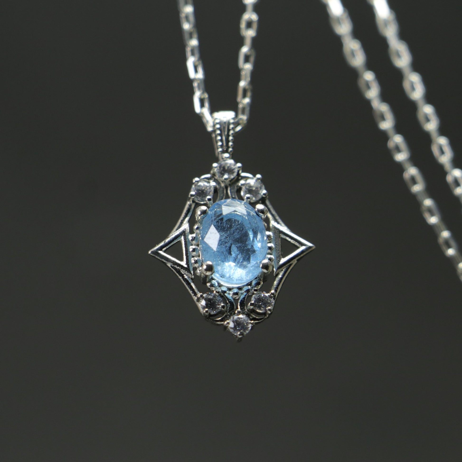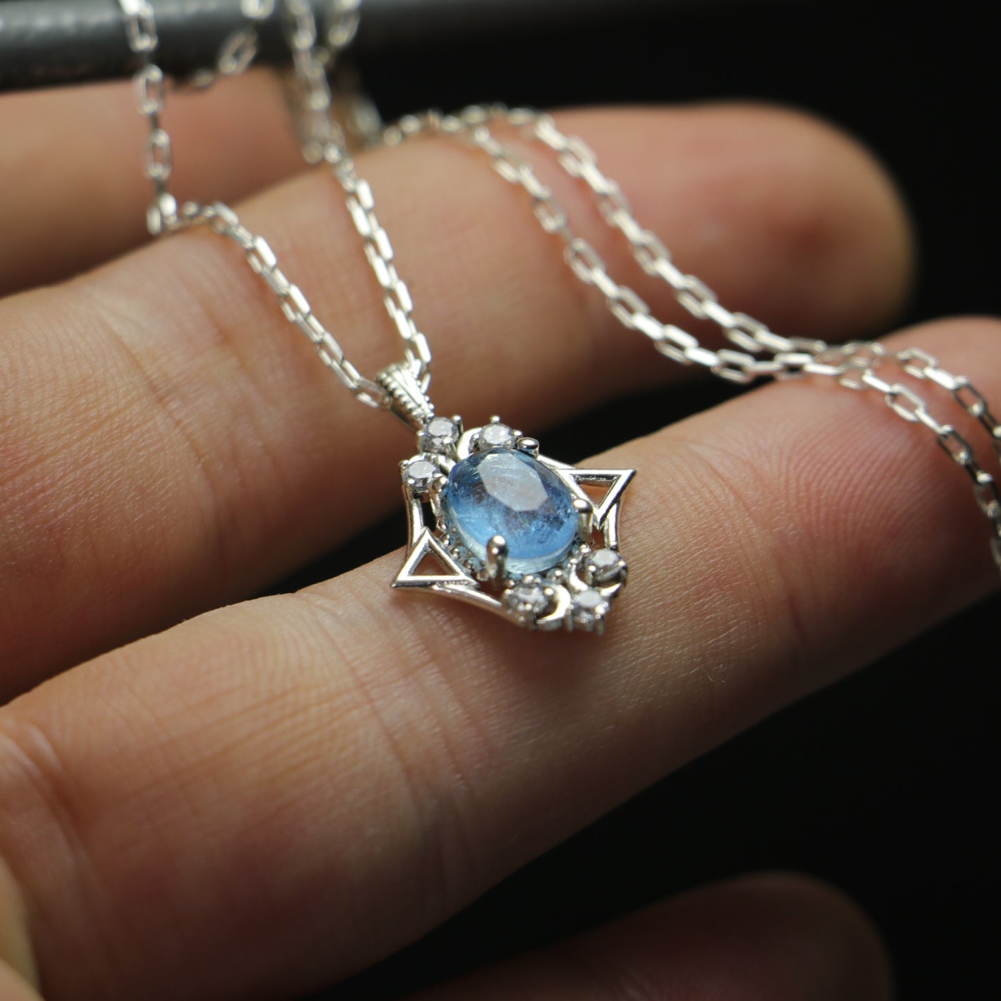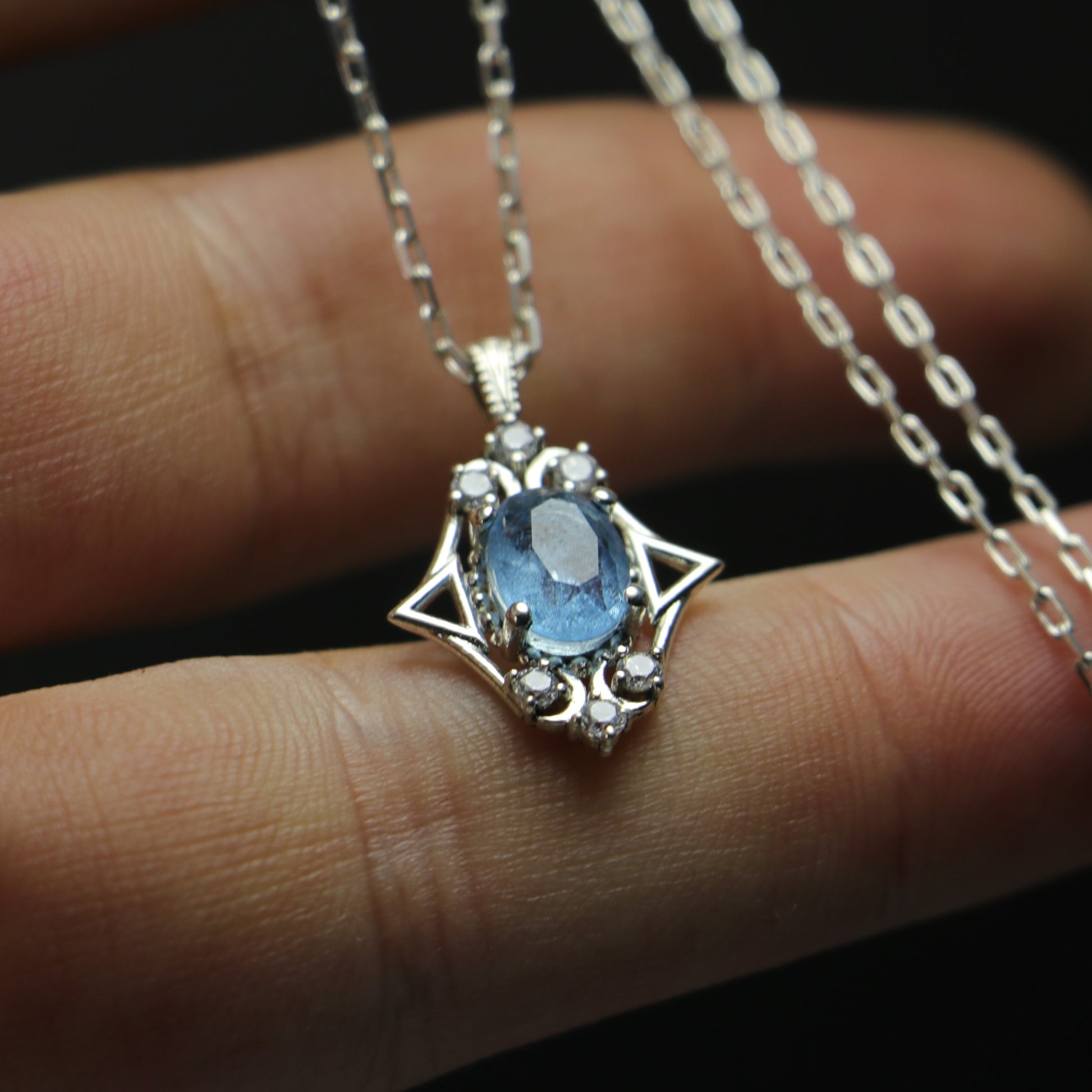 Root Aquamarine and Moissanite 925 Silver Necklace