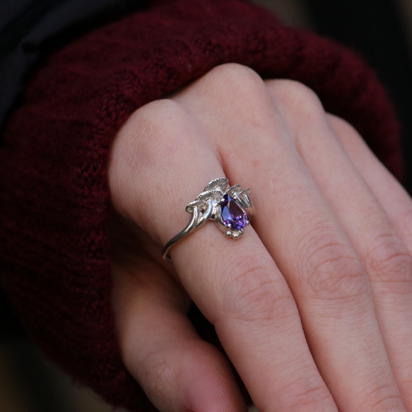 In my designs, which are improvised with the emotions felt by the raw, natural stones I use, I combine the stones with the "nailing" technique, which is also an old-school craft, without using any chemical ingredients.