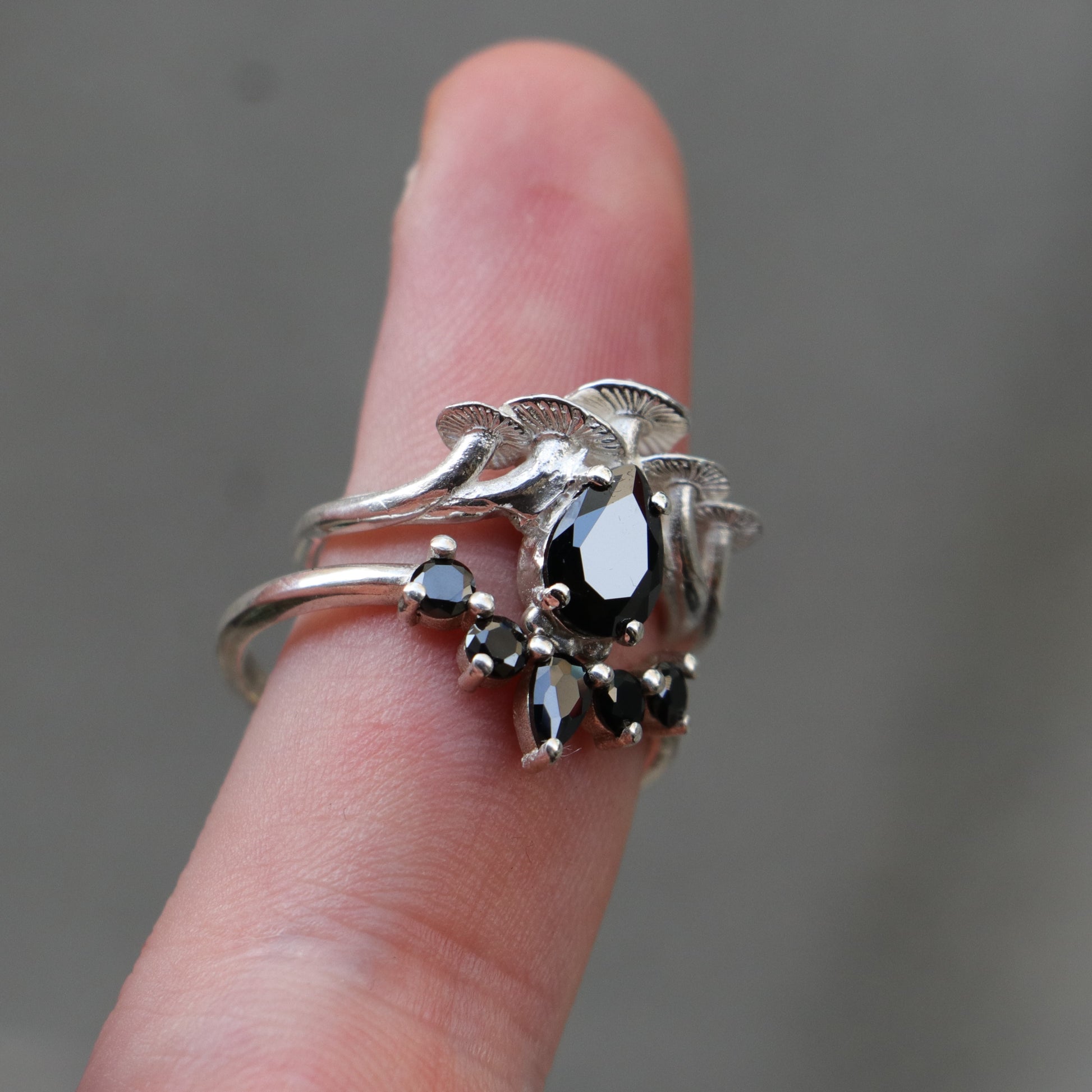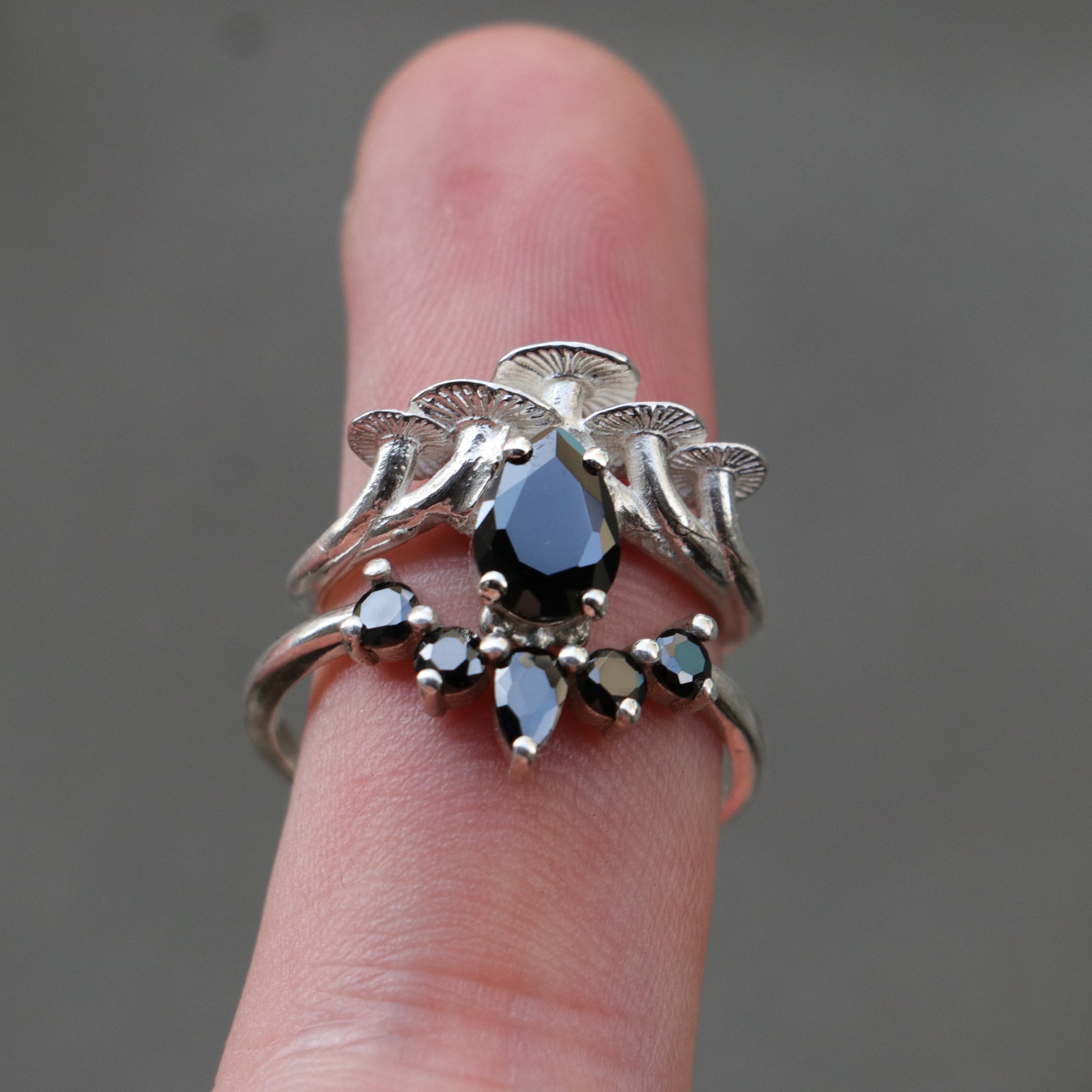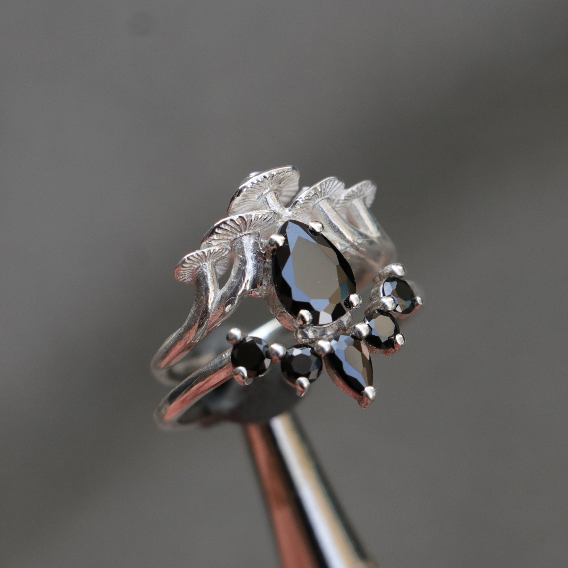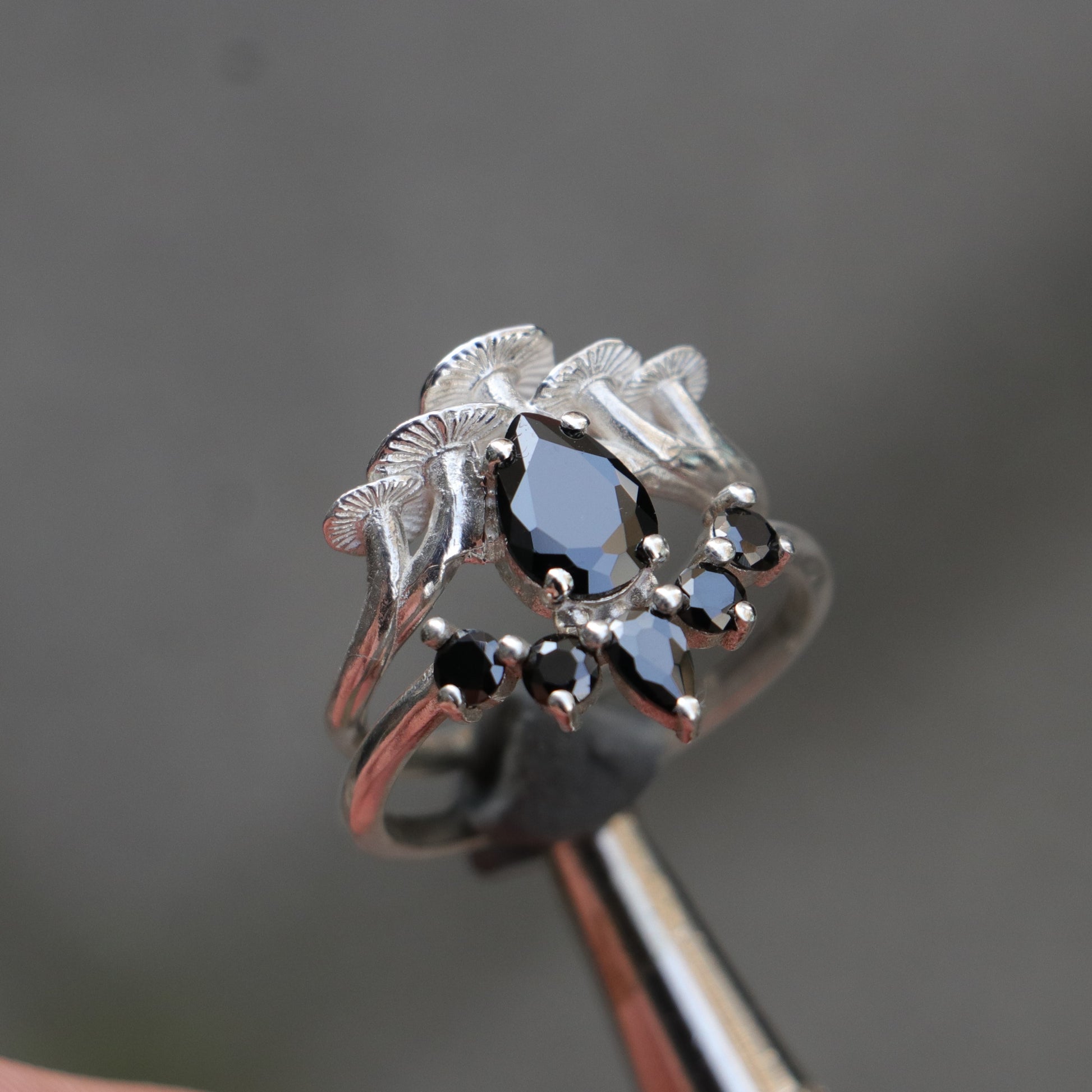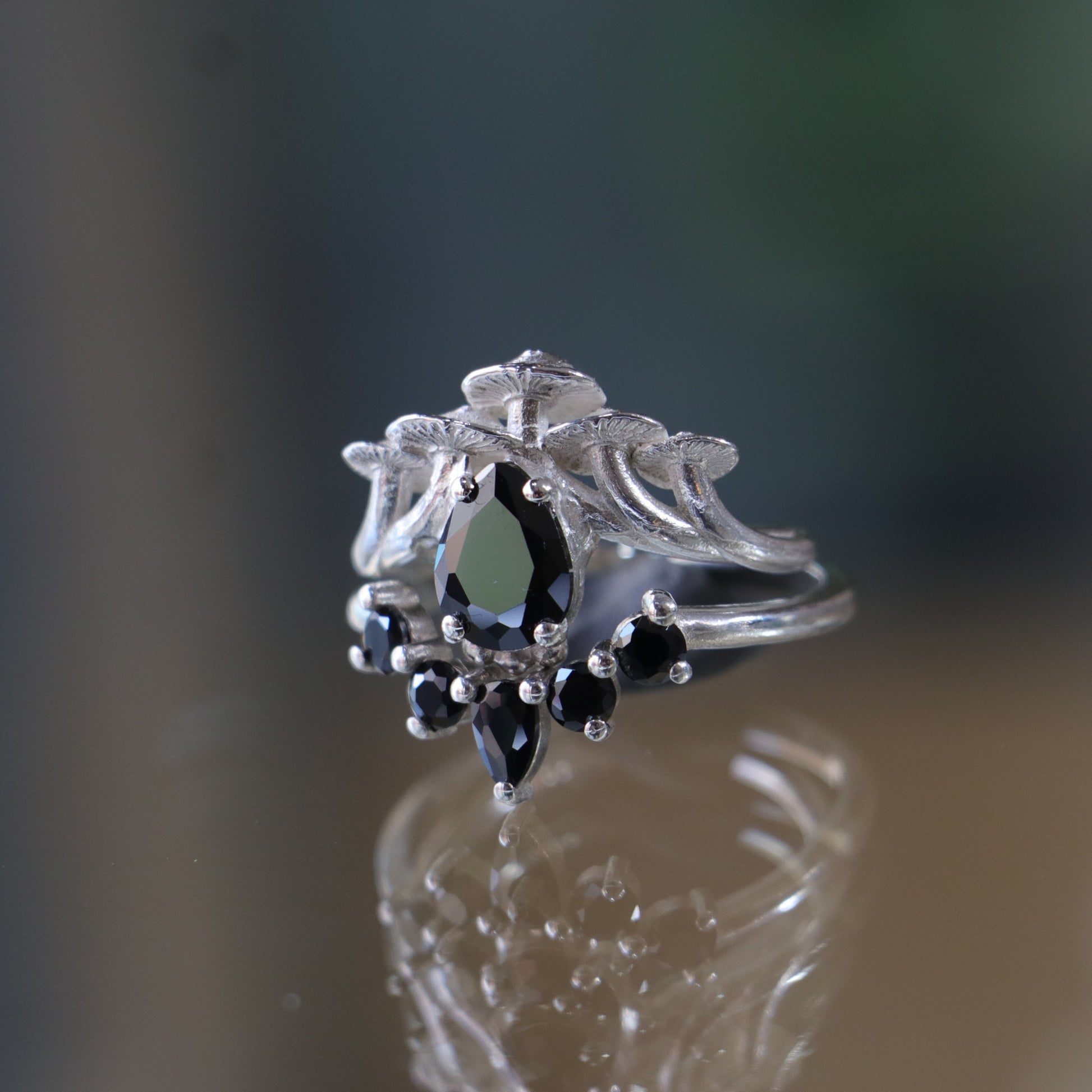 Mushroom and Spine Marquise Moissanite Set 925 Silver Ring