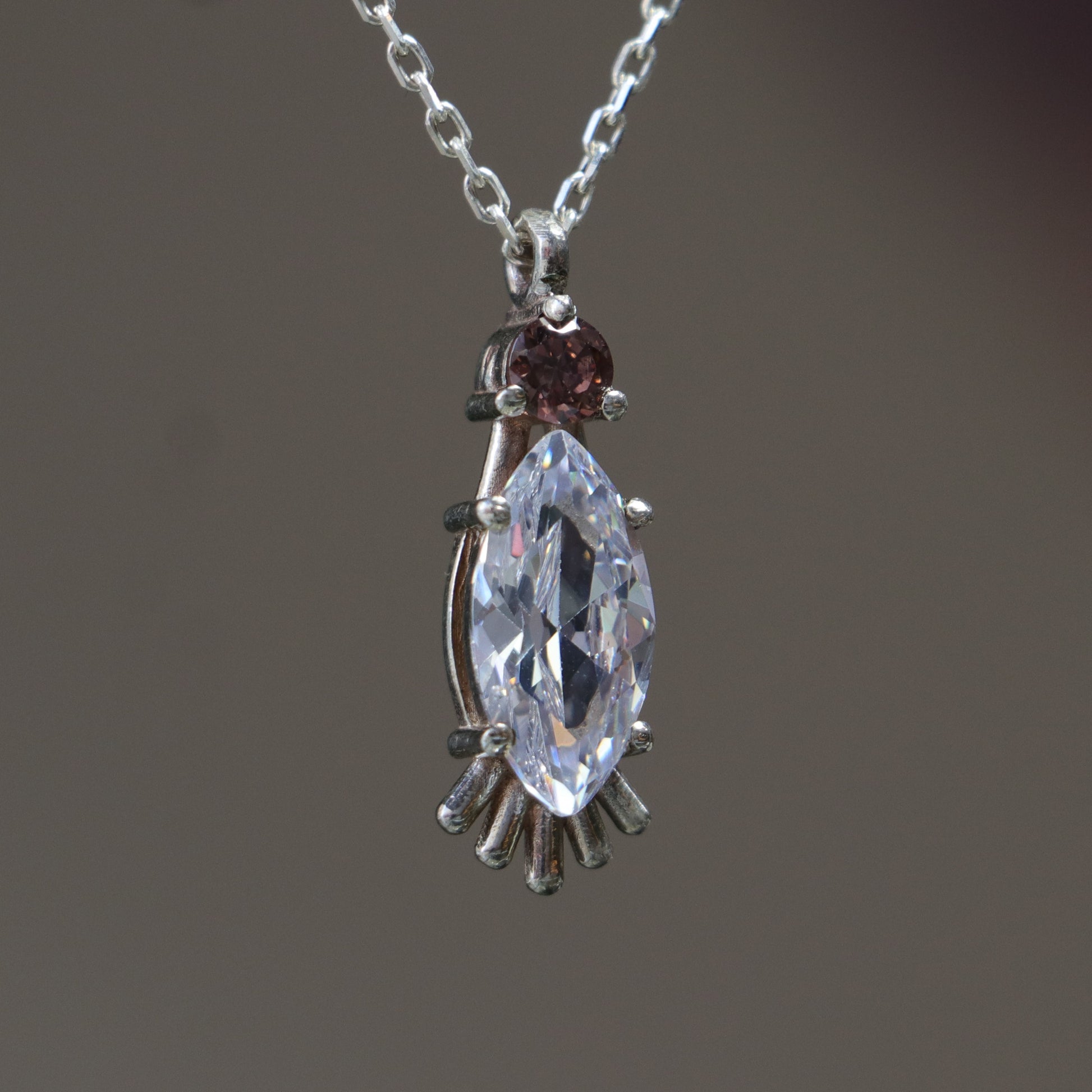 Marquise Moissanite and Brown Moissanite 925 Silver Necklace