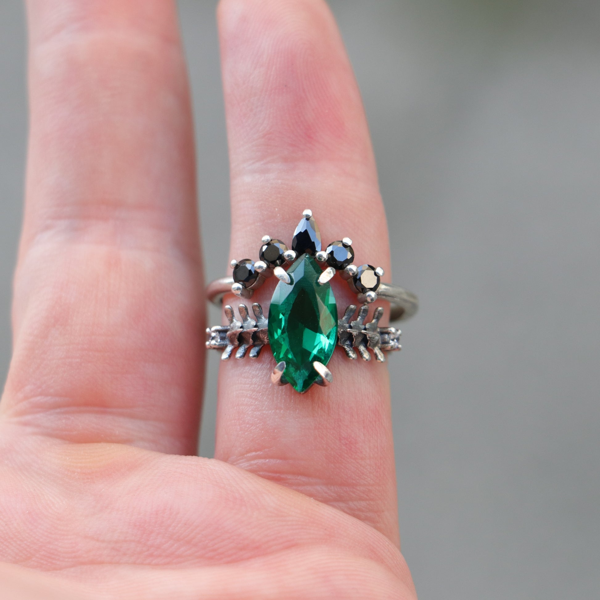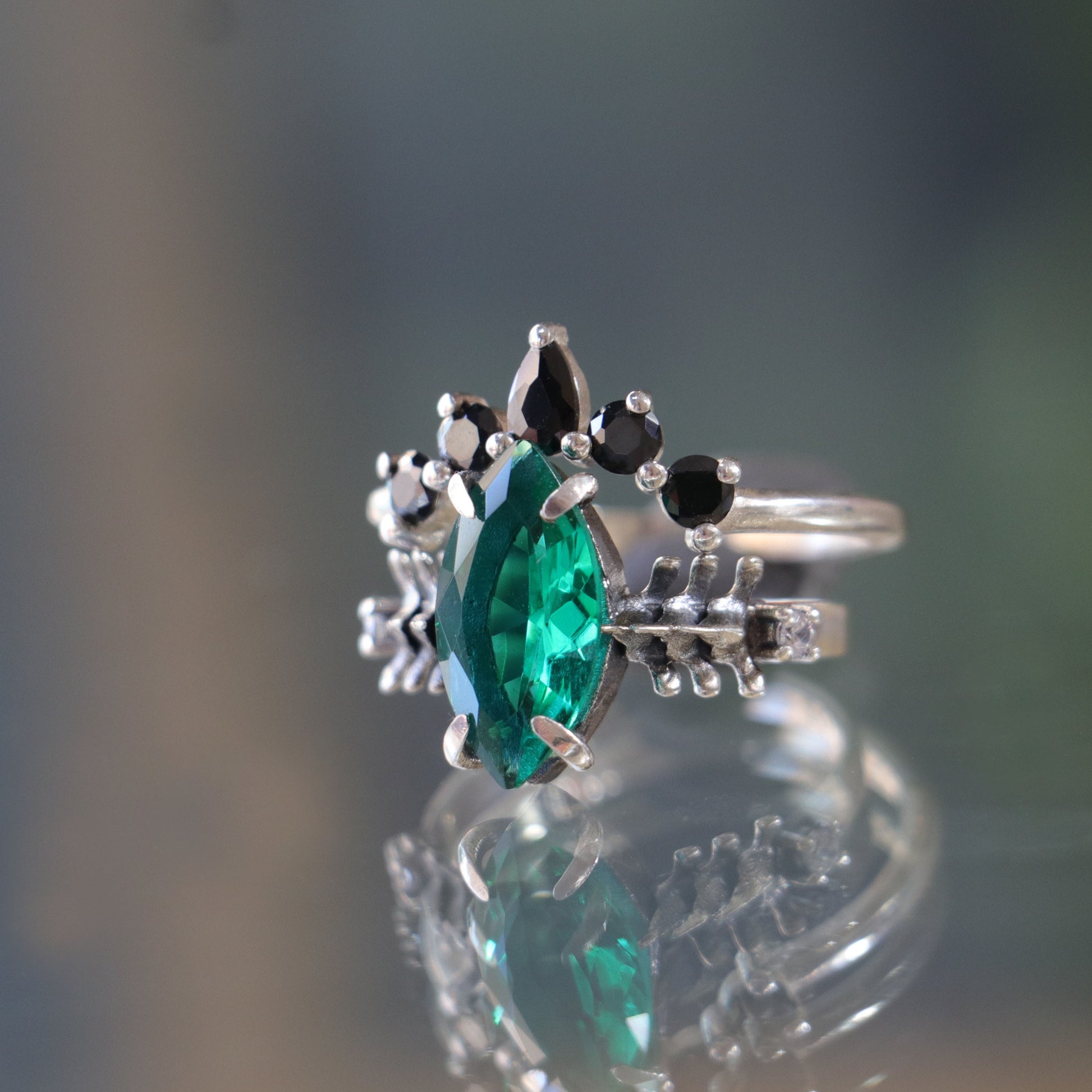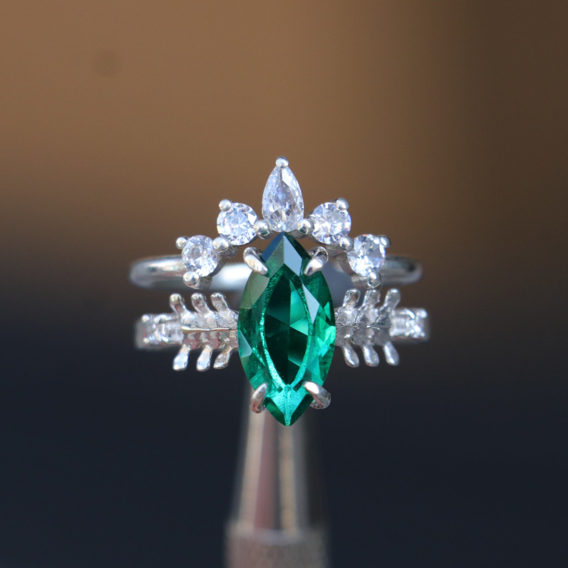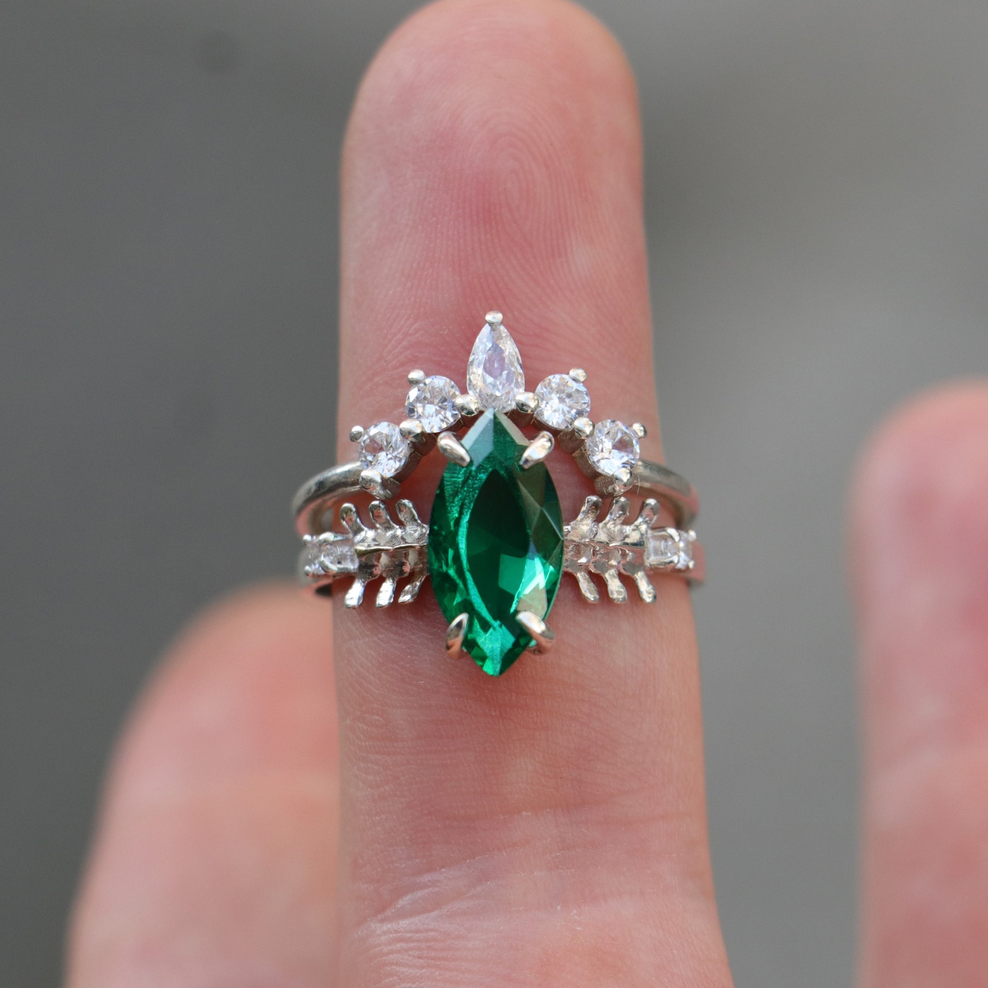 Mushroom and Spine Marquise Moissanite Set 925 Silver Ring