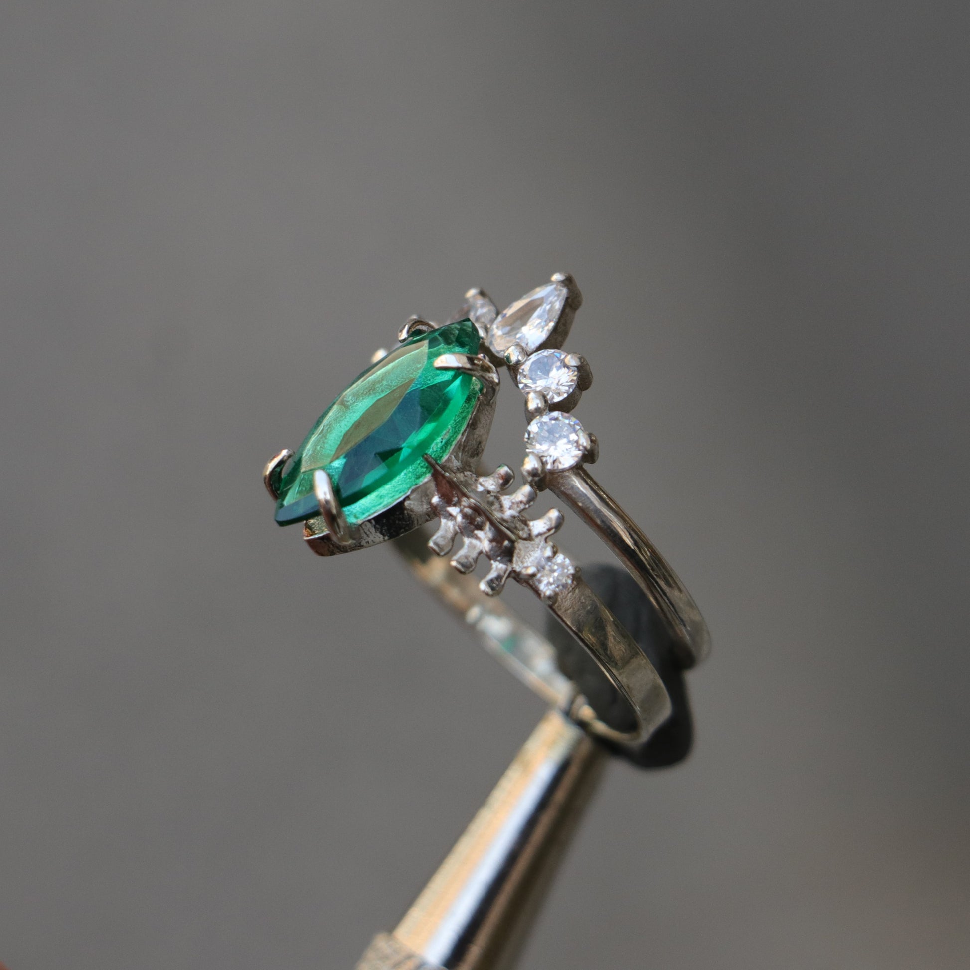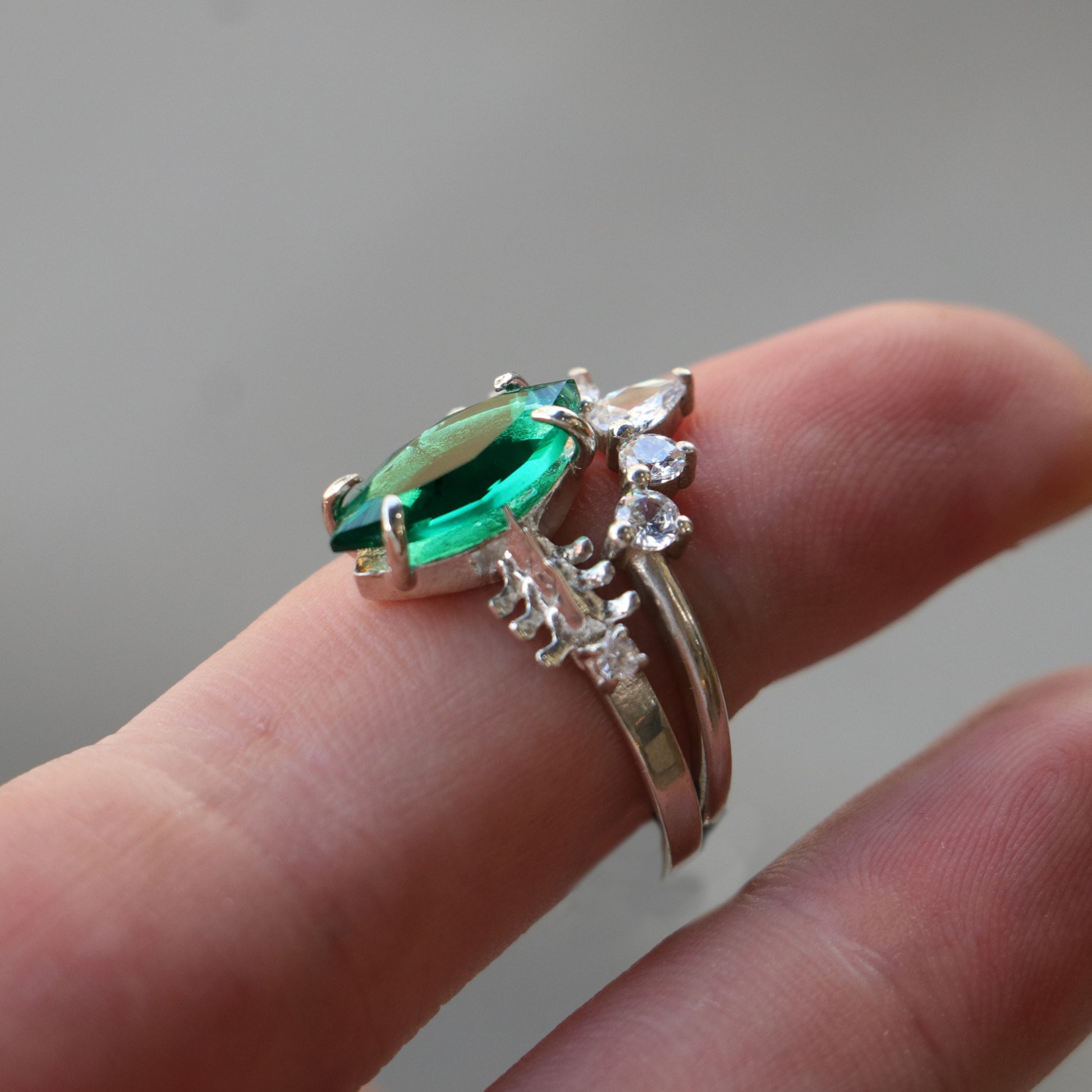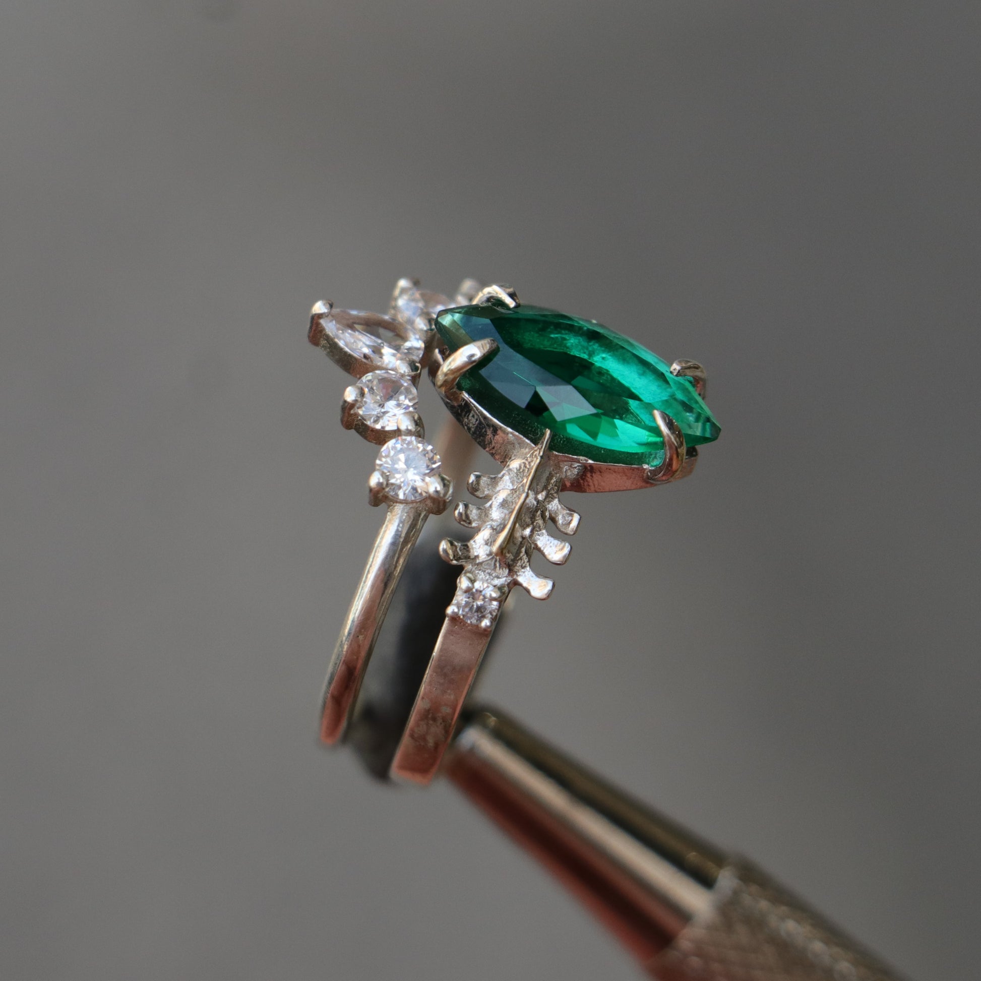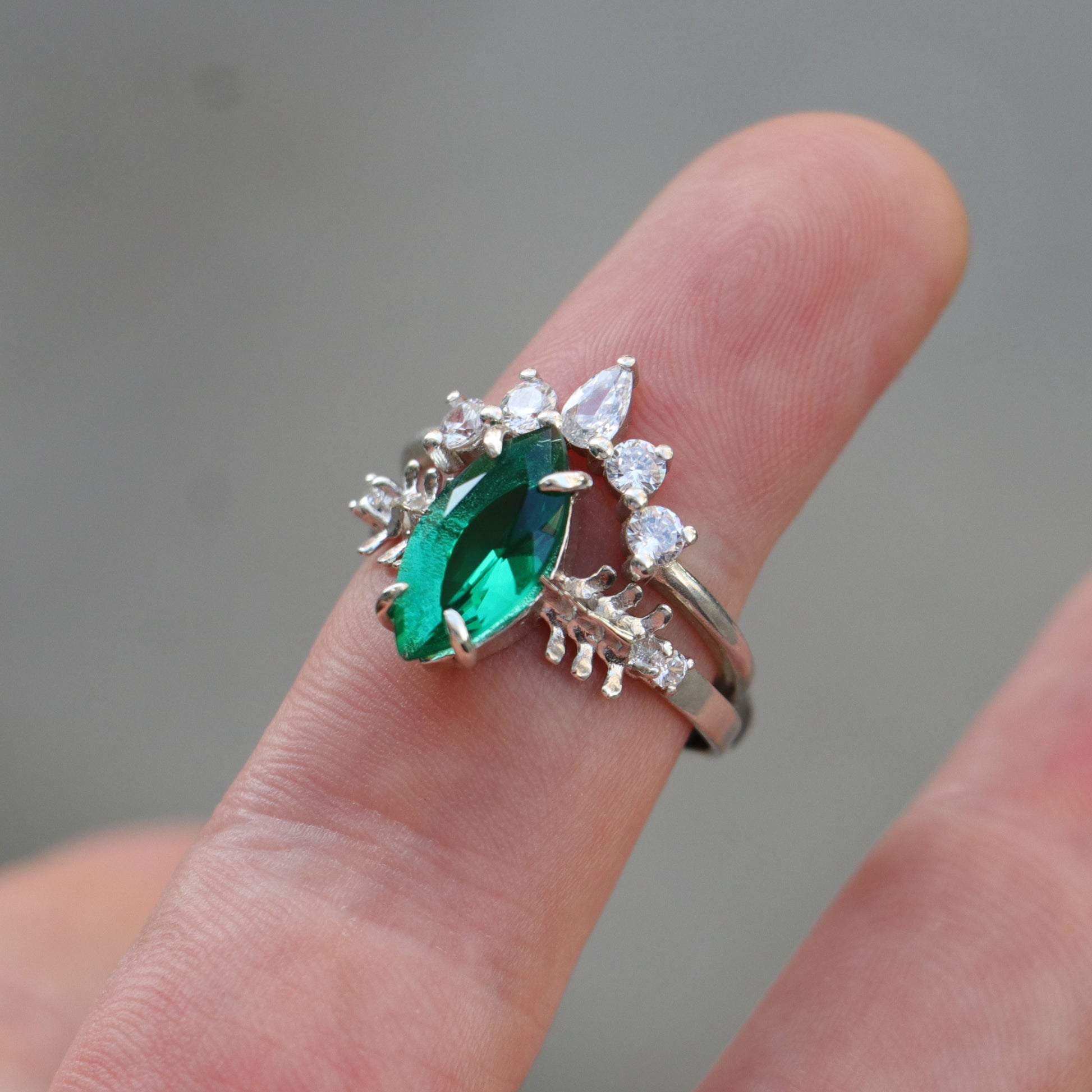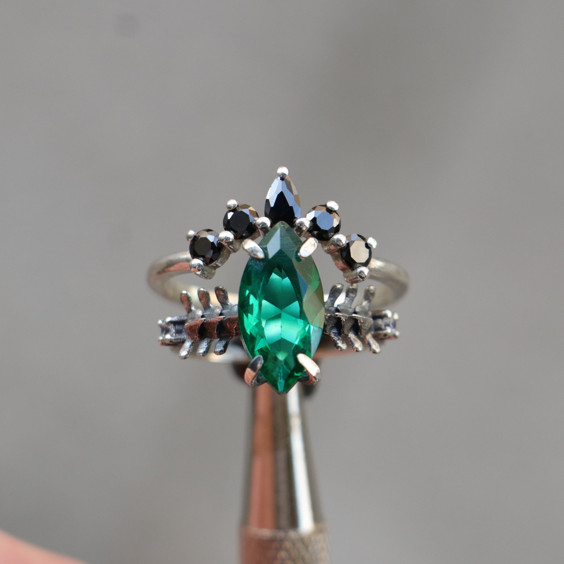 Mushroom and Spine Marquise Moissanite Set 925 Silver Ring