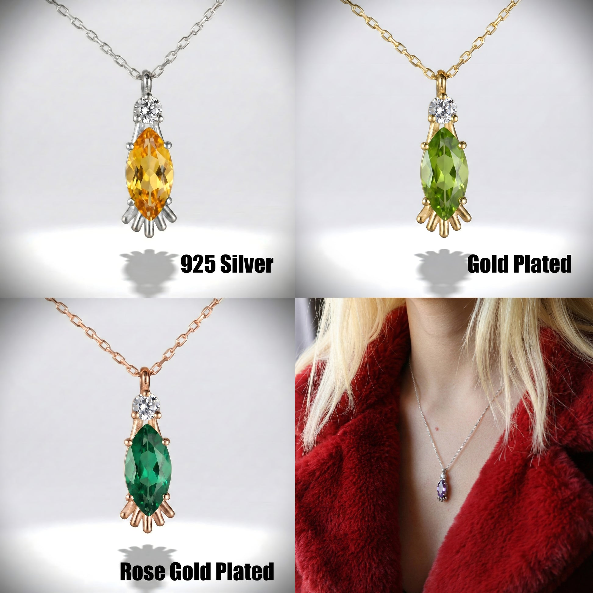Marquise Peridot and Moissanite 925 Silver Necklace