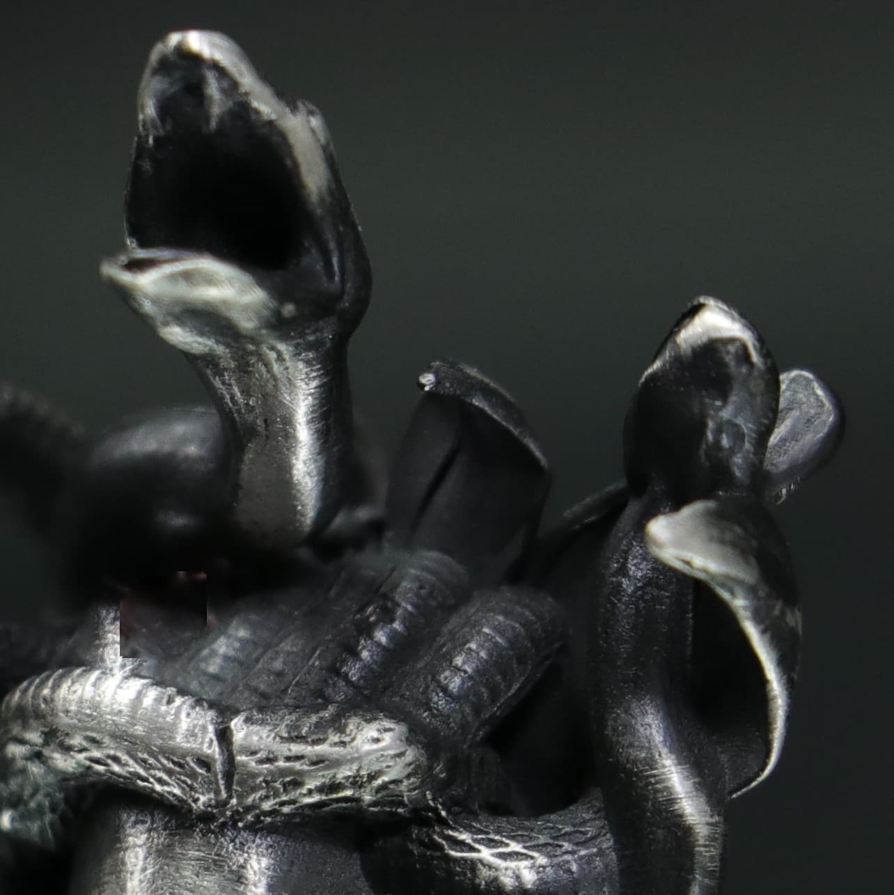 I oxidize and darken the bronze metal I use when creating my designs to give it an aged appearance and to make it look as if it had come out of the ground.