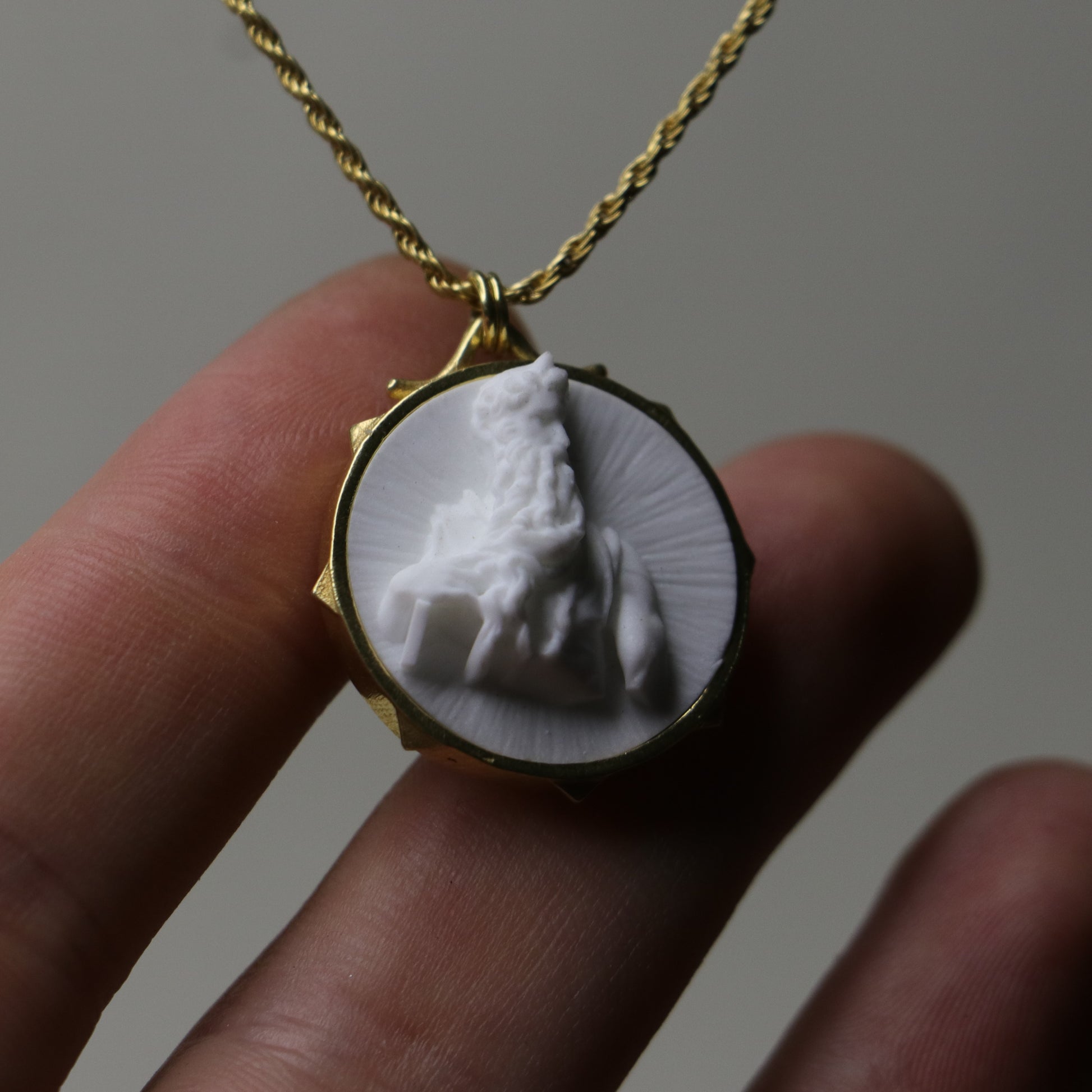 Marble Lion 925 Silver Gold Plated Necklace