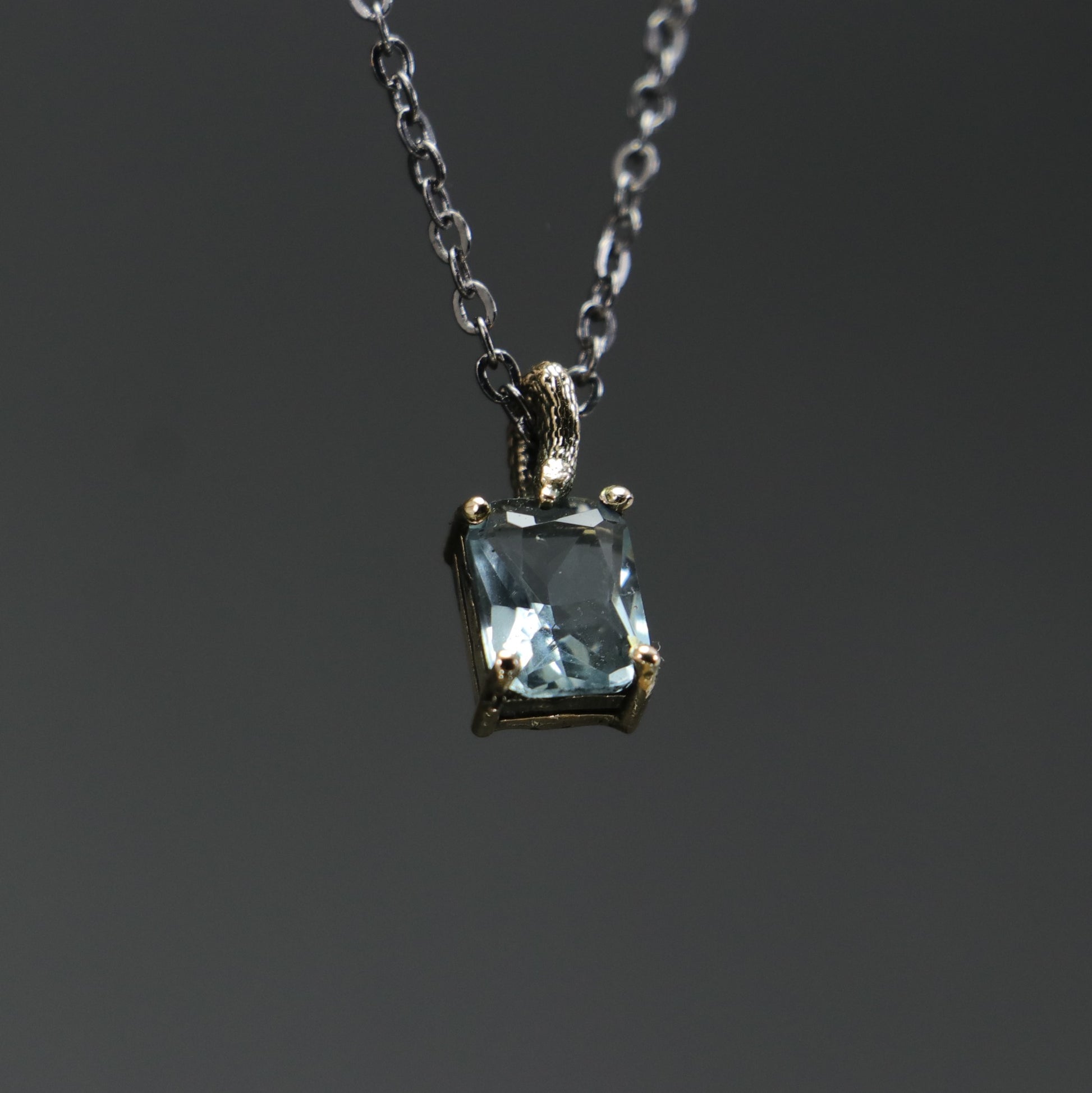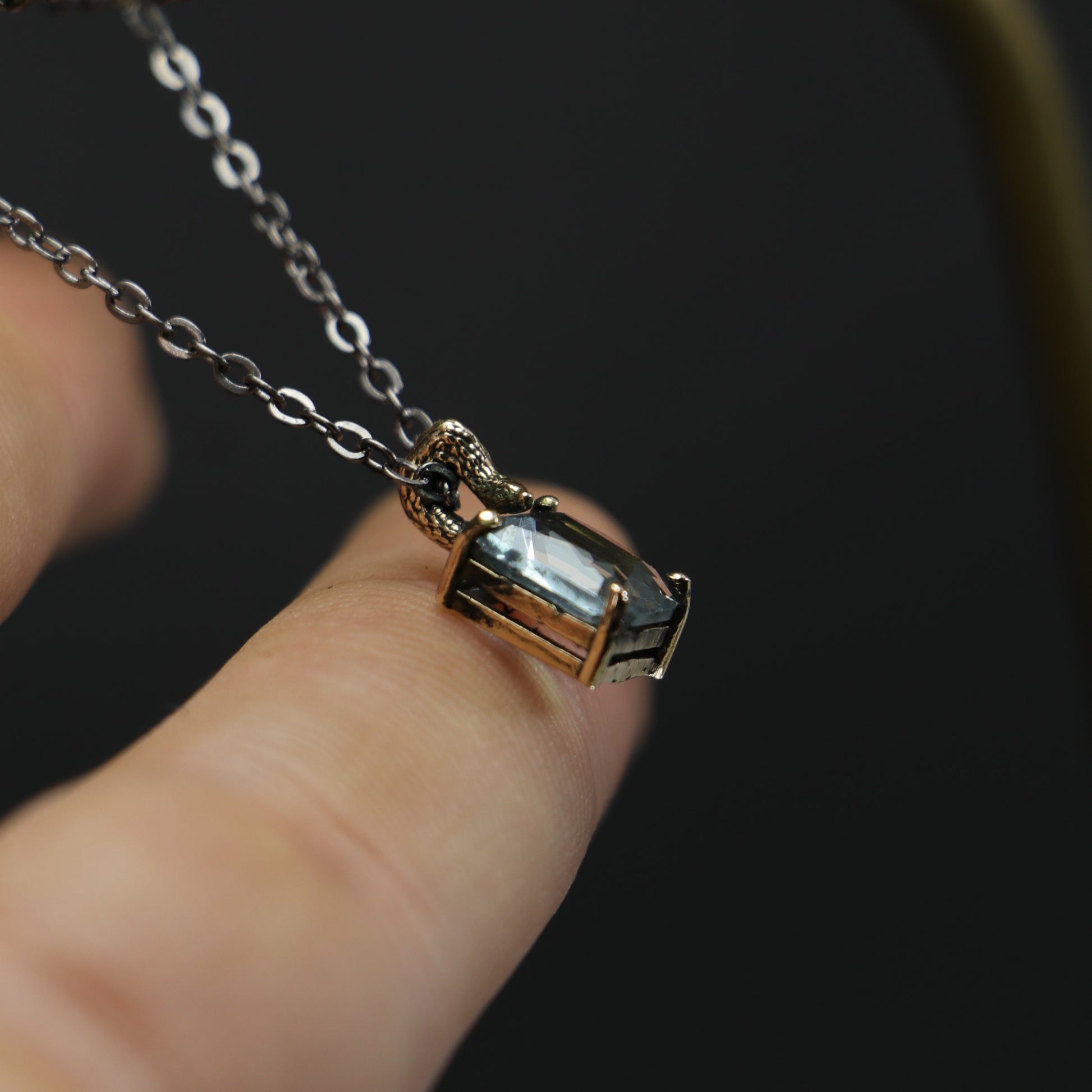 Elegant Necklace with Mini Aquamarine Snake Handle
