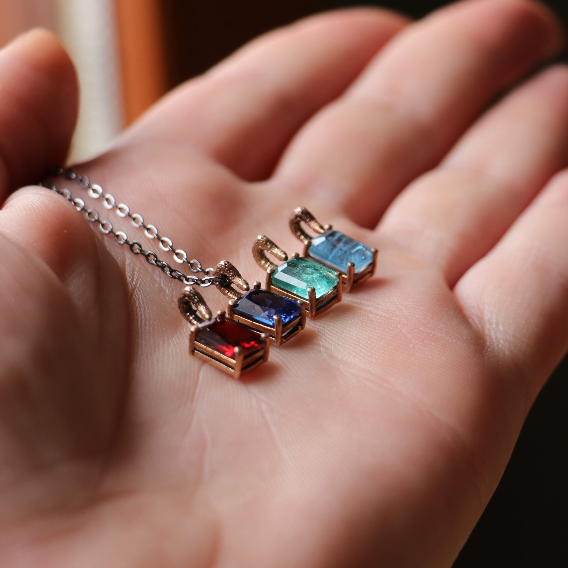 Elegant Necklace with Mini Stem Aquamarine Snake Handle