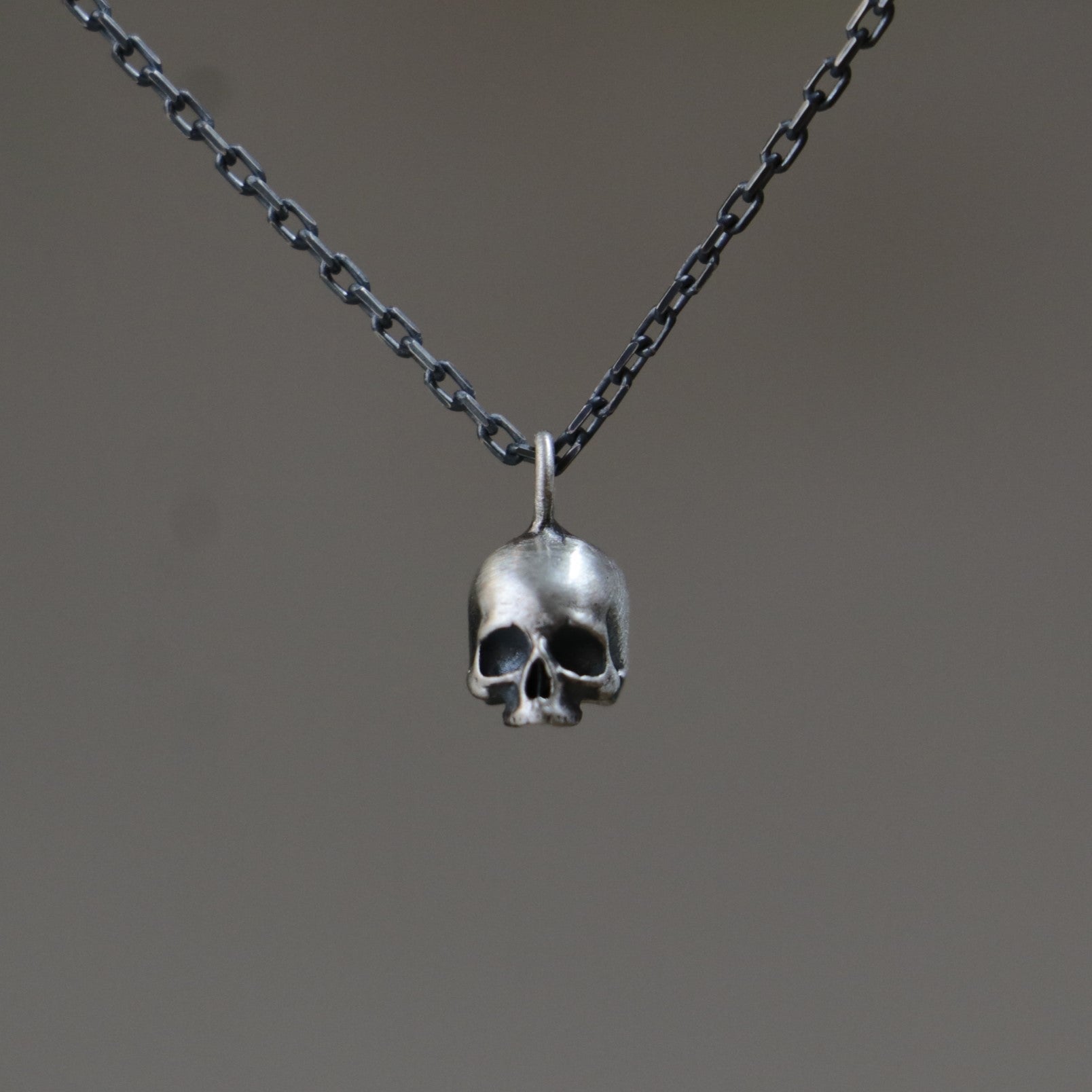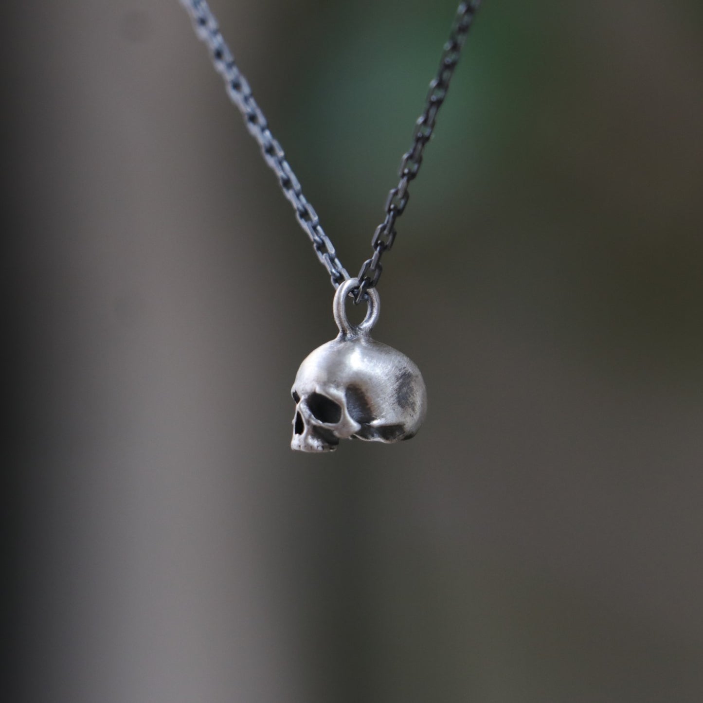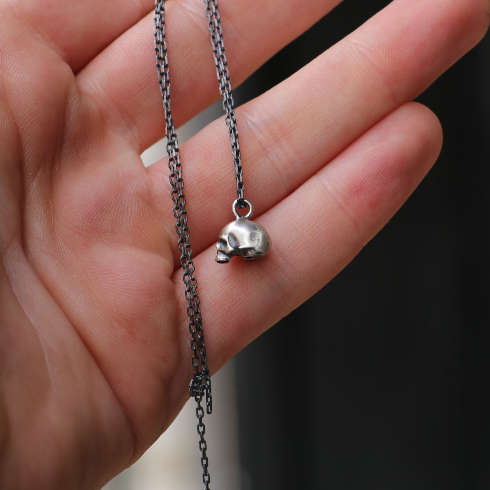 Mini Mini Skull 925 Oxidized Silver Necklace