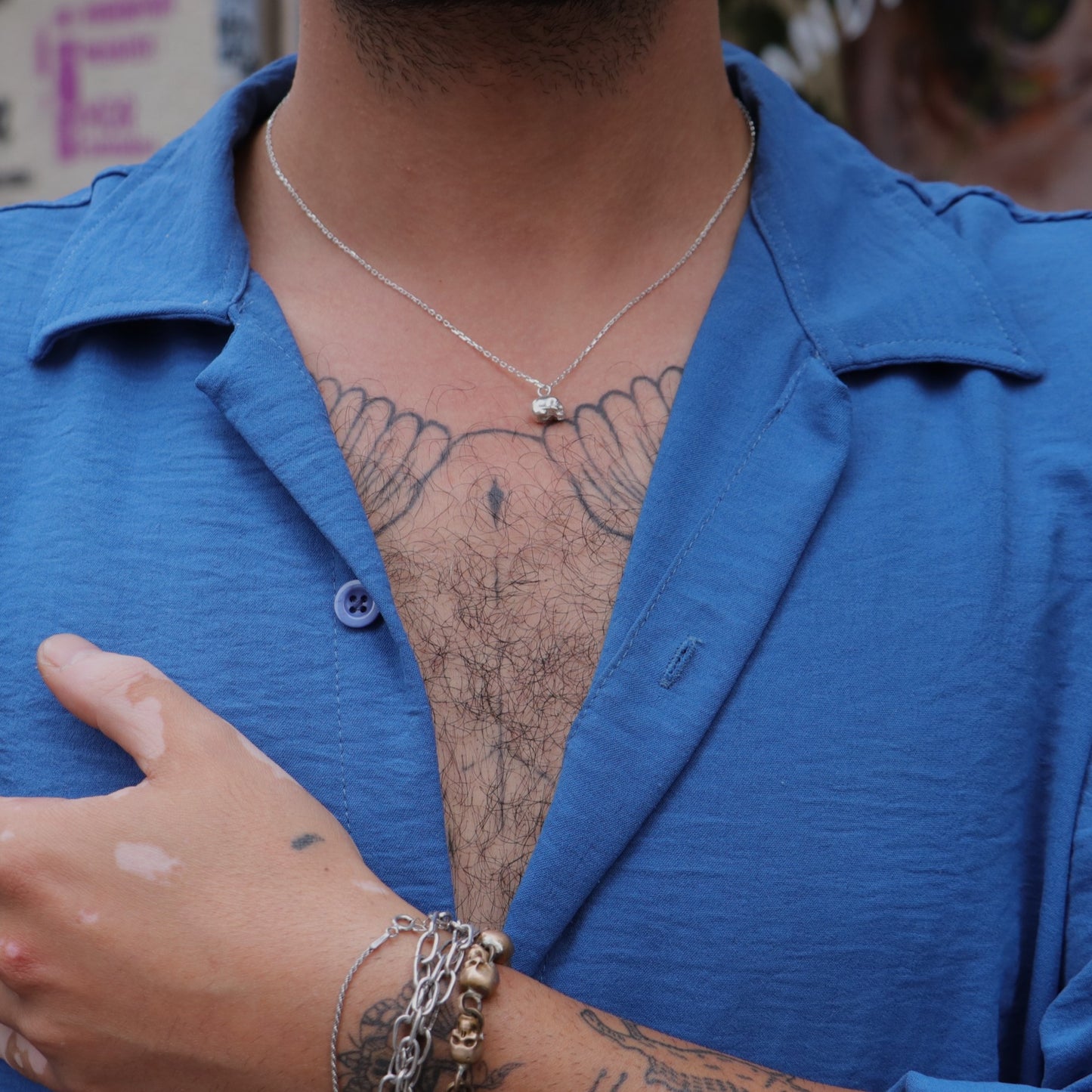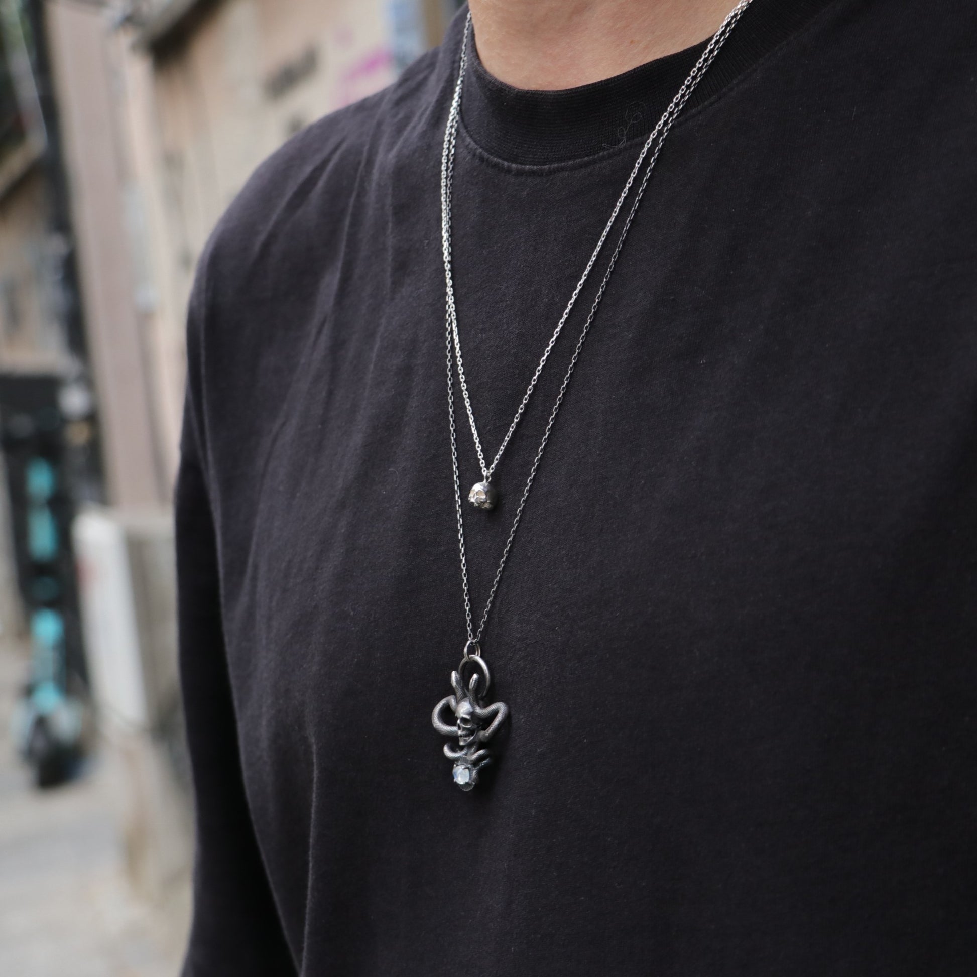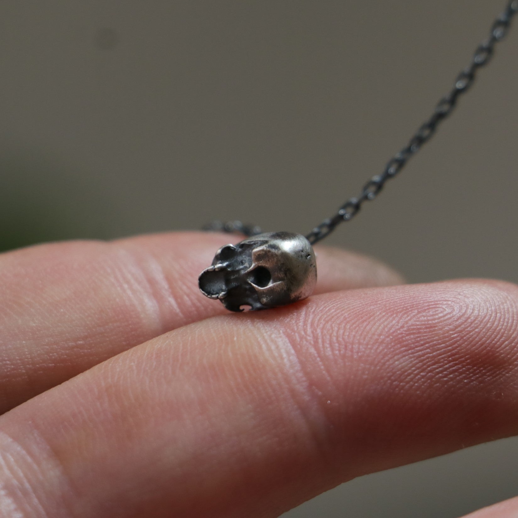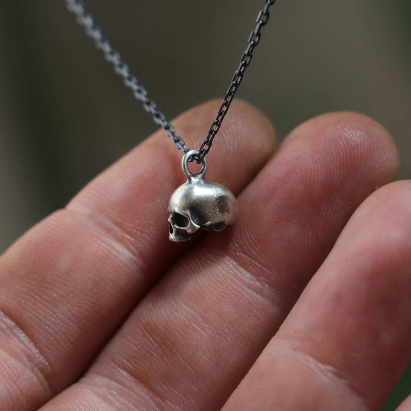 Mini Mini Skull 925 Oxidized Silver Necklace