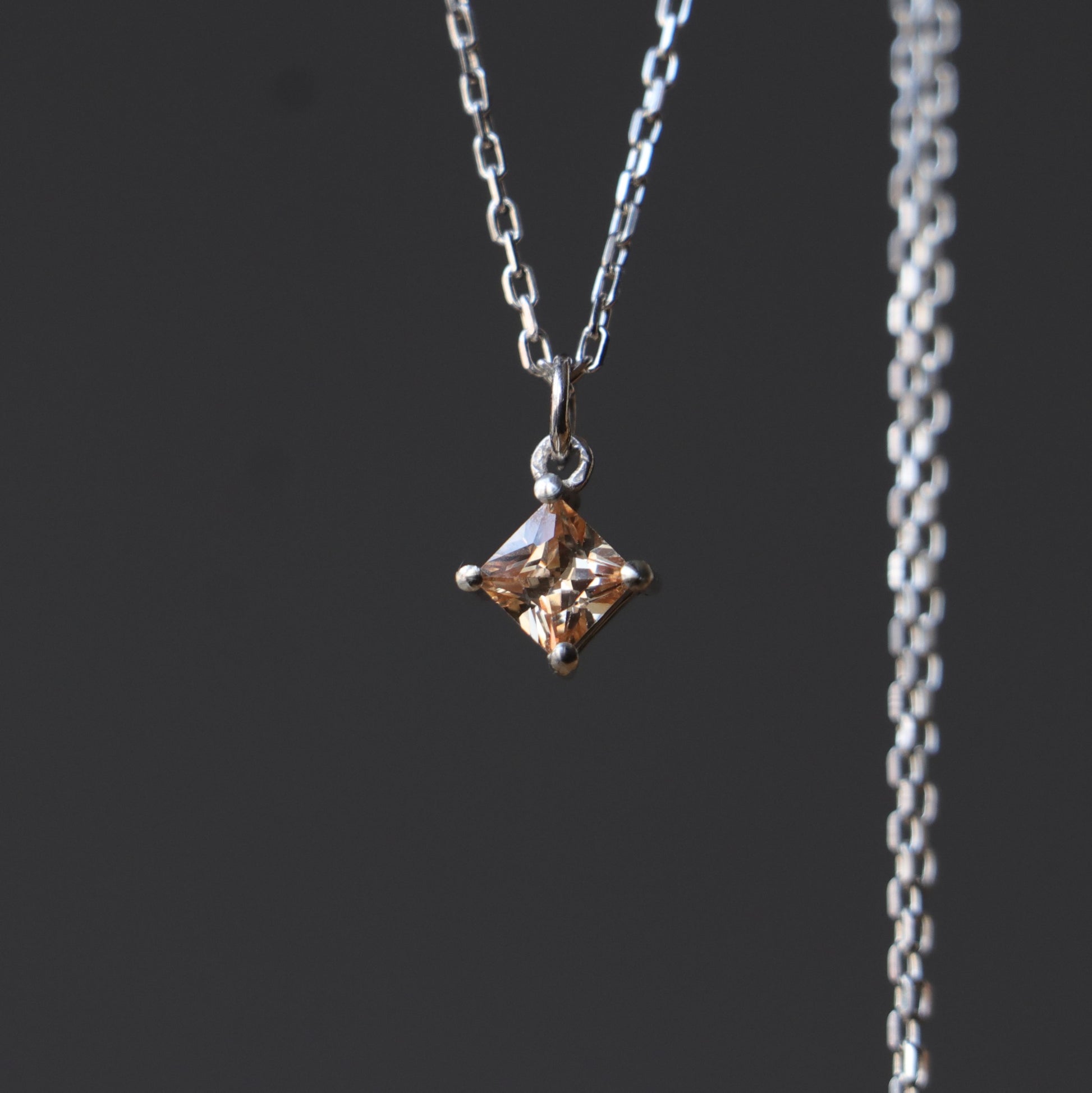 Minimal Princess Citrine 925 Silver Necklace