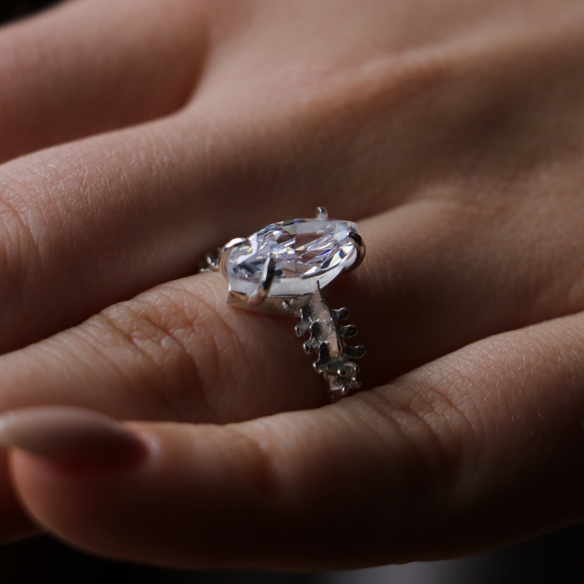 Spine Moissanite 18 Carat Gold Plated 925 Silver Ring