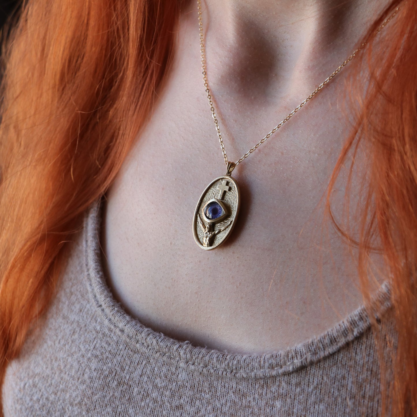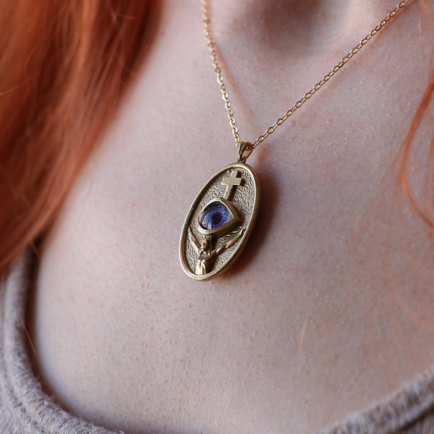 I oxidize and darken the bronze metal I use when creating my designs to give it an aged appearance and to make it look as if it had come out of the ground.