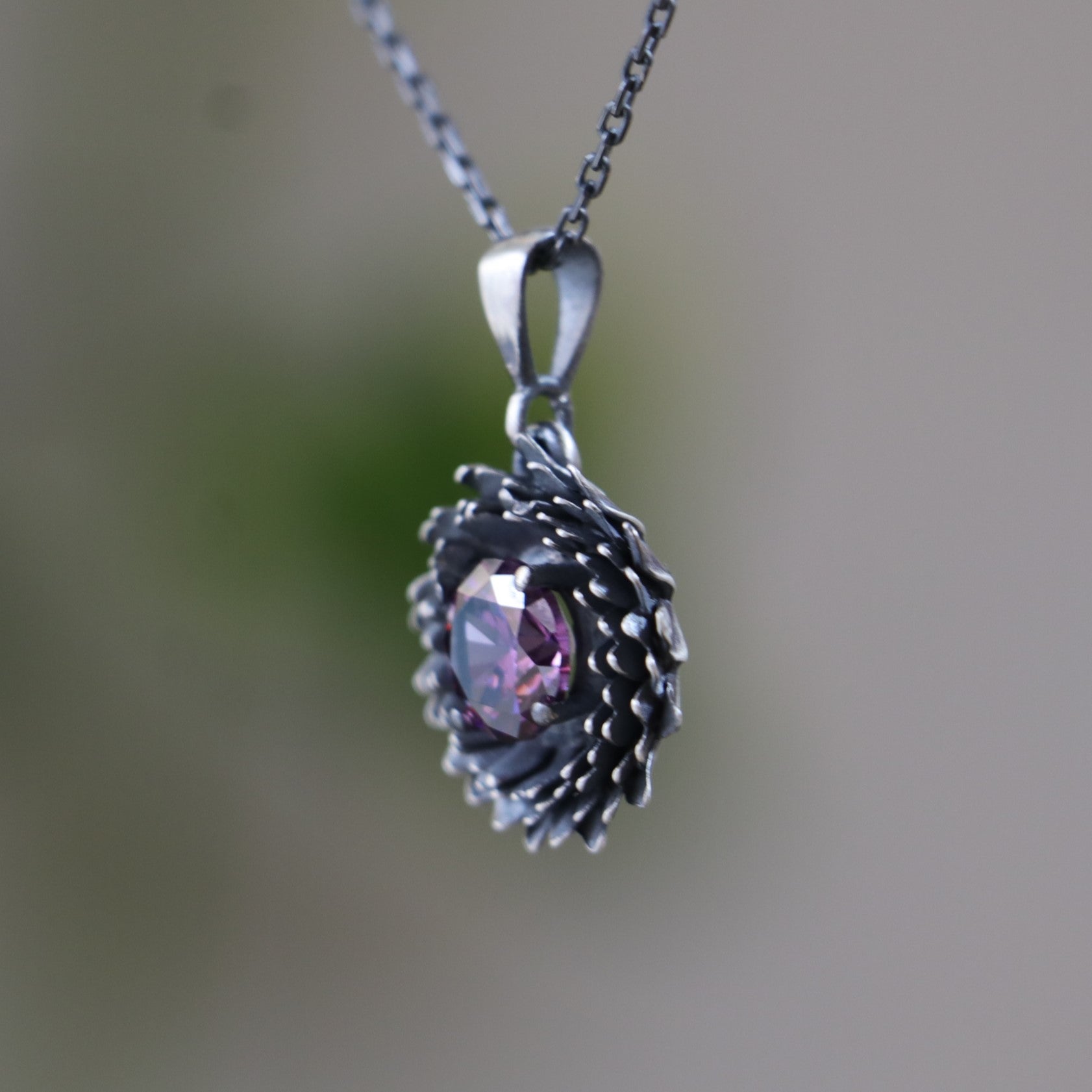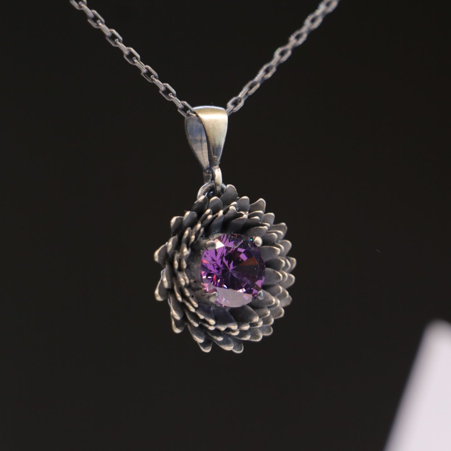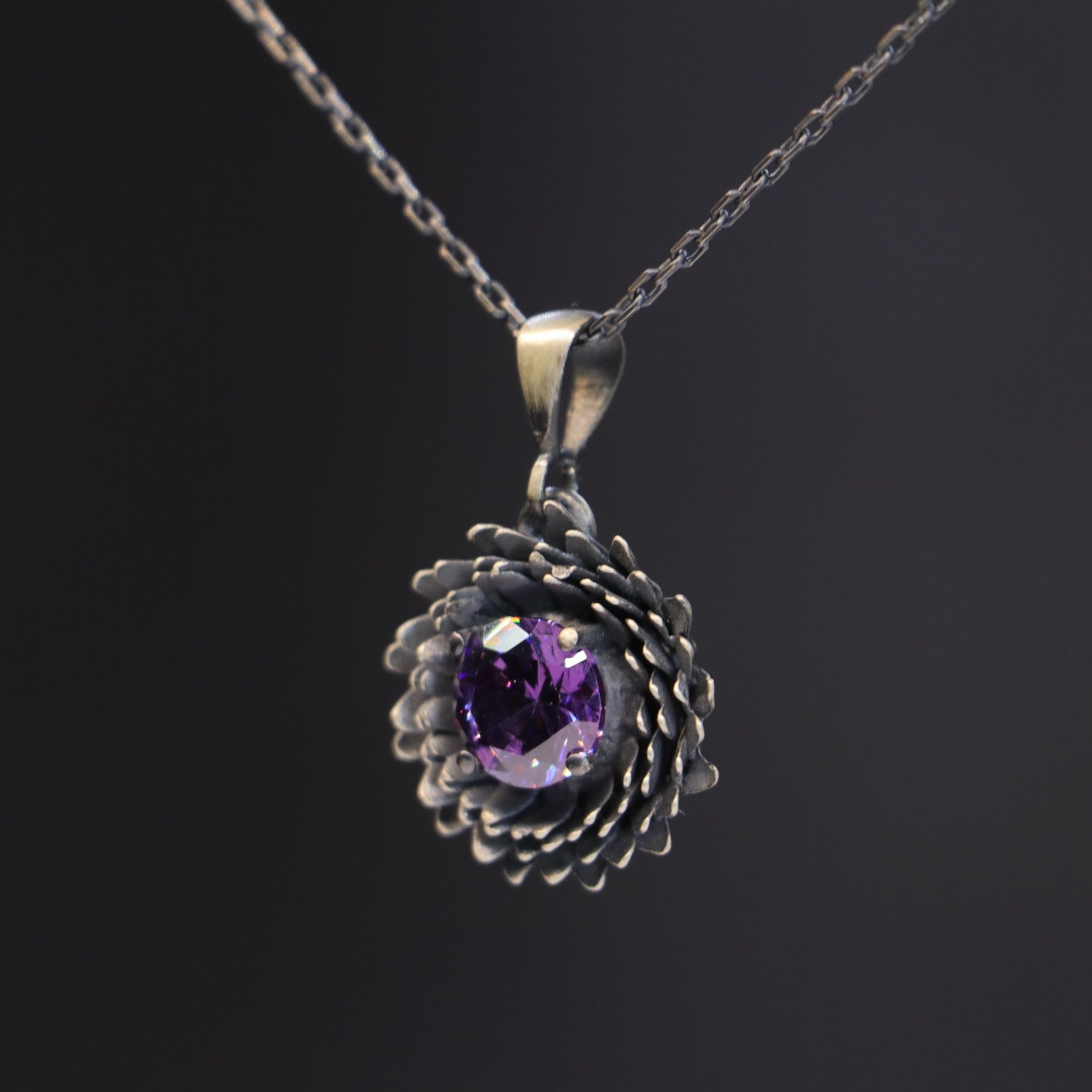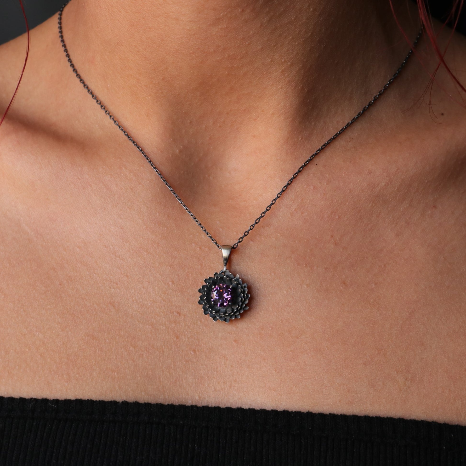 Daisy Amethyst 925 Oxidized Silver Necklace