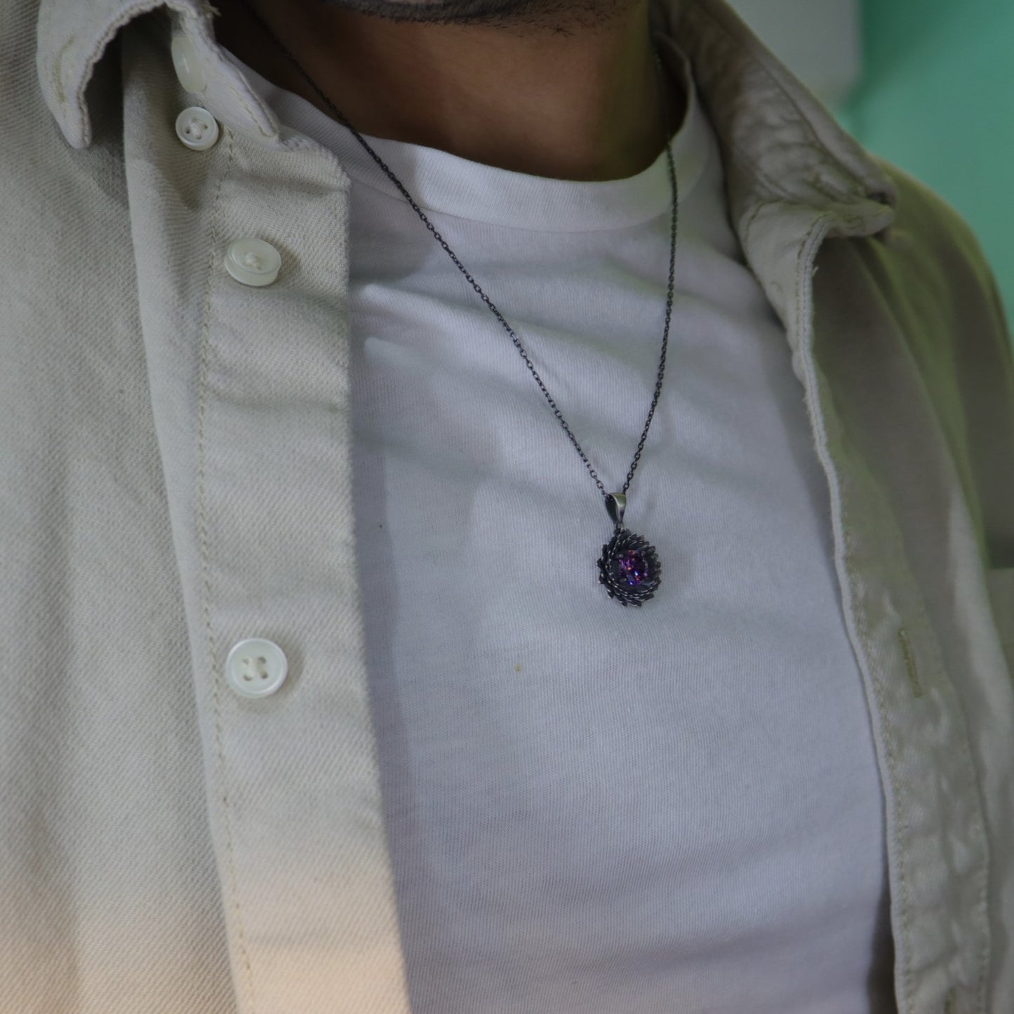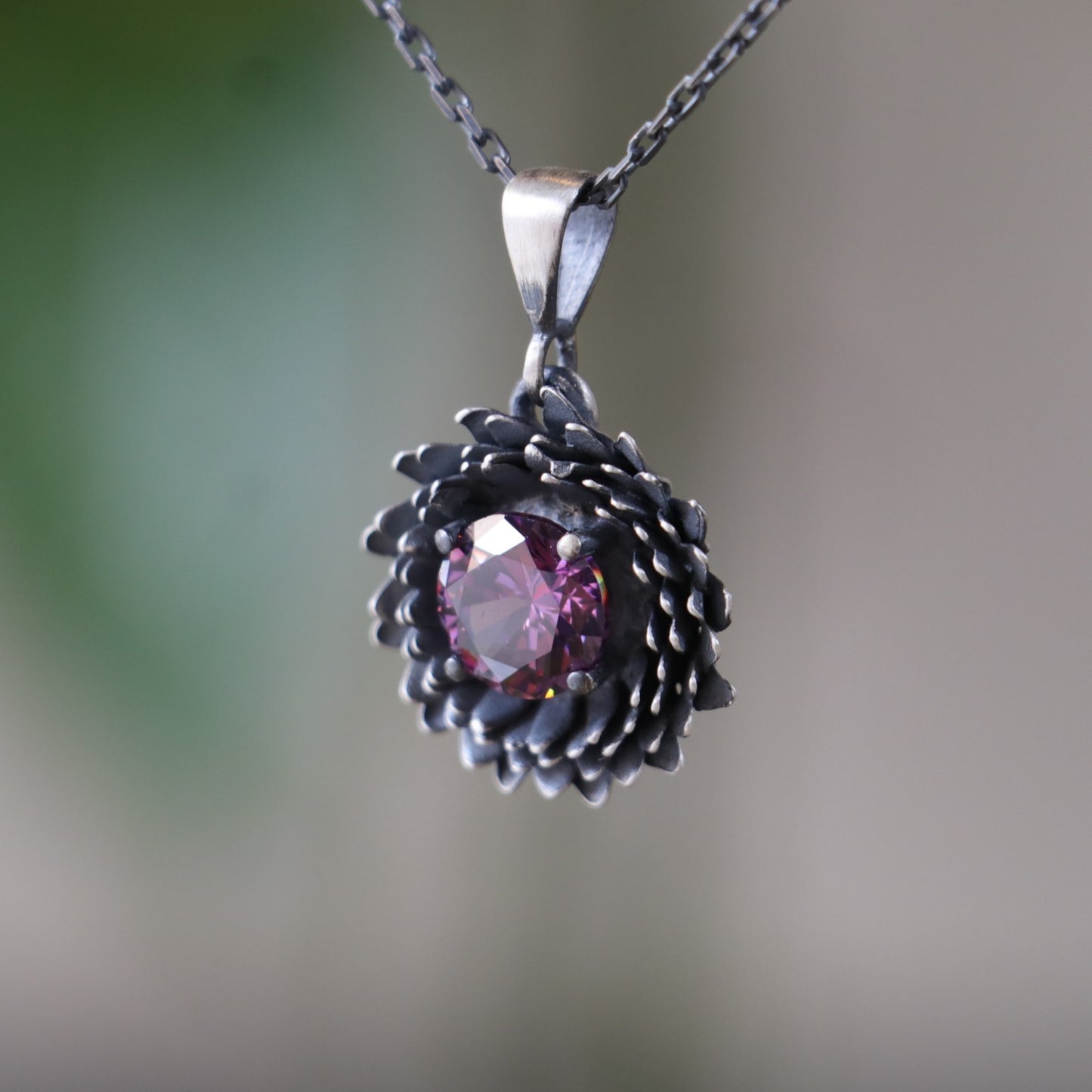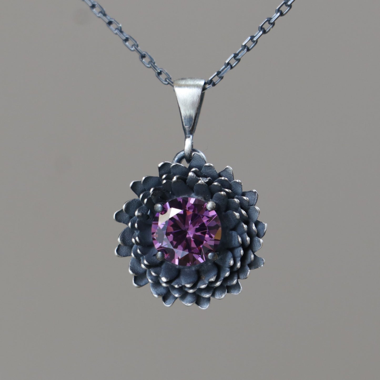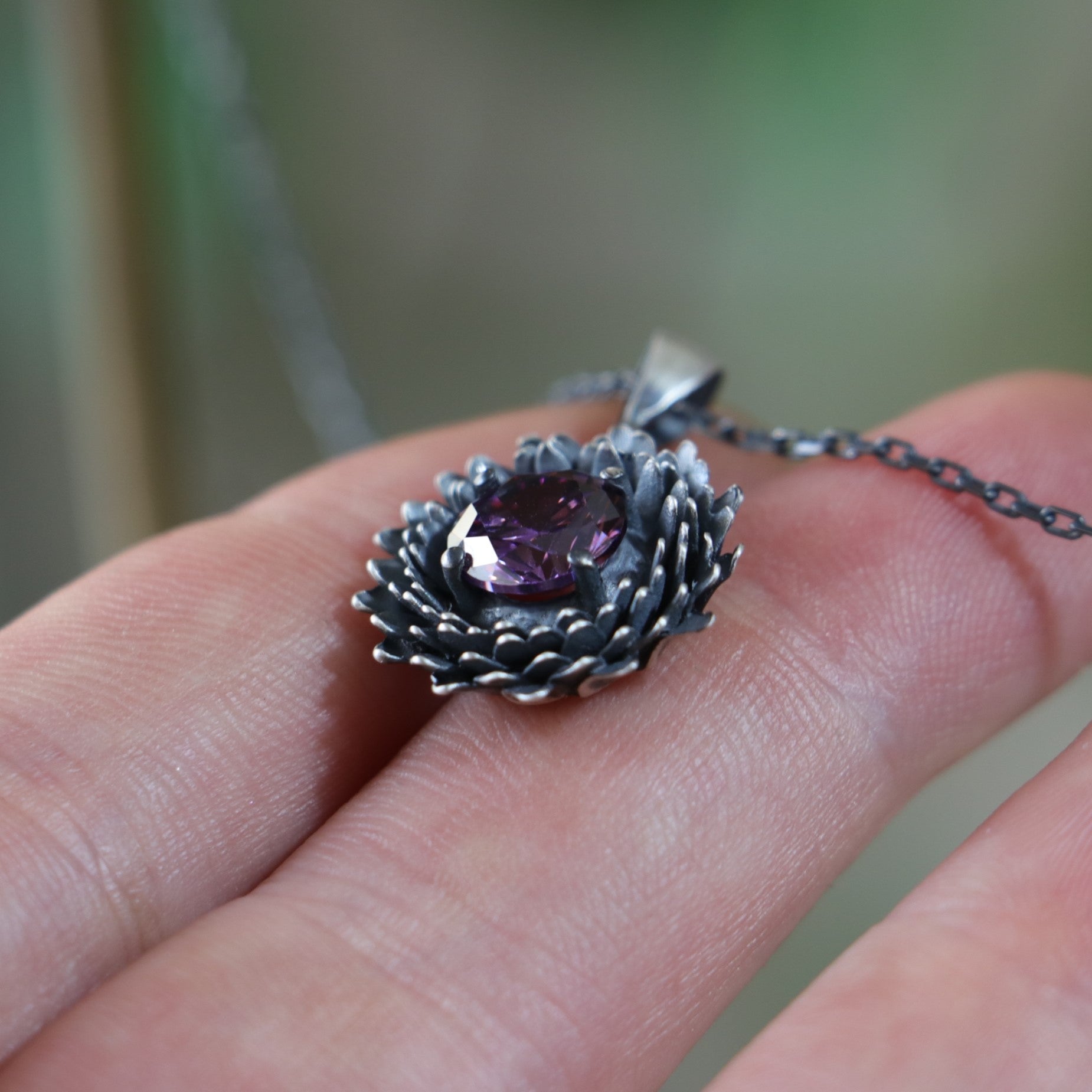 Daisy Amethyst 925 Oxidized Silver Necklace