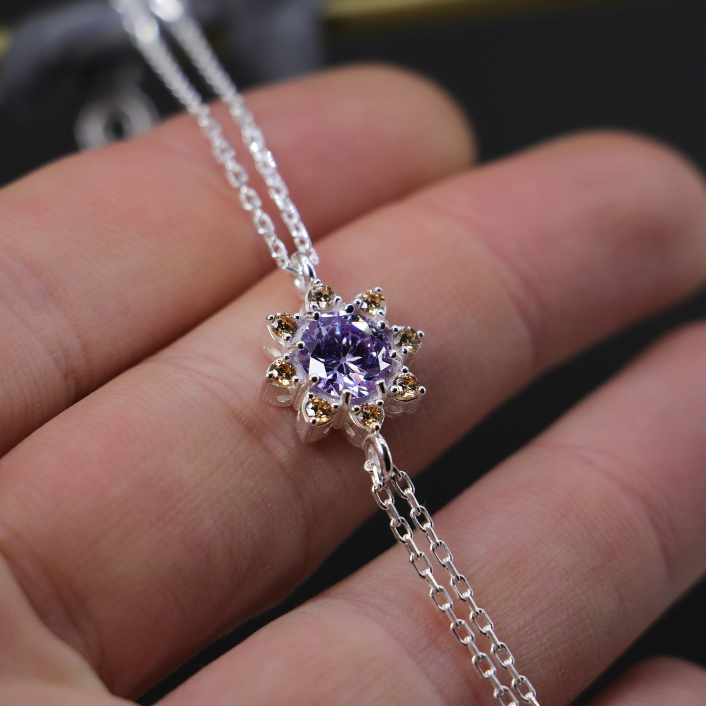 Pink Amethyst and Citrine 925 Silver Bracelet