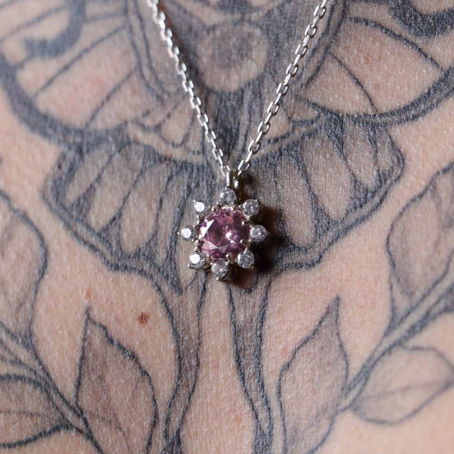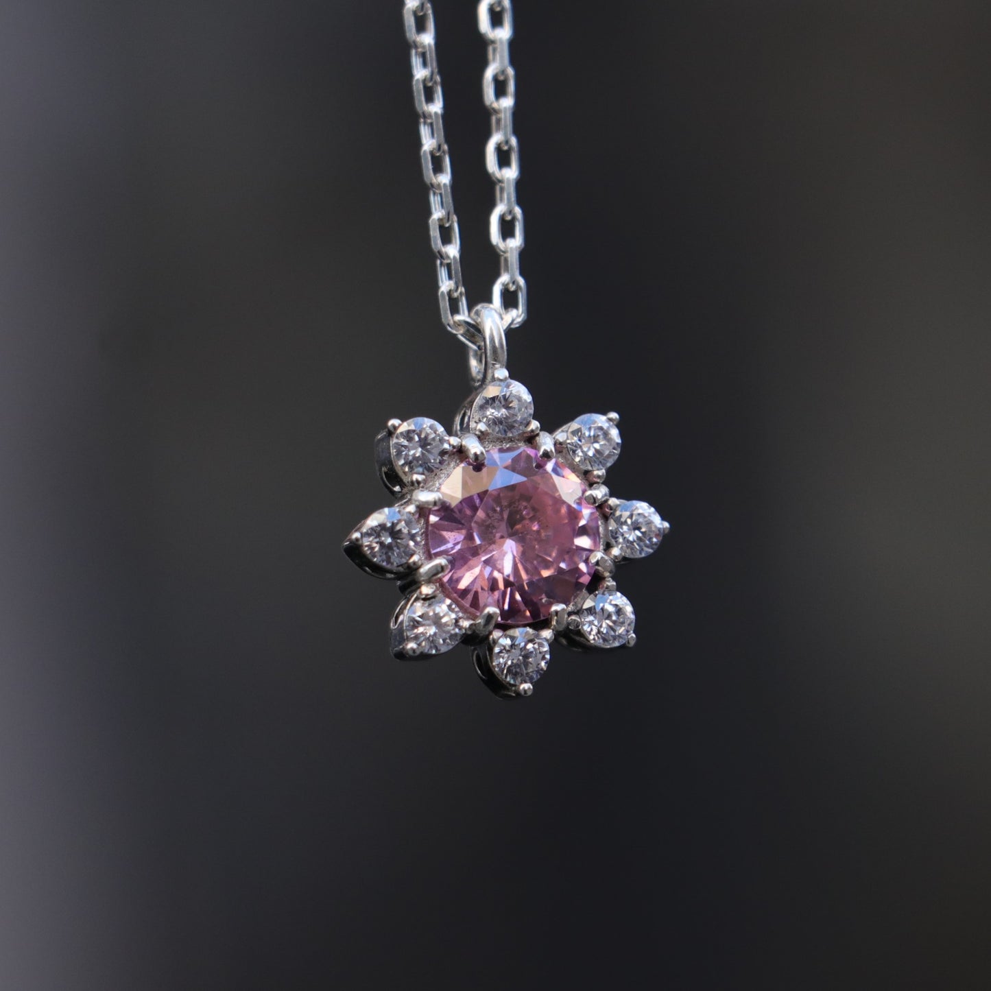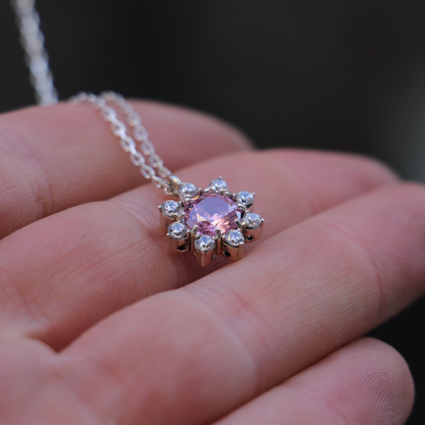 Pink Quartz and Moissanite 925 Silver Sun Necklace