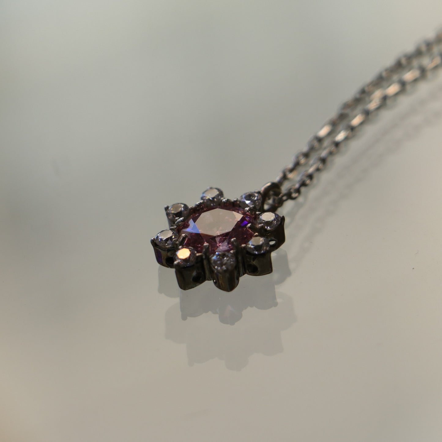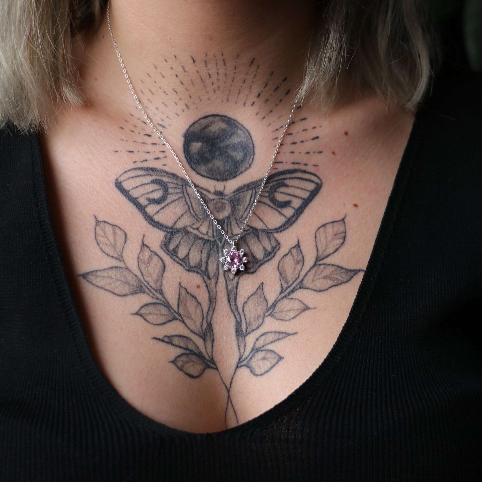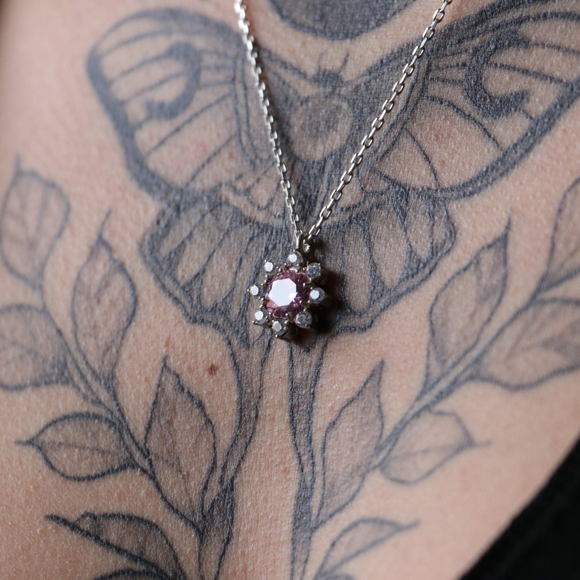 Pink Quartz and Moissanite 925 Silver Sun Necklace