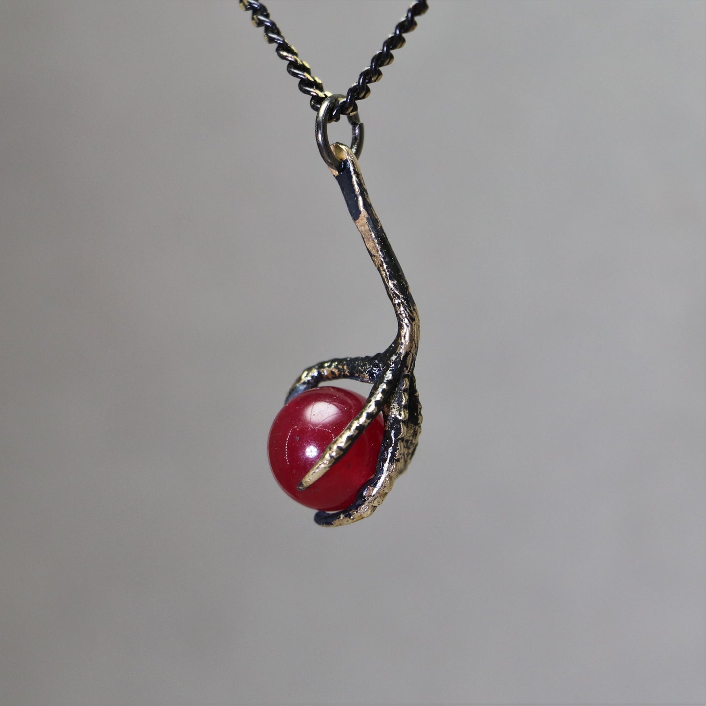 I oxidize and darken the bronze metal I use when creating my designs, to give it an aged and gothic look, and to make it look as if it had come out of the ground.