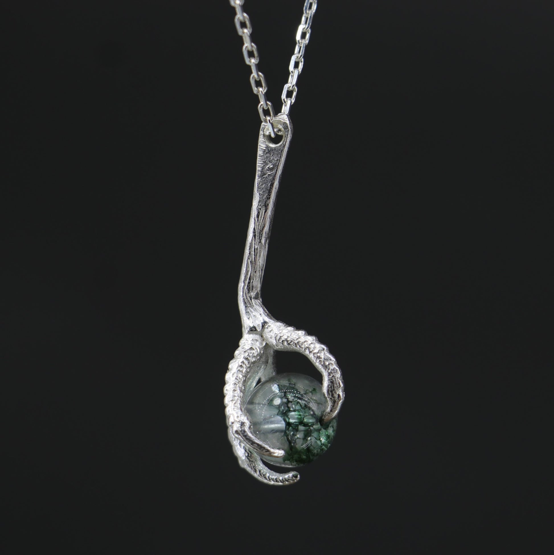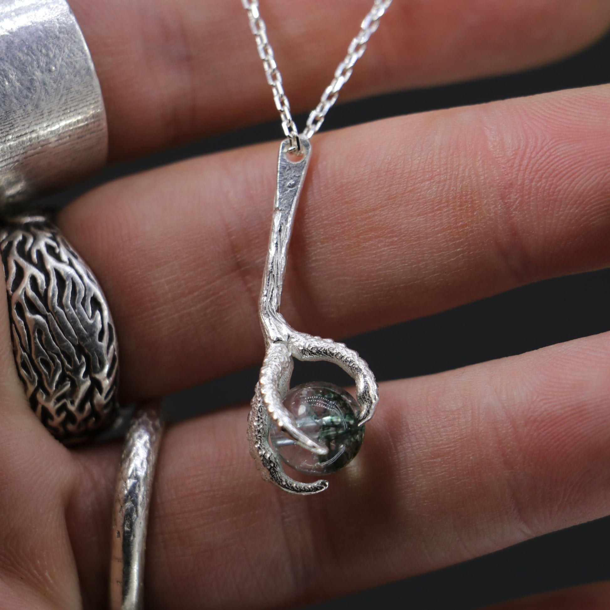 Claw Moss Quartz 925 Silver Necklace