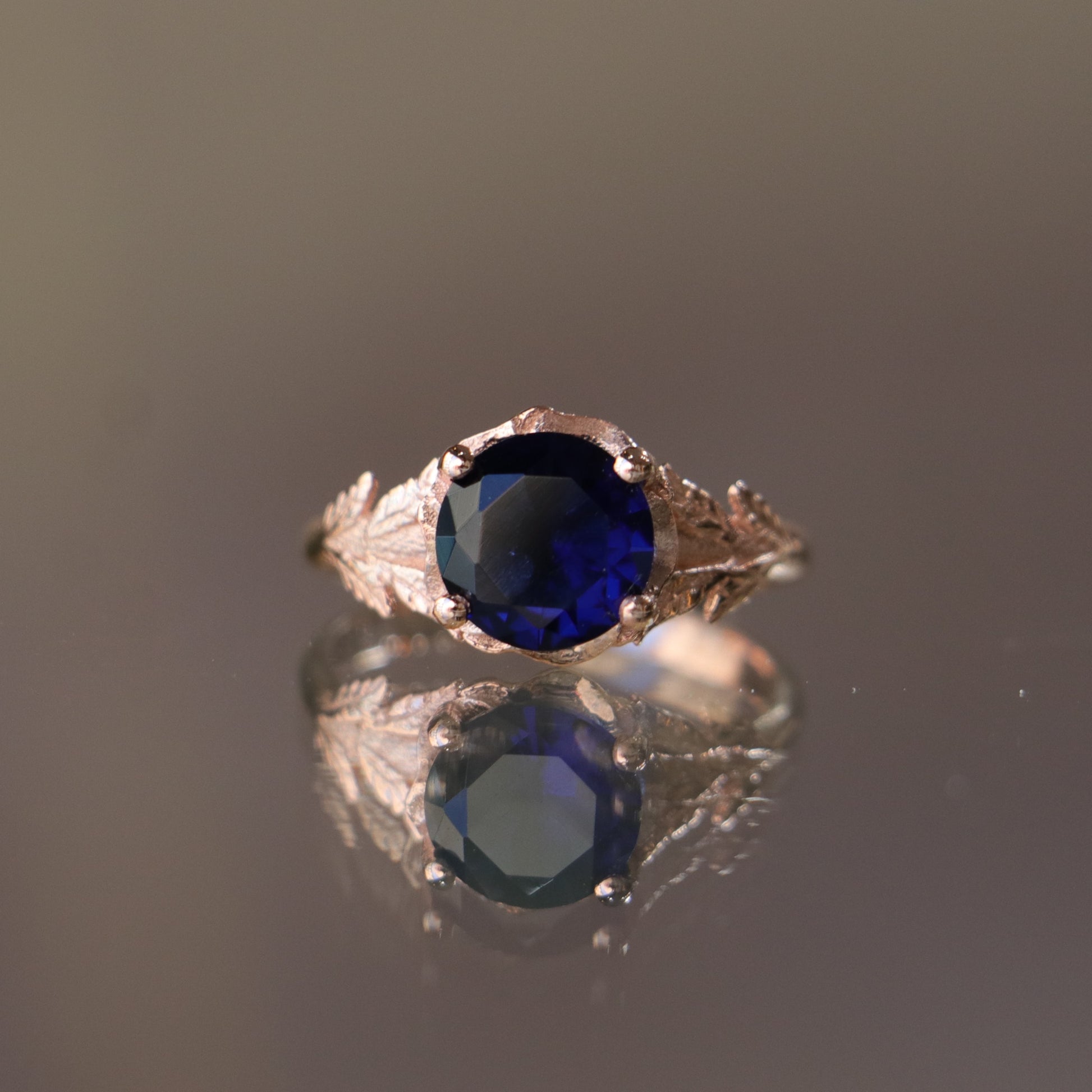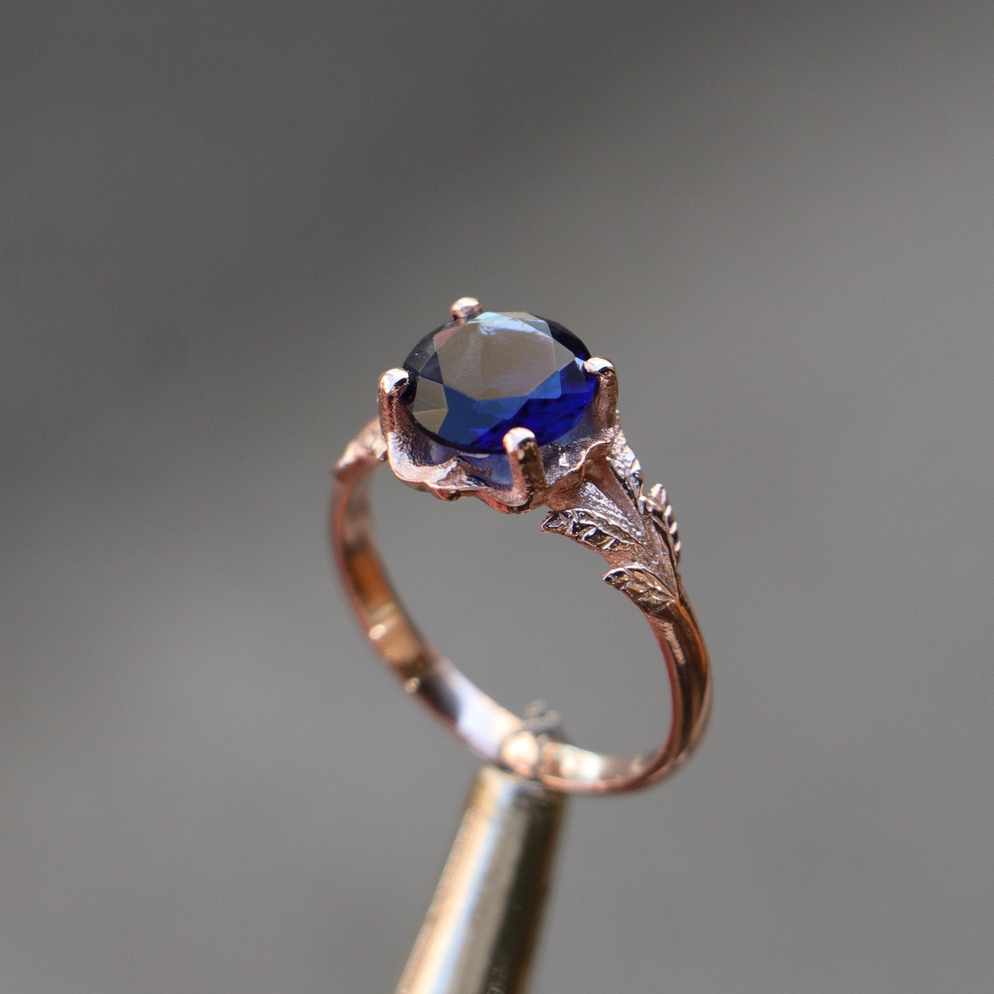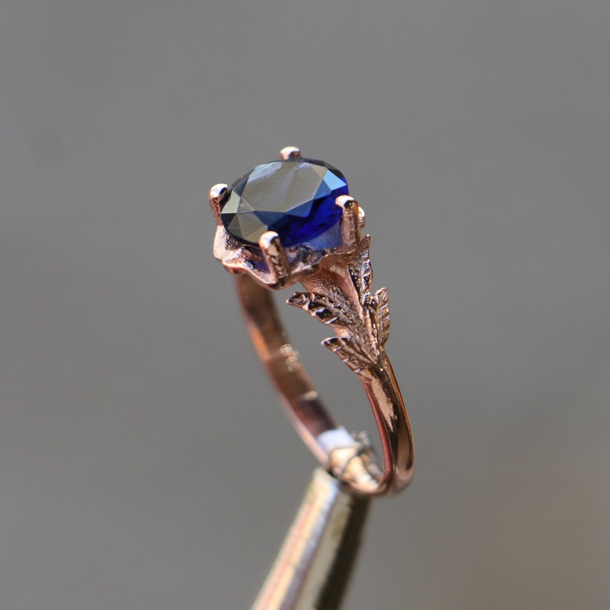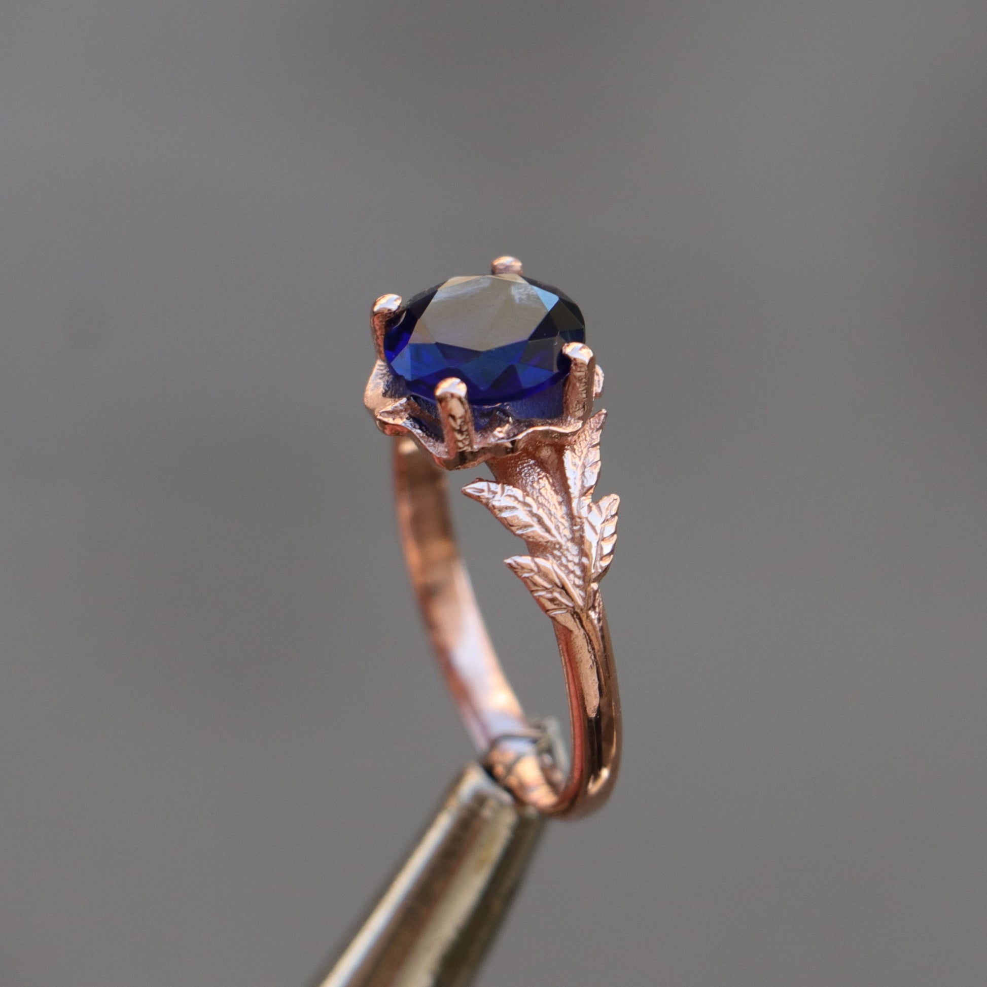 925 Silver Rose Gold Plated Ring with Aquamarine Stone and Leaf Detail