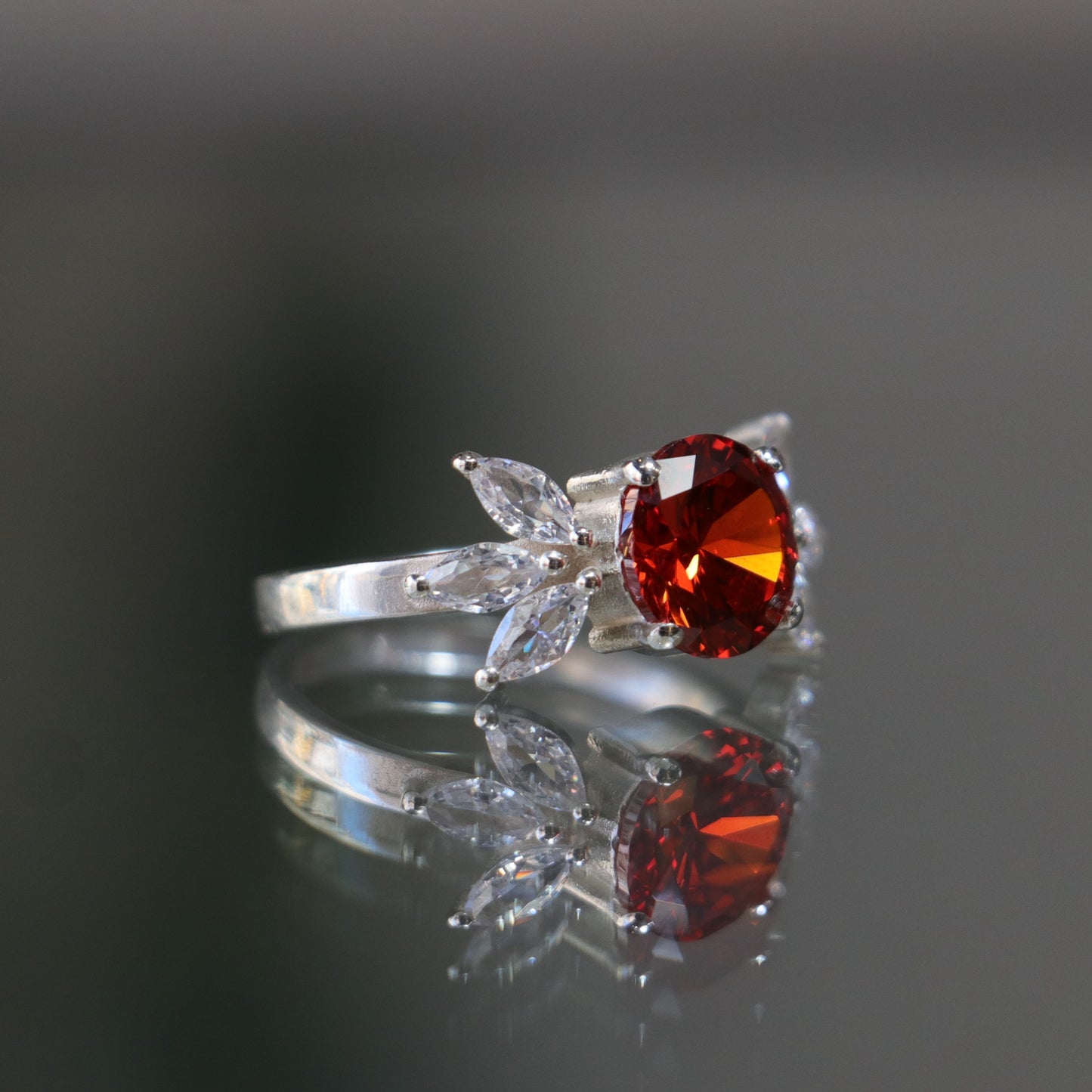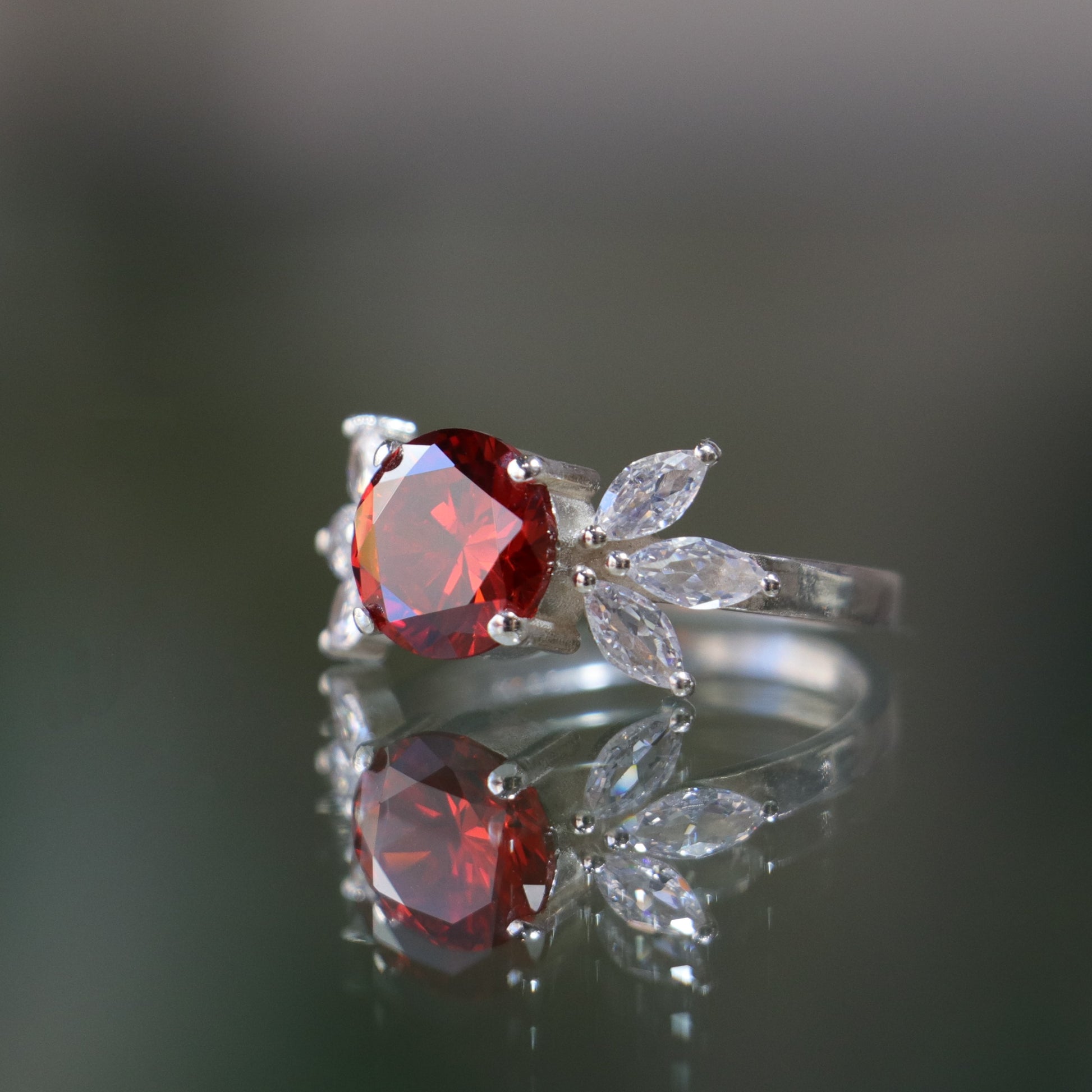 Brilliant Cut Ruby and Marquise Moissanite 925 Silver Ring