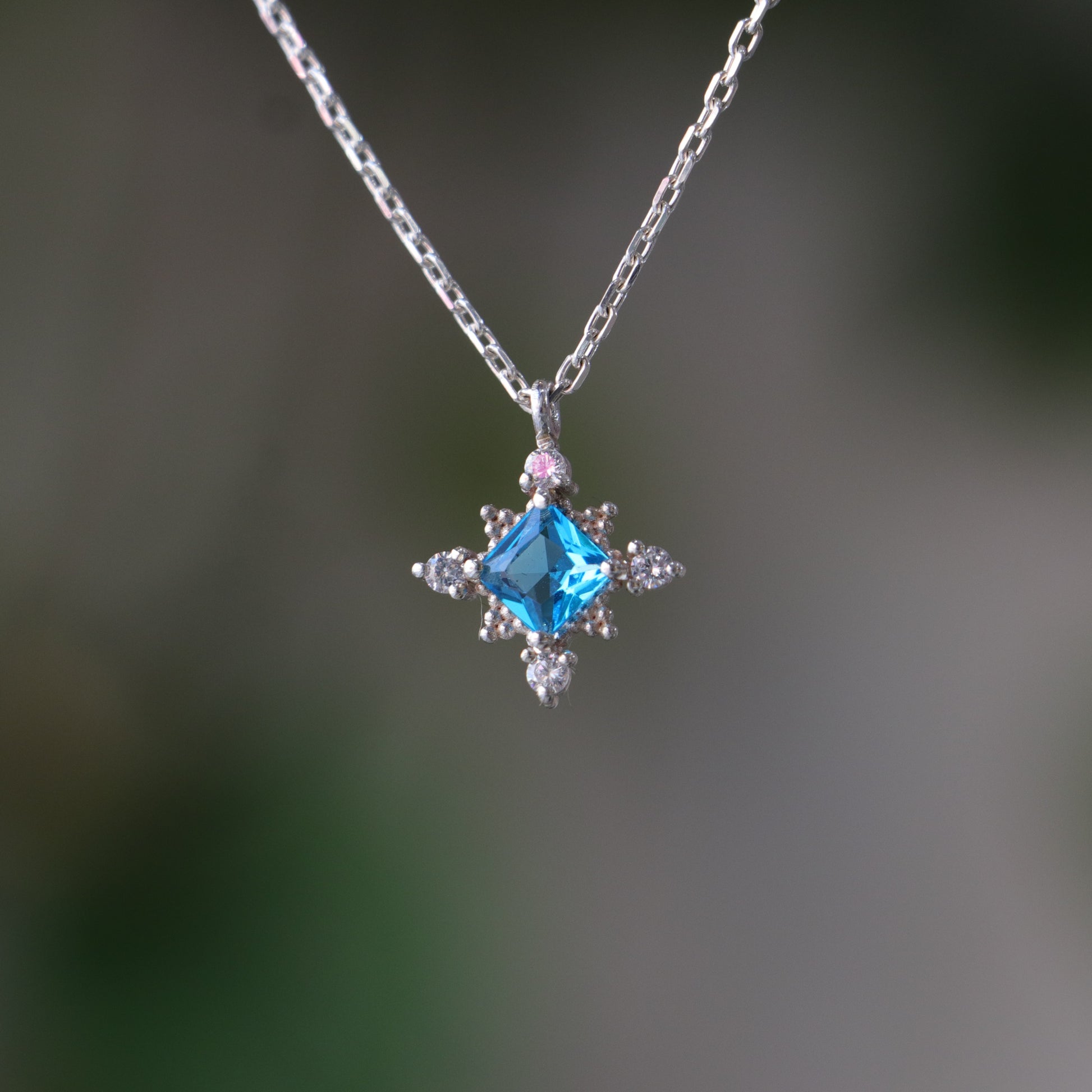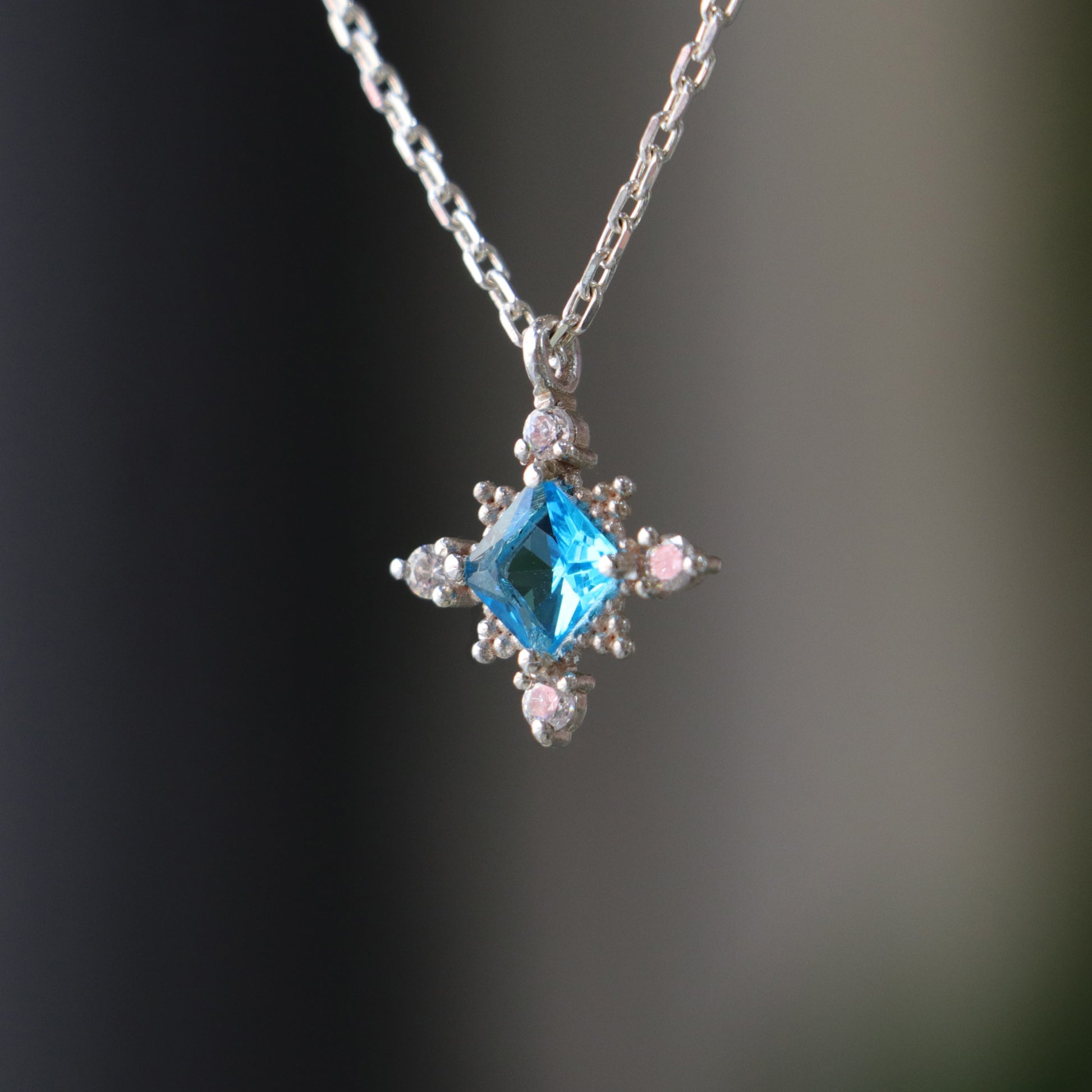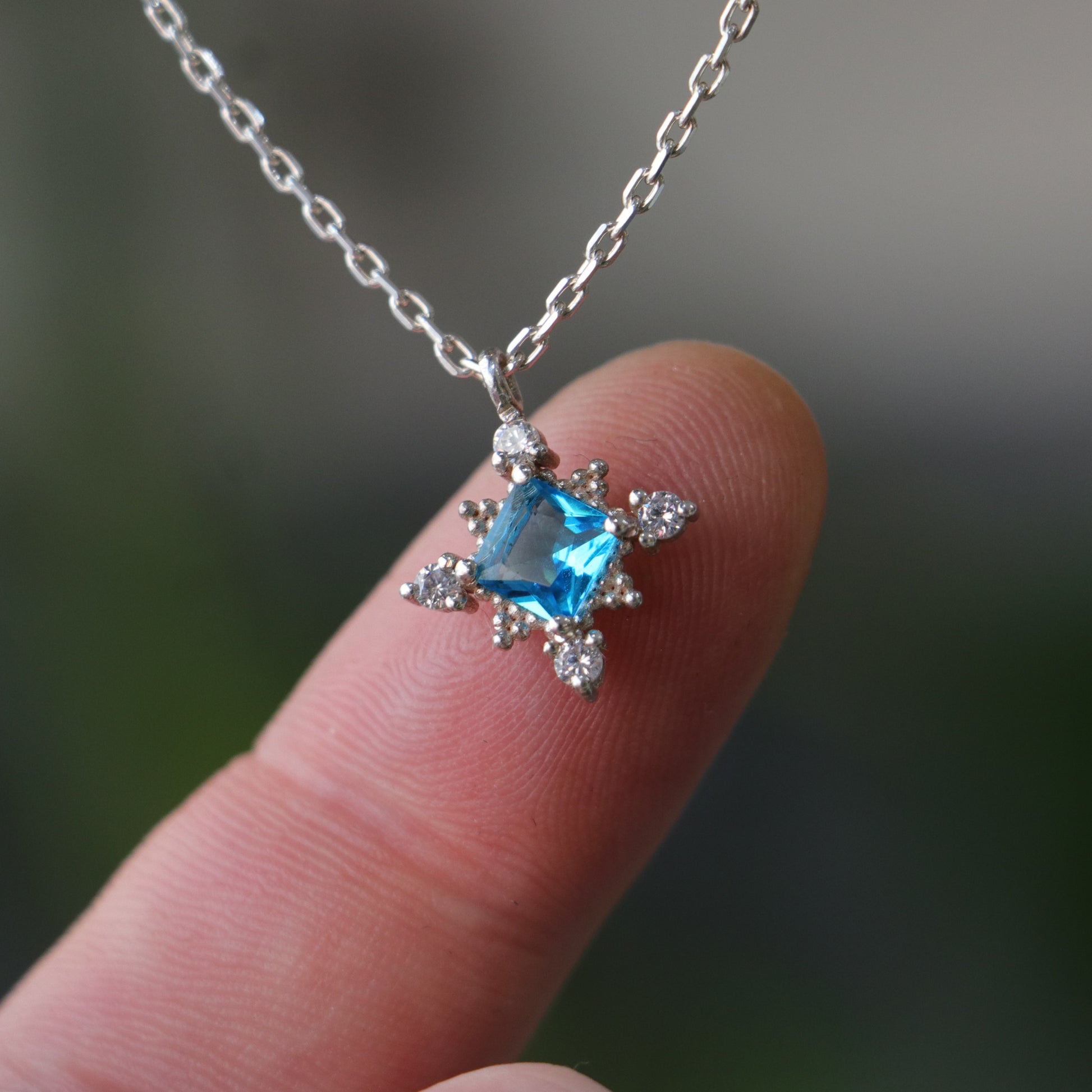 Princess Blue Topaz and Moissanite 925 Silver Necklace