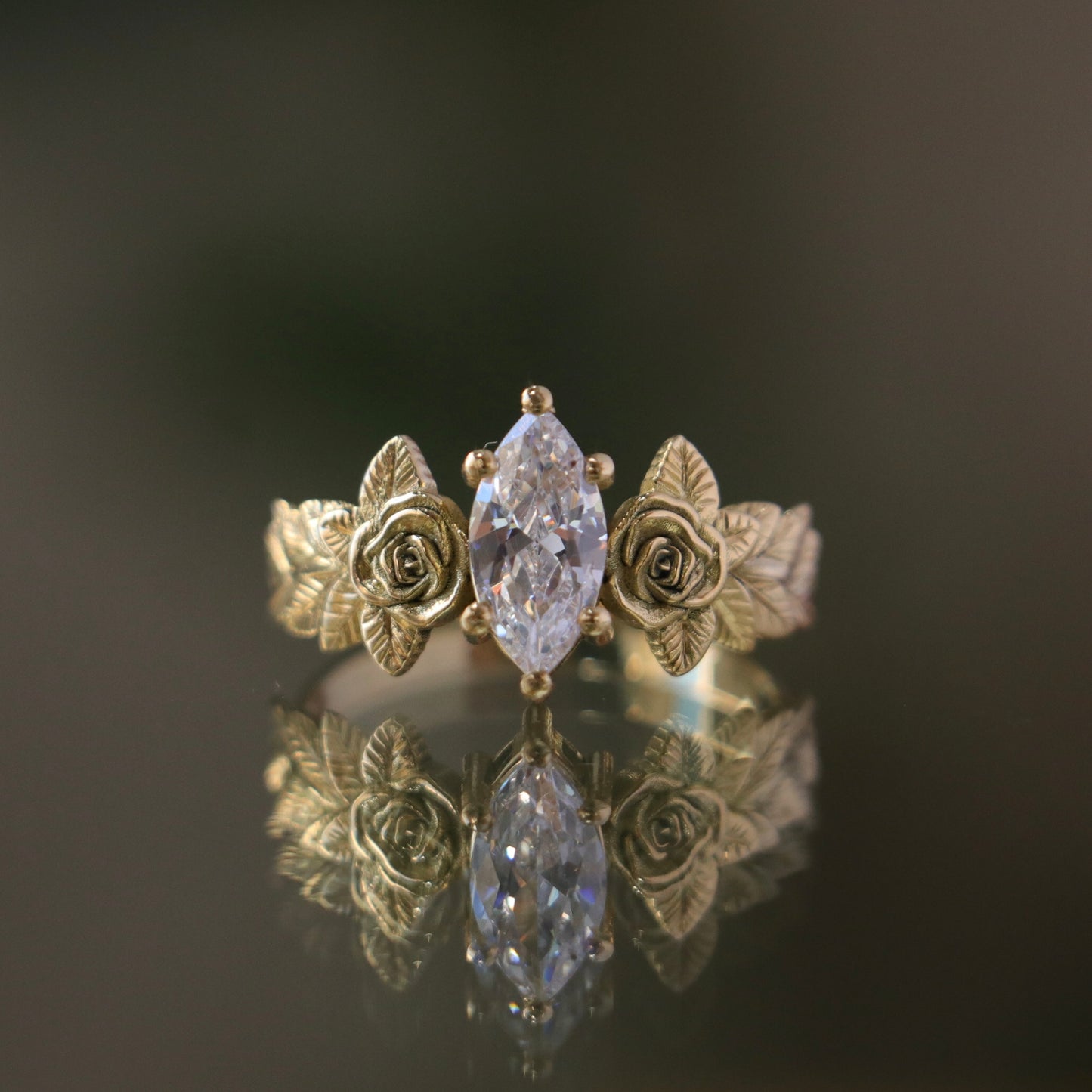 Rose Leaves Moissanite 14 Carat Gold Ring