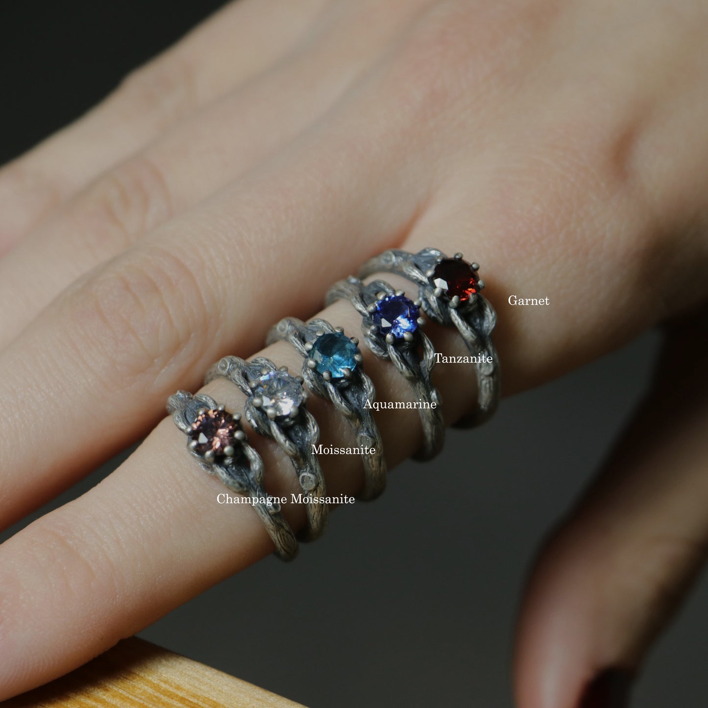 In my designs, which are improvised with the emotions felt by the raw, natural stones I use, I combine the stones with the "nailing" technique, which is also an old-school craft, without using any chemical ingredients.